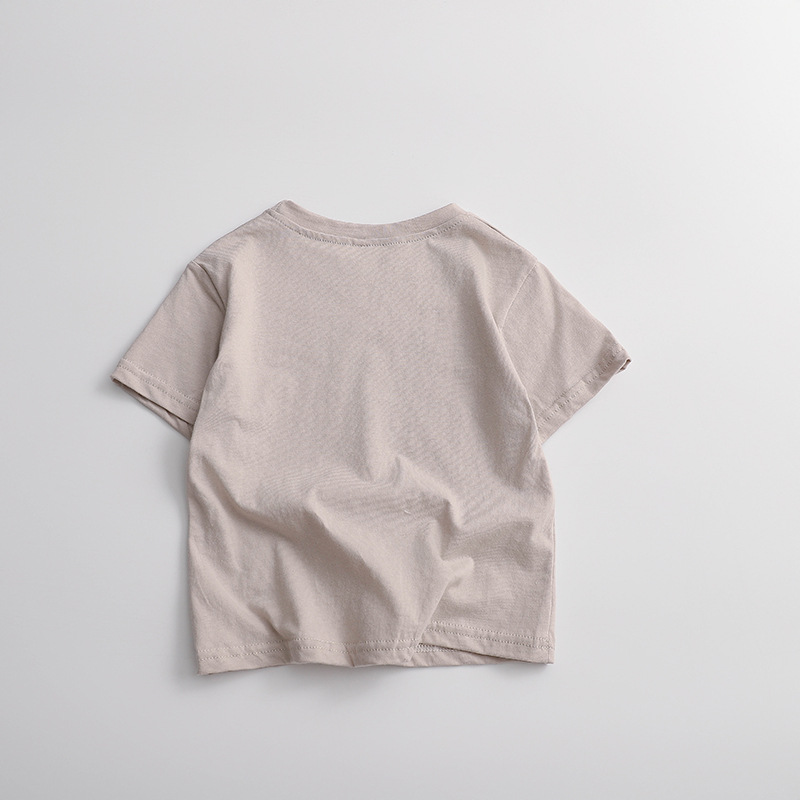 새로운 어린이 솔리드 컬러 코튼 티셔츠 여름 소년과 소녀 아기 트렌디 T 라운드 넥 캐주얼 탑베이스 셔츠 느슨한 짧은 소매스토어 가기