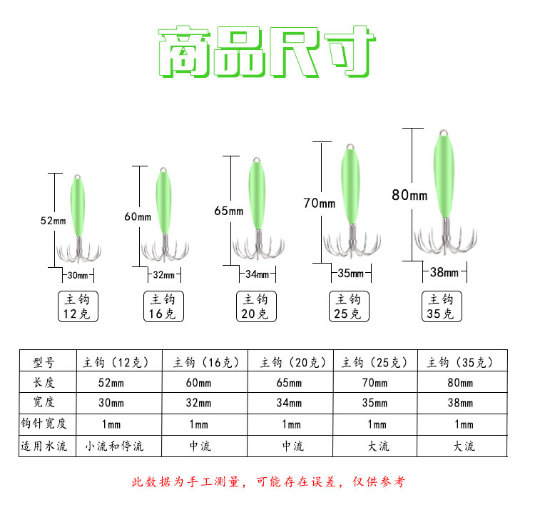 • 【1支试用】12克夜光鱿鱼钩绿色