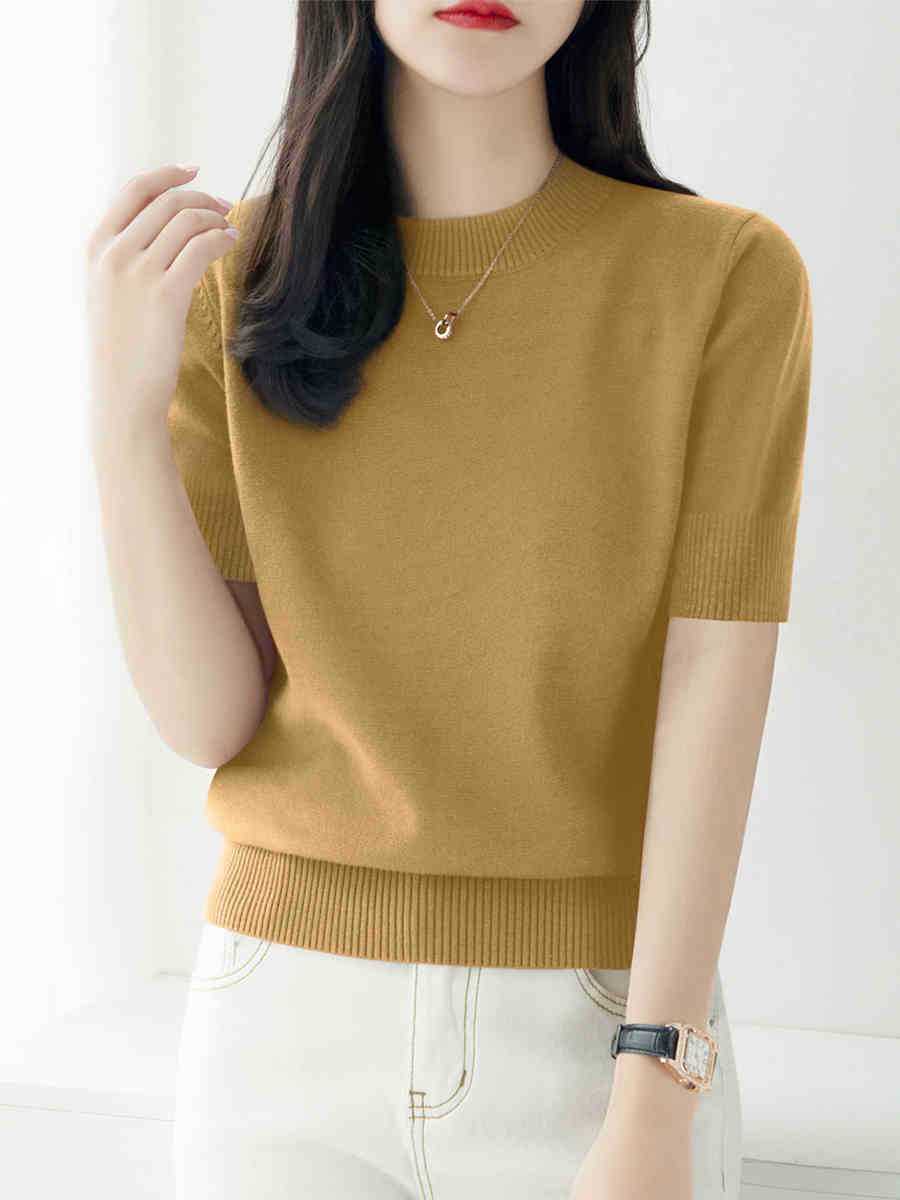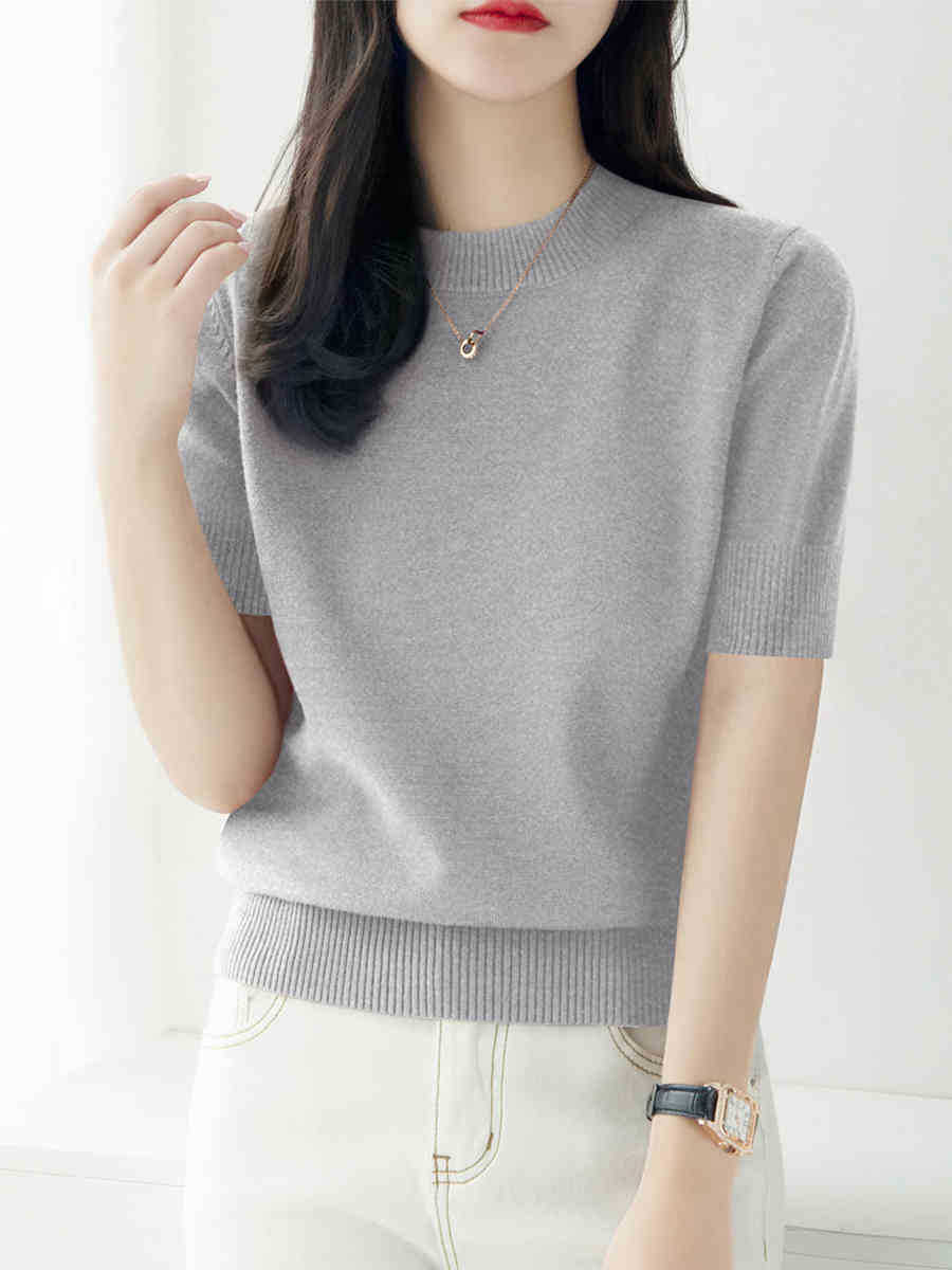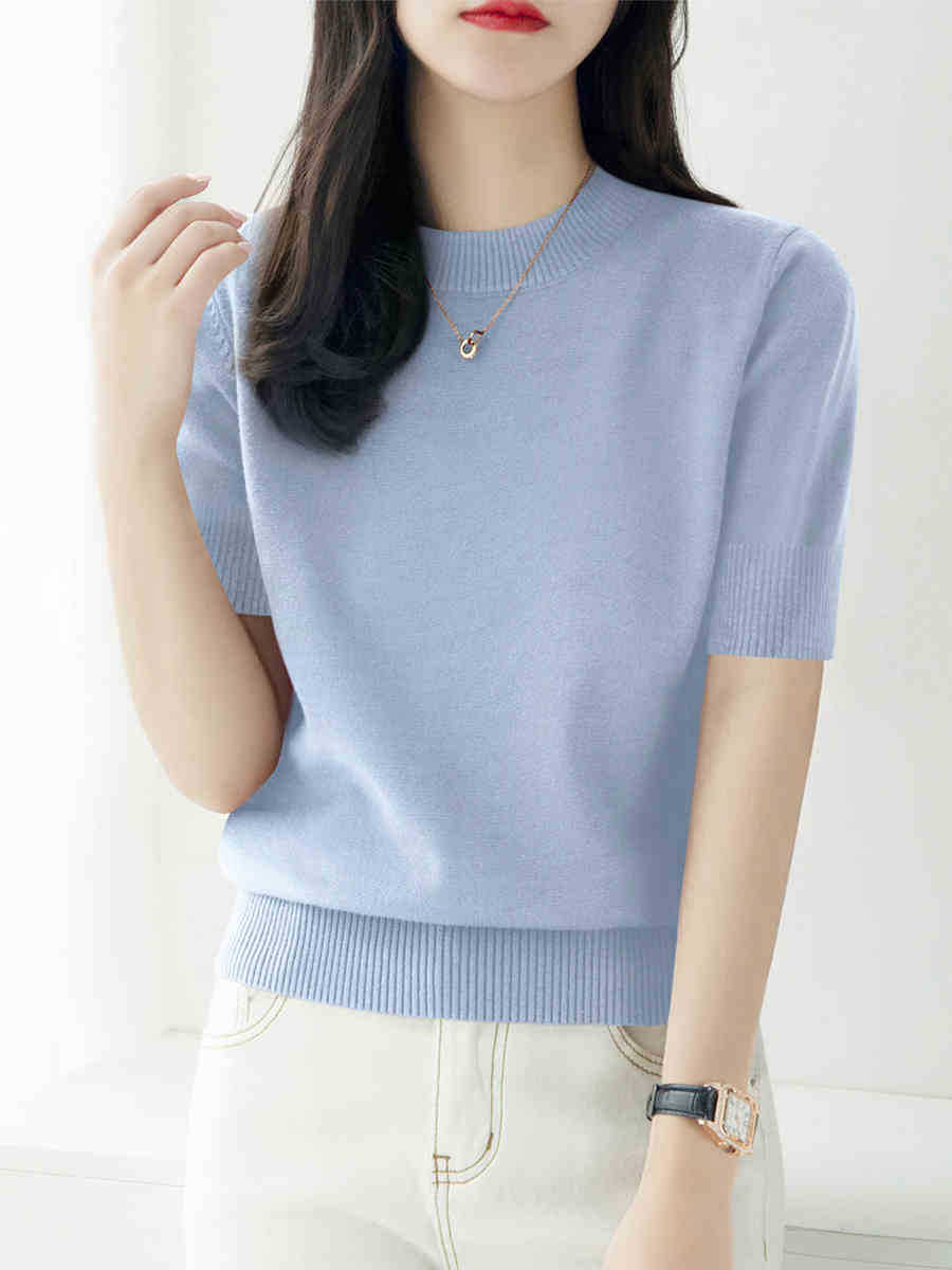 여름 여성을 위한 고급 패셔너블한 7부소매 슬림 스웨터, 새로운 스타일, 라운드넥, 루즈한 이너 레이어드 탑