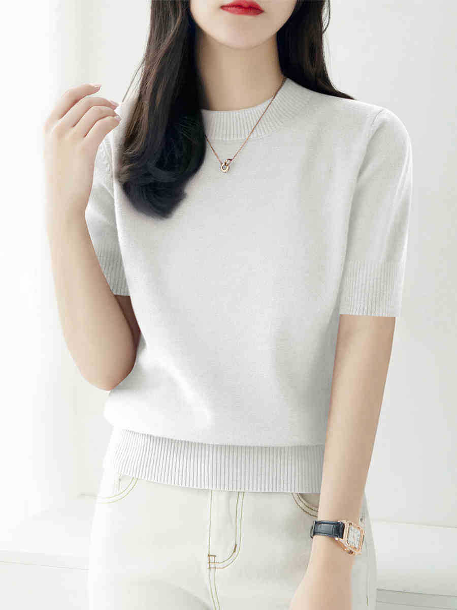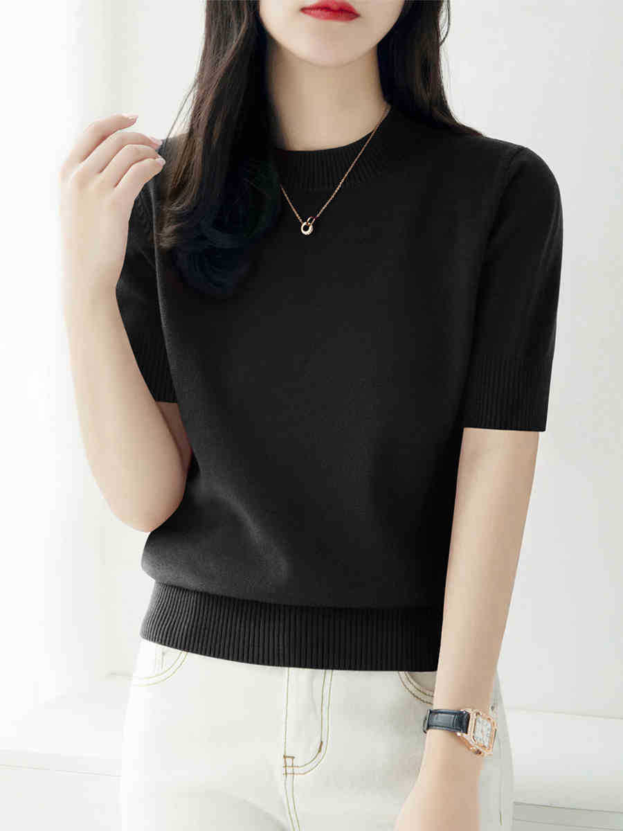 여름 여성을 위한 고급 패셔너블한 7부소매 슬림 스웨터, 새로운 스타일, 라운드넥, 루즈한 이너 레이어드 탑스토어 가기