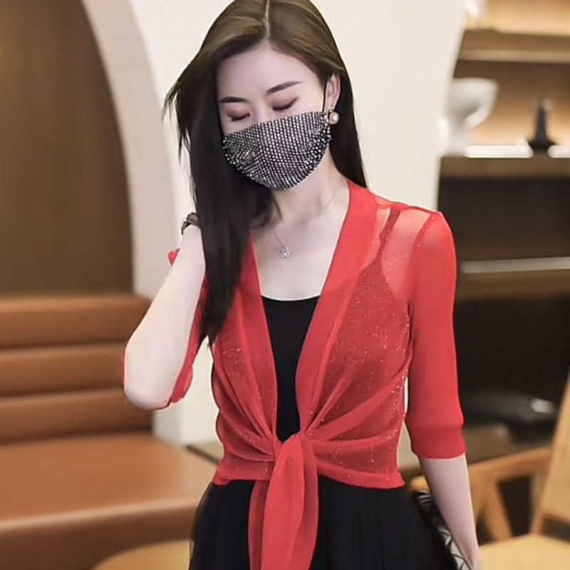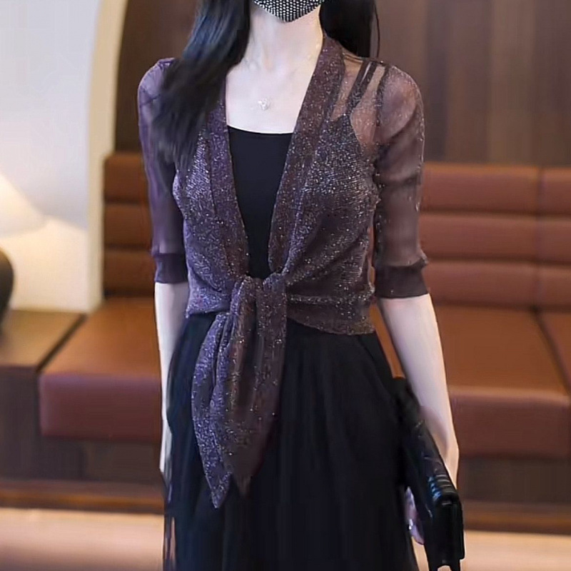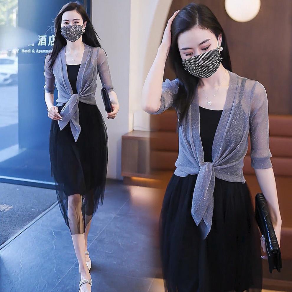 인터넷 인기있는 짧은 코트 여름 목도리 톱 코트 여름 2025 스커트와 새로운 슬림탑스토어 가기
