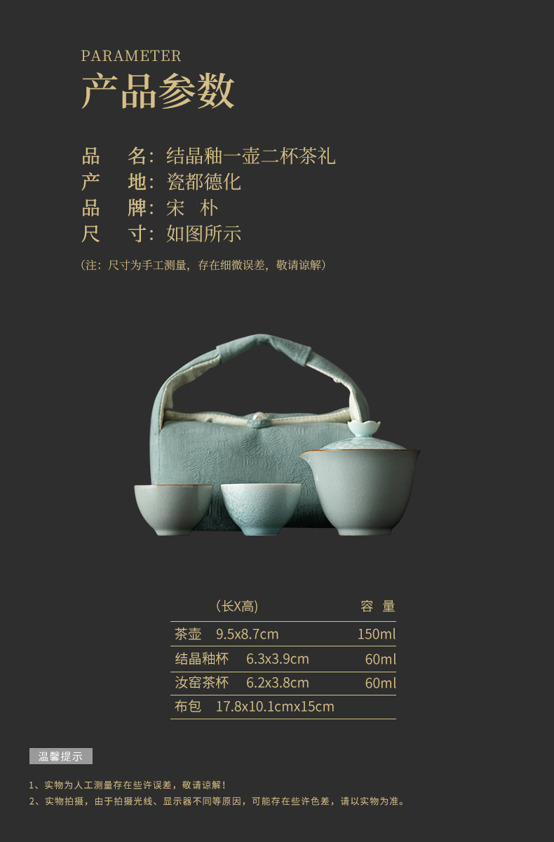 • Song Pu Su Yang Ye Master Ru Kiln 크리스탈 유약 퀵 컵 여행 가방
