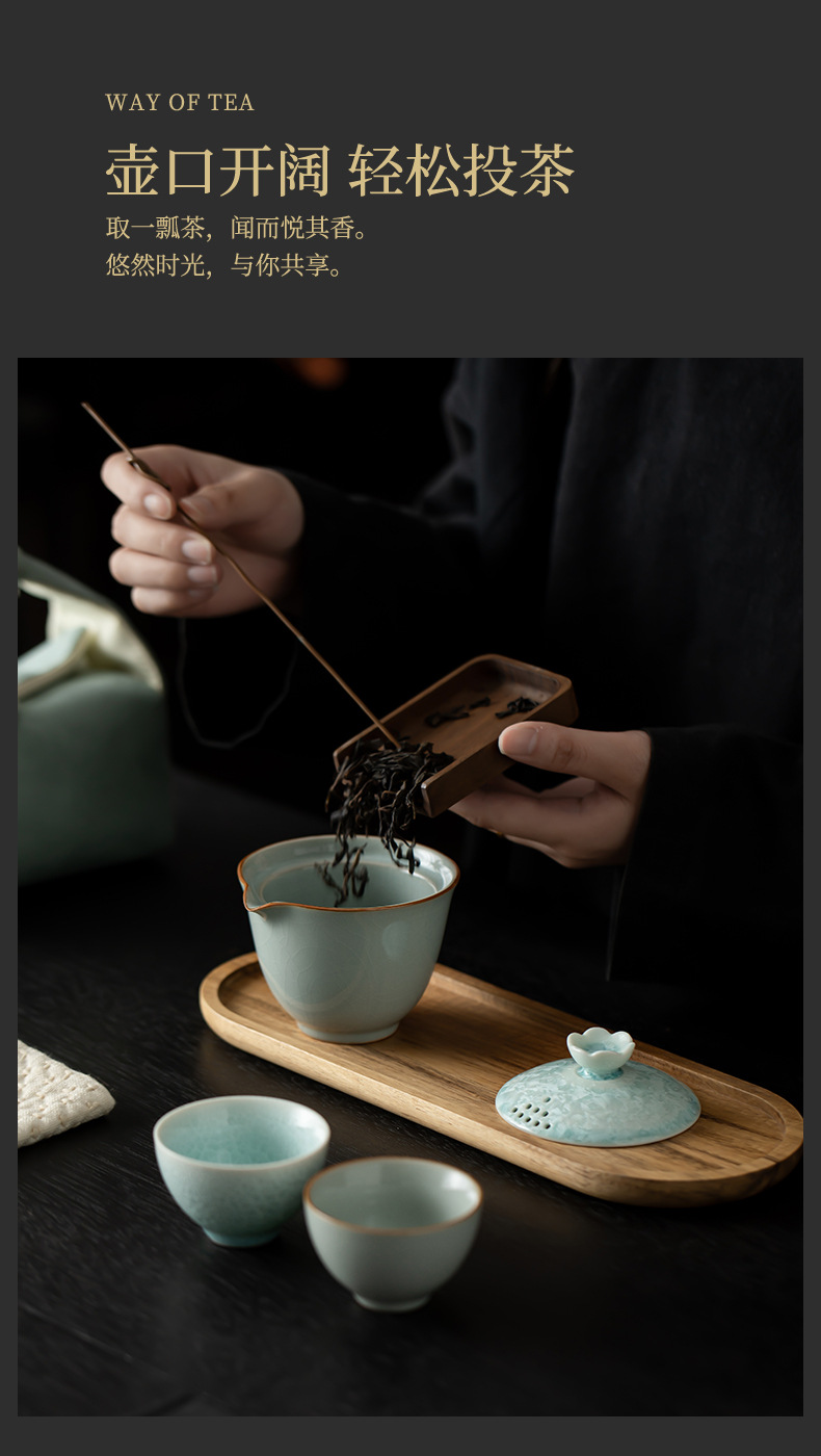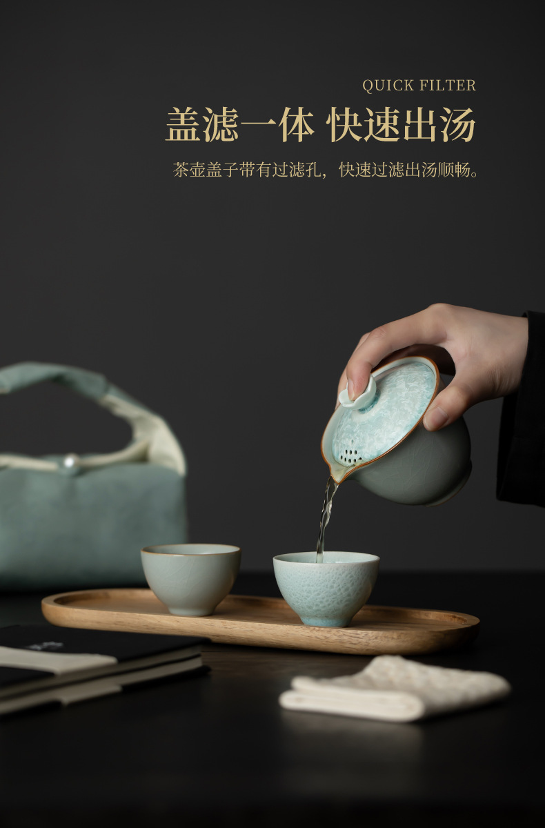 Song Pu Su Yang Ye Master Ru Kiln Crystalline Glaze Express Cup 1 Pot 2 컵 야외 차 세트 휴대용 여행 로고