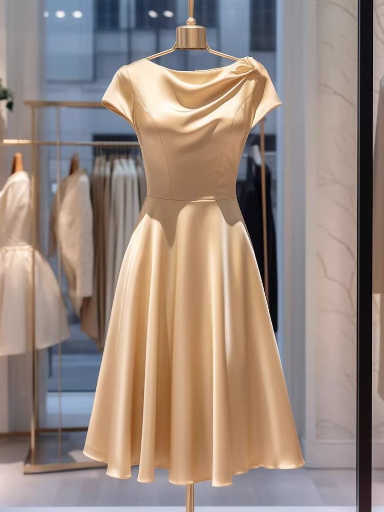 가벼운 럭셔리 새틴 래핑 슬림 핏 반팔 원피스 우아한 패션 하이 엔드 슬리밍 원피스 여름 원피스스토어 가기