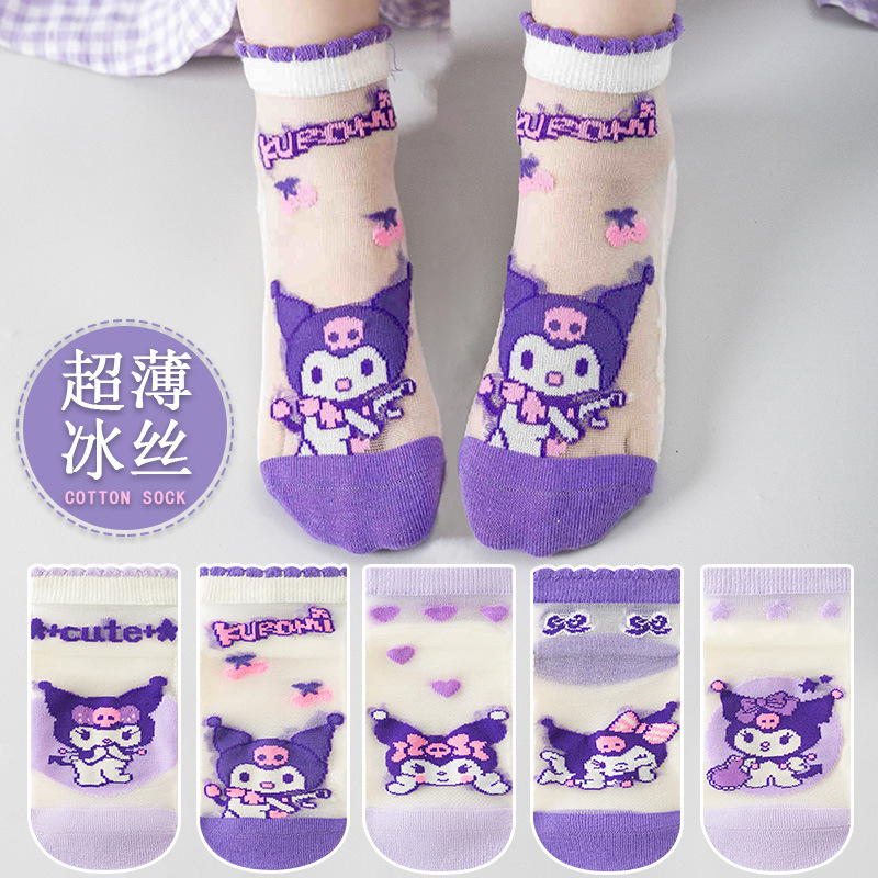 산리오 소녀 양말 여름 초박형 얼음 스타킹 어린이 소녀 귀여운 만화 여름 빛 통기성 양말