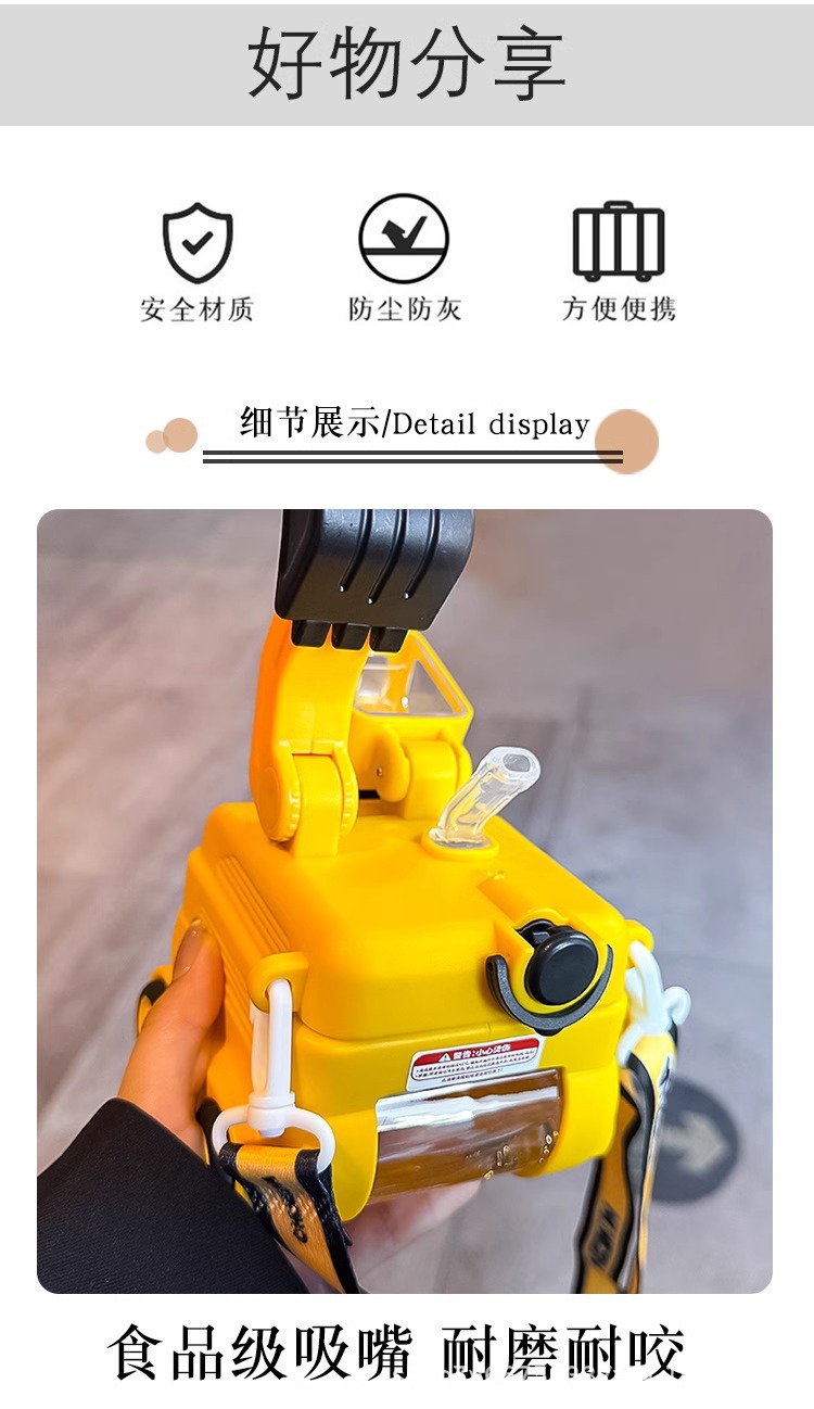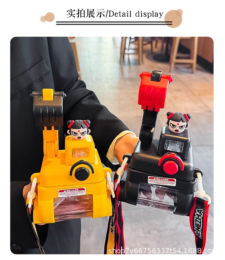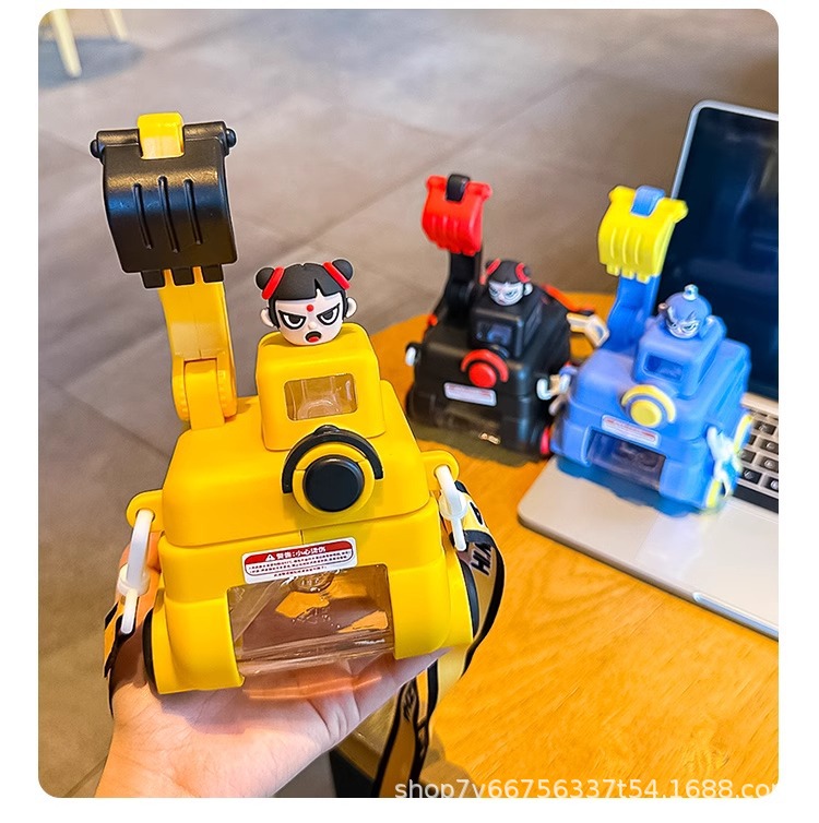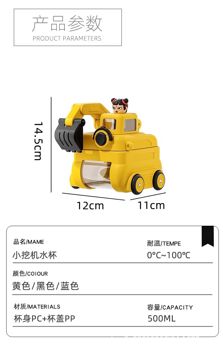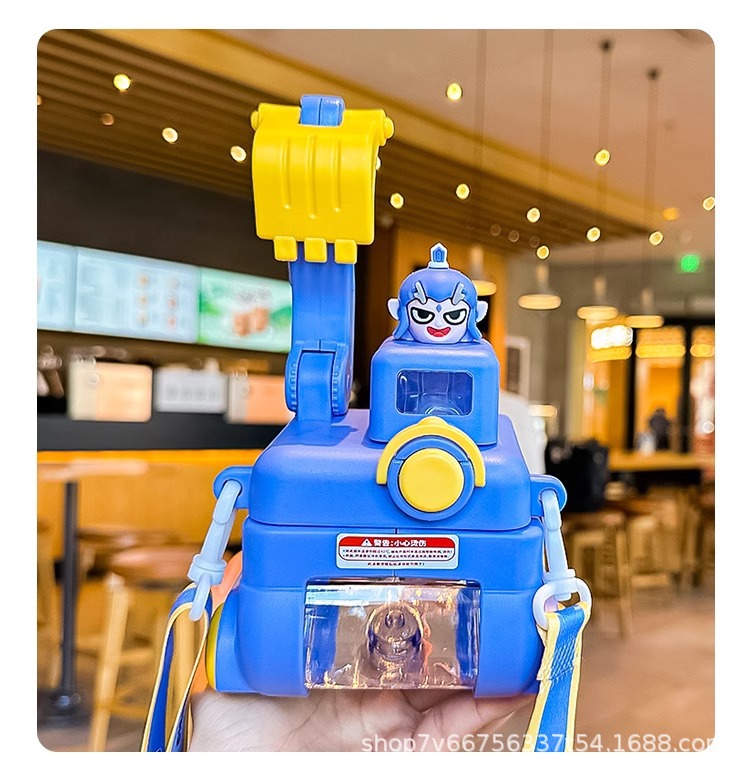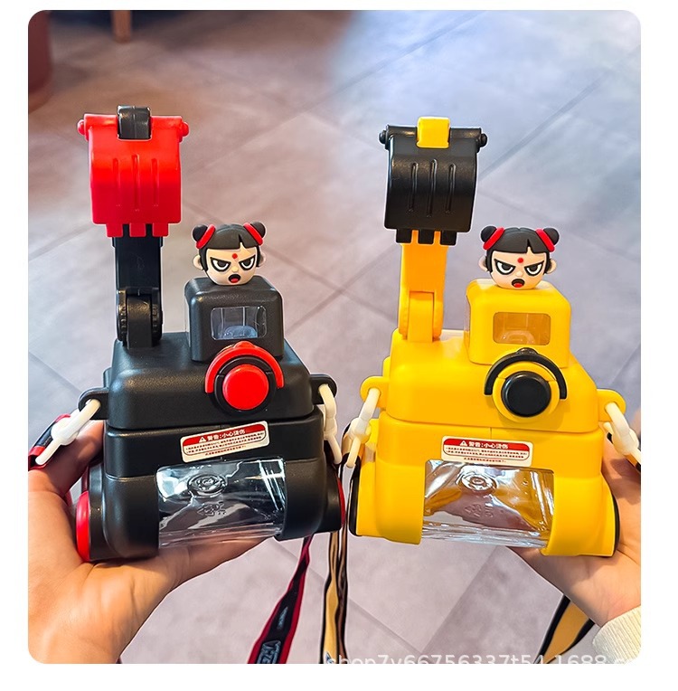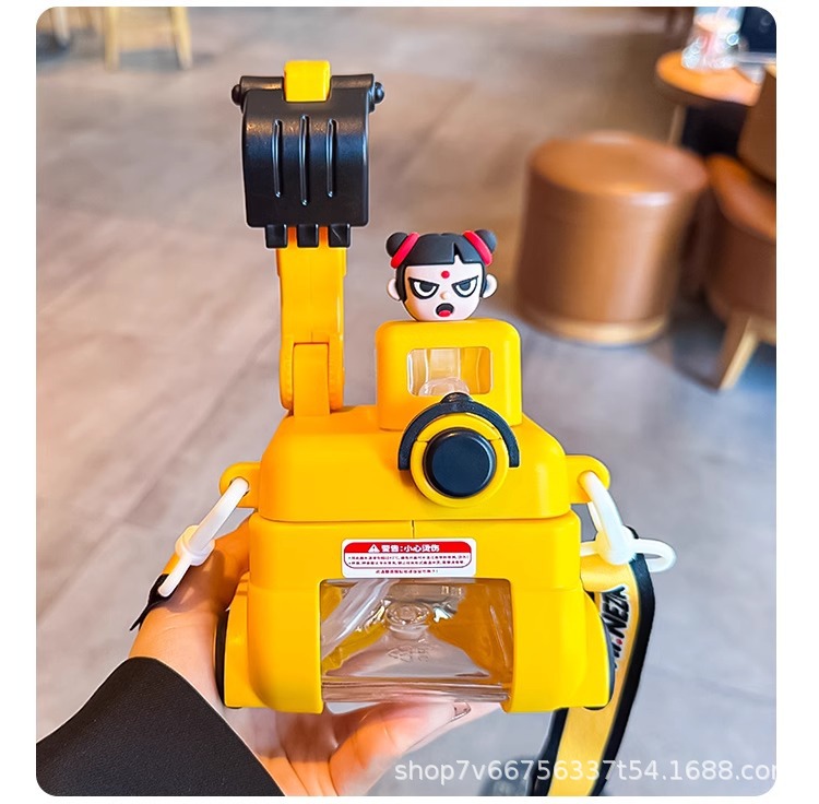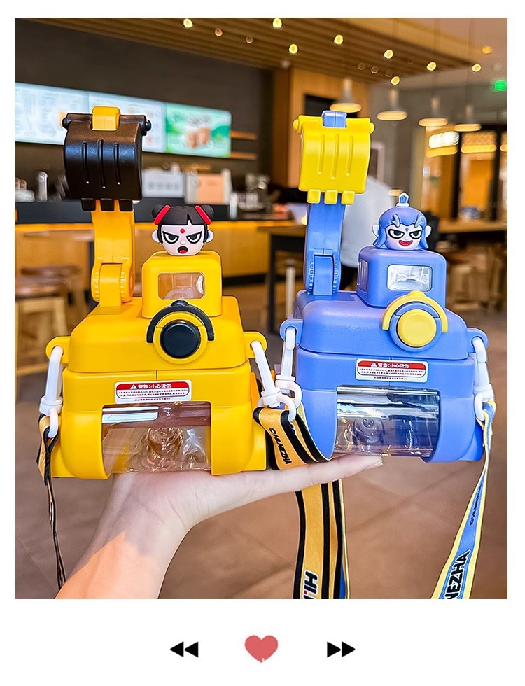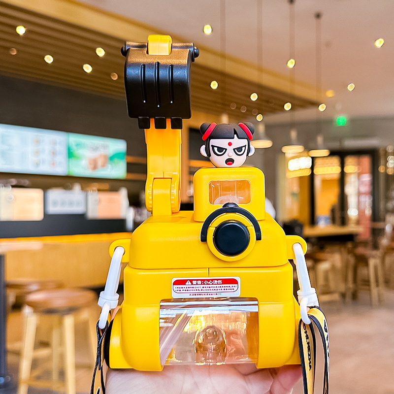 Ne Cha 워터 컵 어린이 굴삭기 장난감 밀짚 컵 유치원 소년 소녀 학교 특수 휴대용 주전자