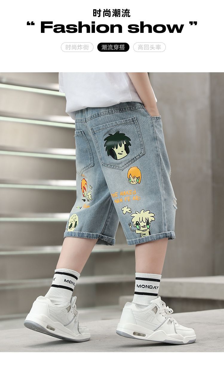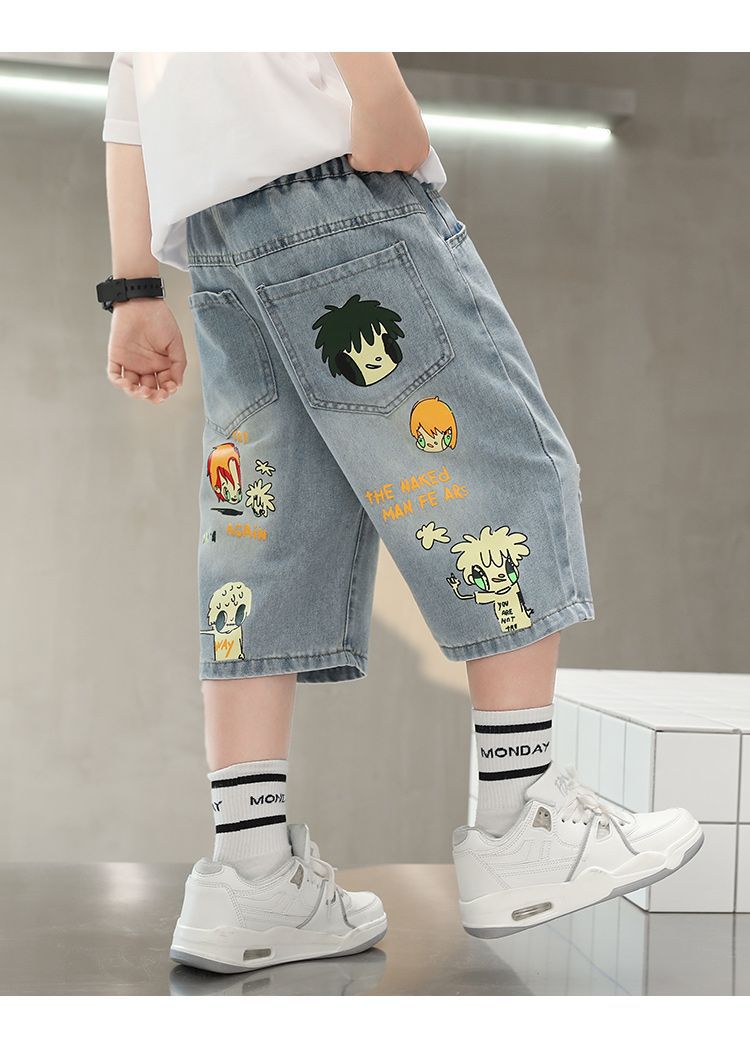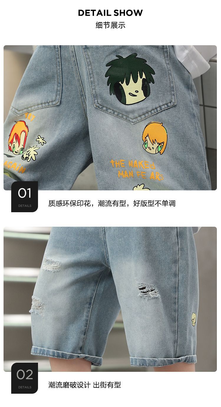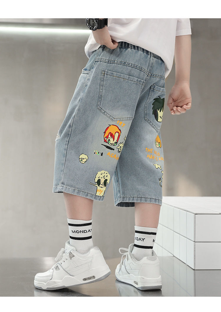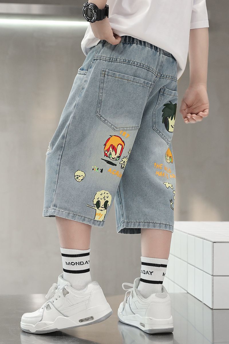 2025 남아 여름 얇은 연한색 프린트 한국 스타일 면 반바지 남아용 신상 무릎길이 오버사이즈 팬츠 트렌디 브랜드스토어 가기