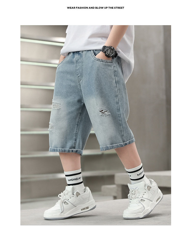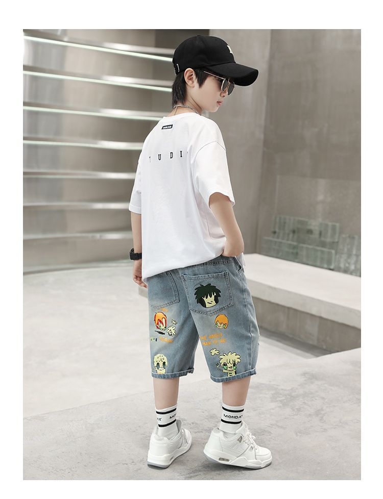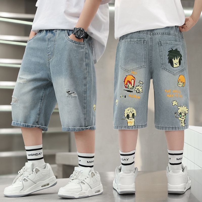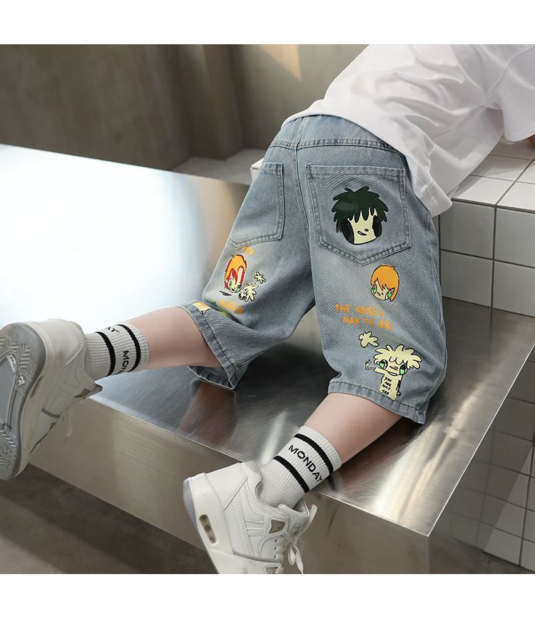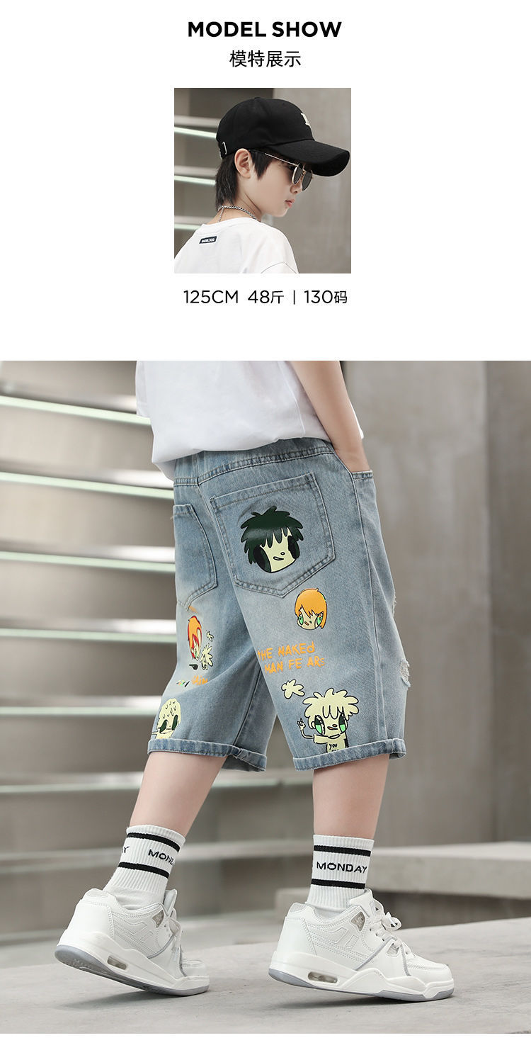 2025 남아 여름 얇은 연한색 프린트 한국 스타일 면 반바지 남아용 신상 무릎길이 오버사이즈 팬츠 트렌디 브랜드스토어 가기