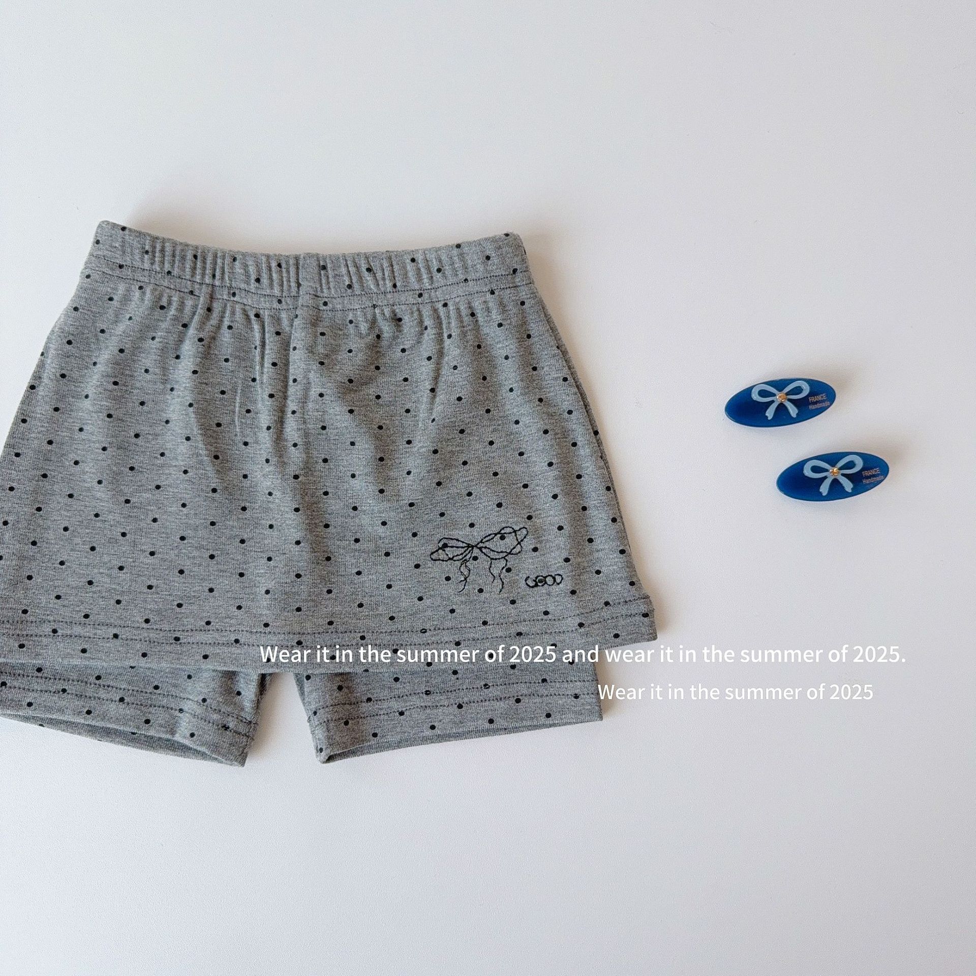 소녀 여름 한국식 반바지, 웨이브 도트 가짜 투피스 자수 아기 소녀 승마 바지 바지 바지 바지
