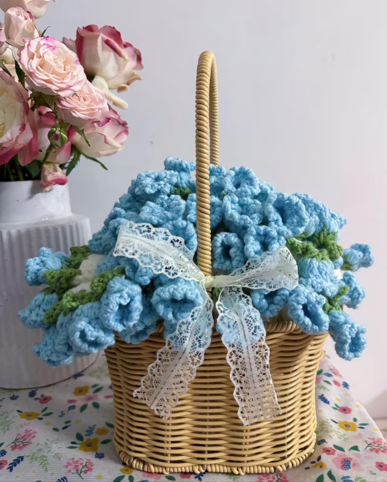 백합 계곡 꽃 담요 꽃다발 담요 수제 담요 직조 아크릴 마감 뜨개질 장미 양모 선물 뜨개질 꽃스토어 가기