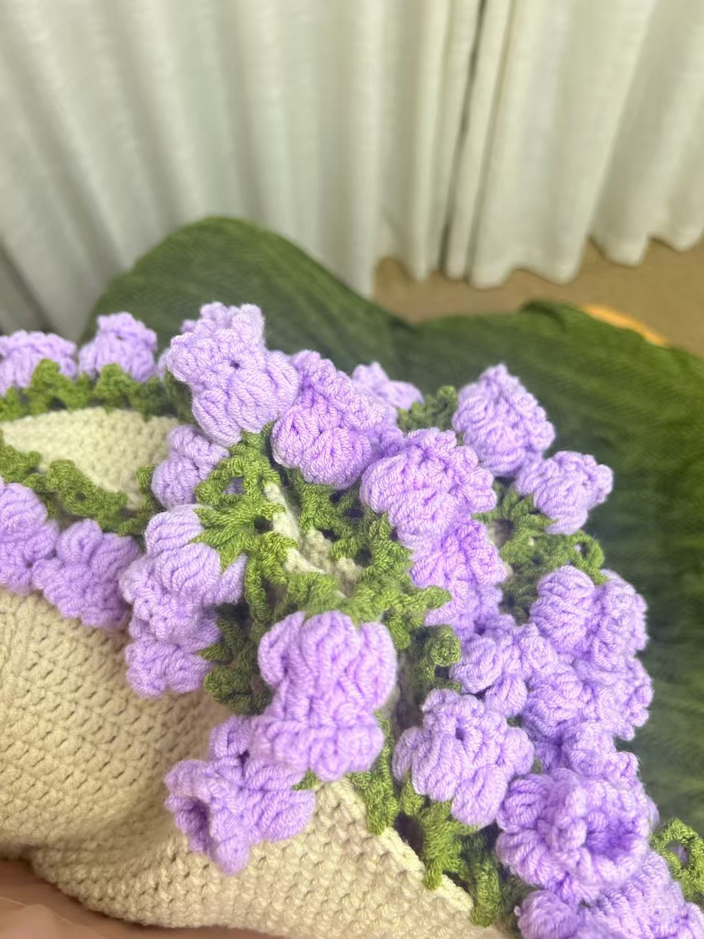 백합 계곡 꽃 담요 꽃다발 담요 수제 담요 직조 아크릴 마감 뜨개질 장미 양모 선물 뜨개질 꽃