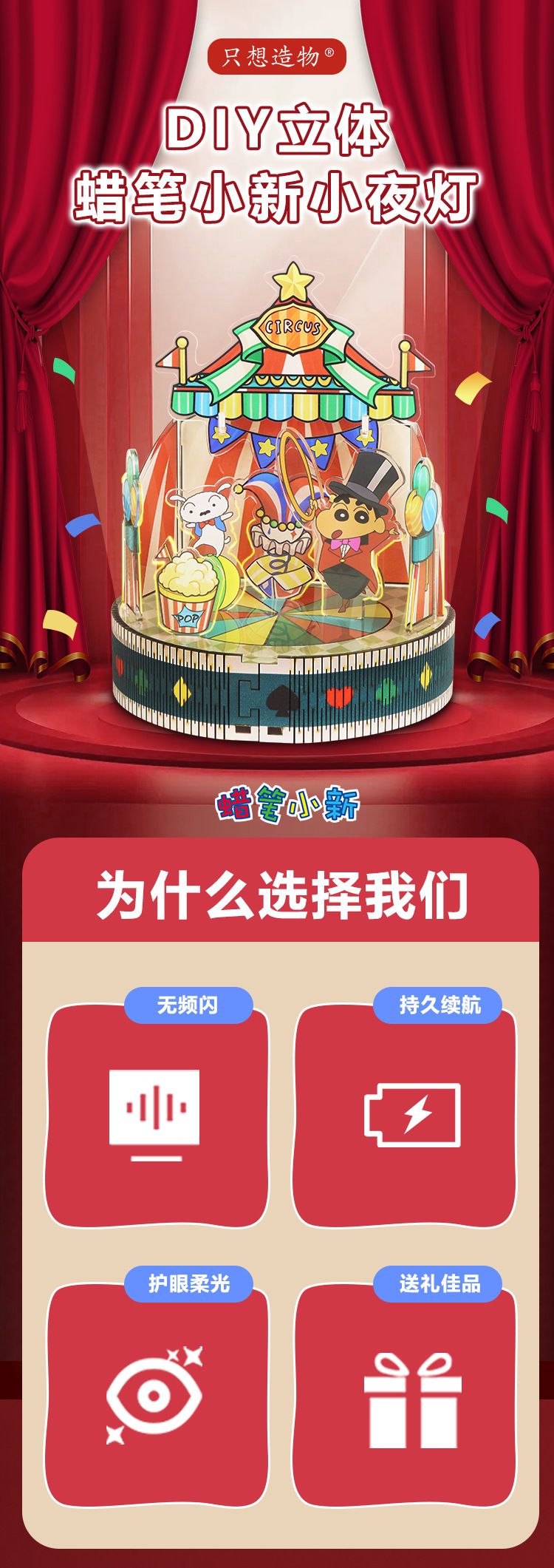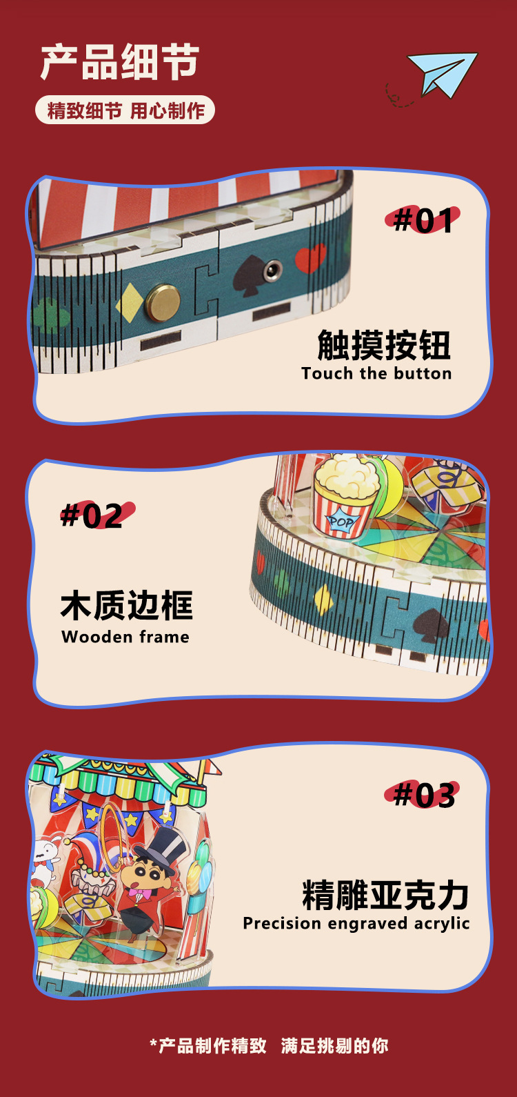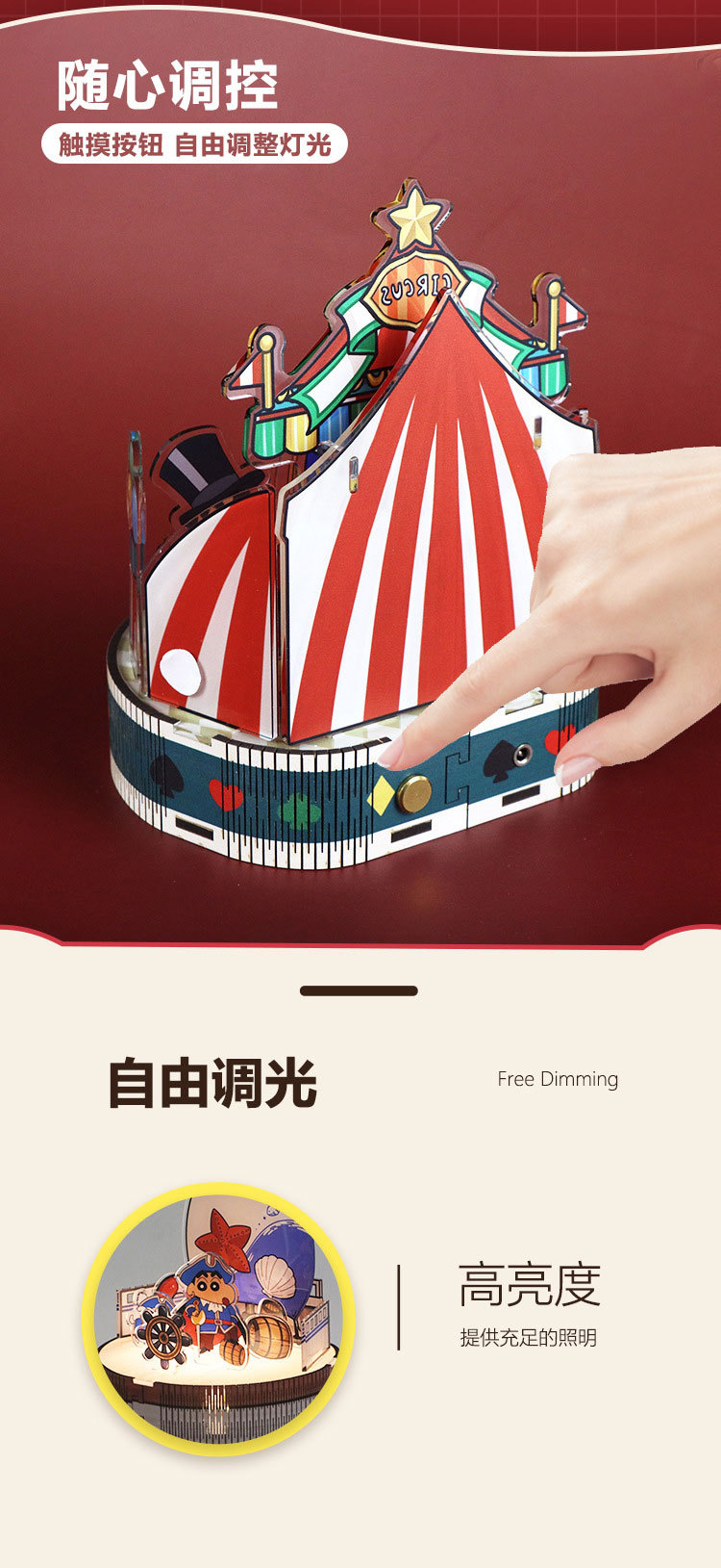 크레용 신짱 수제 DIY 조립 뮤직 박스 스타 소원 목마 모델 판타지 입체 퍼즐 생일 선물