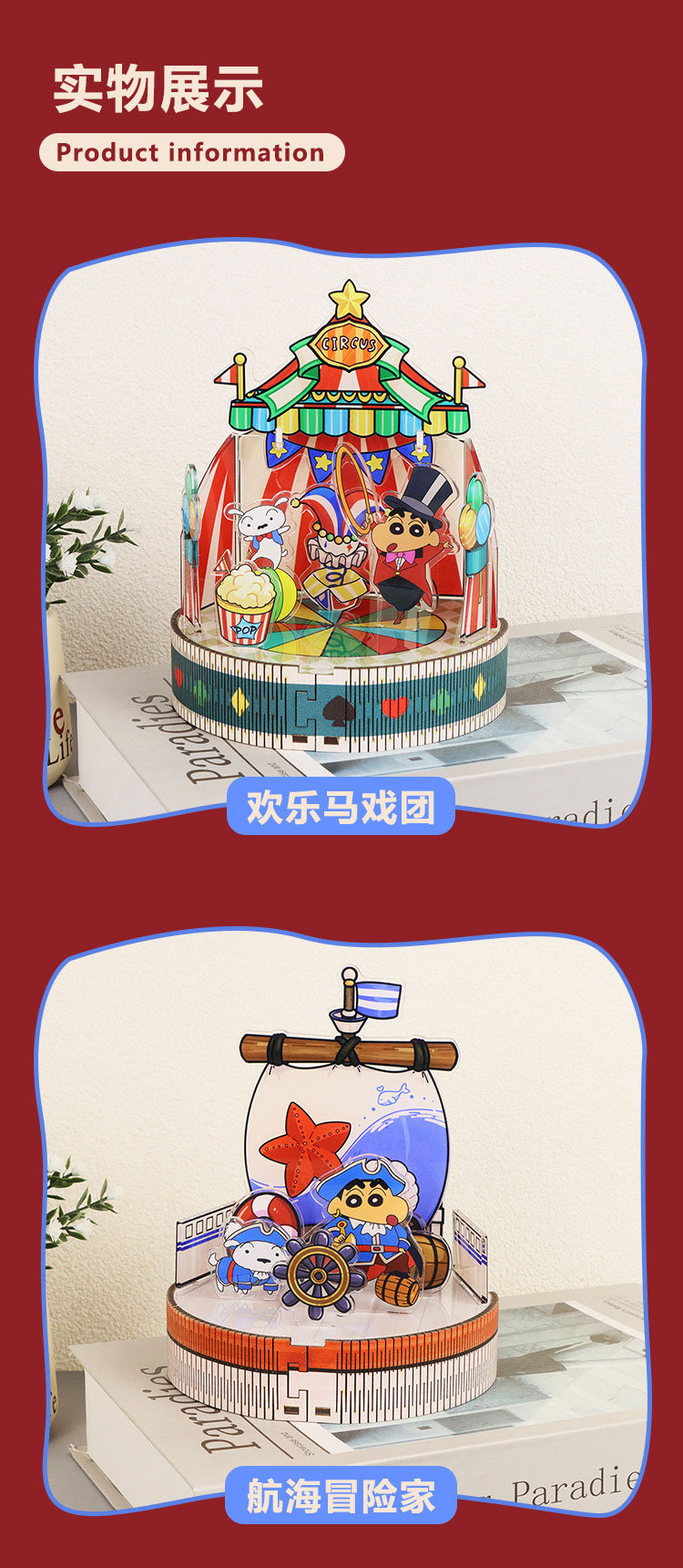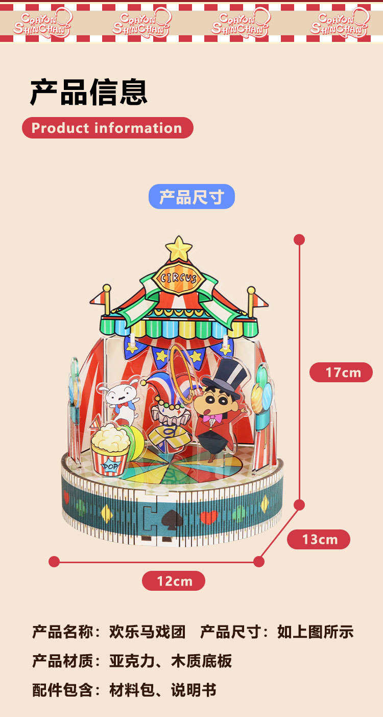 크레용 신짱 수제 DIY 조립 뮤직 박스 스타 소원 목마 모델 판타지 입체 퍼즐 생일 선물스토어 가기