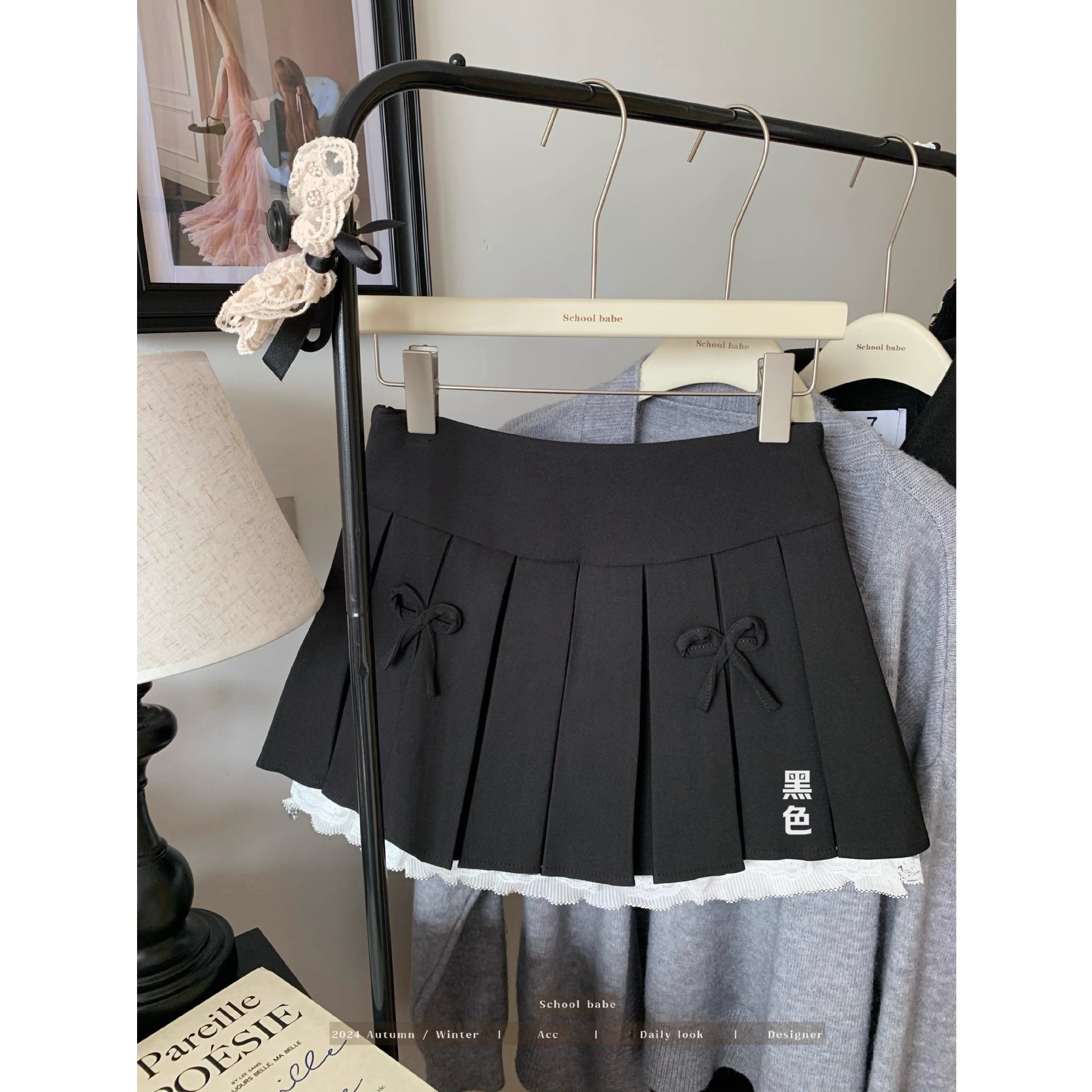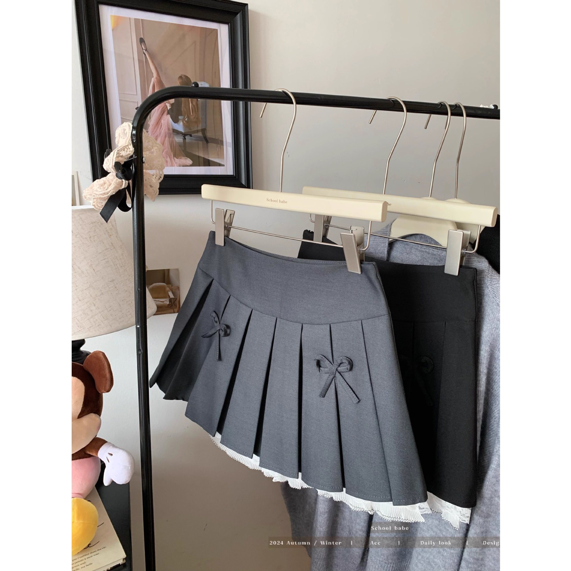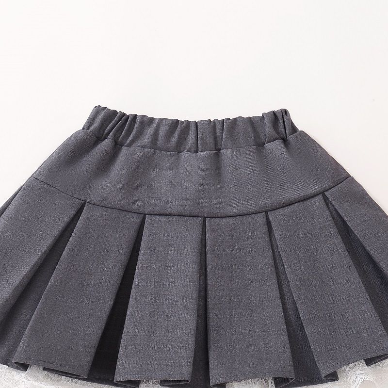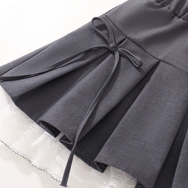 여아용 그레이 플리츠 스커트, 하이웨이스트, 봄, 가을 신상 슬리밍 반기장 스커트, 다용도 리본 매듭스토어 가기