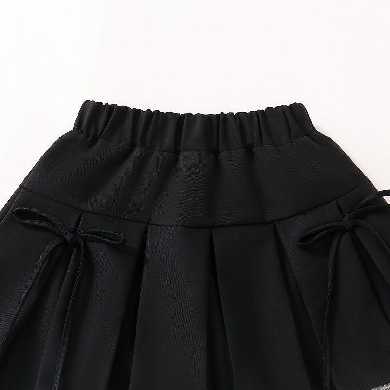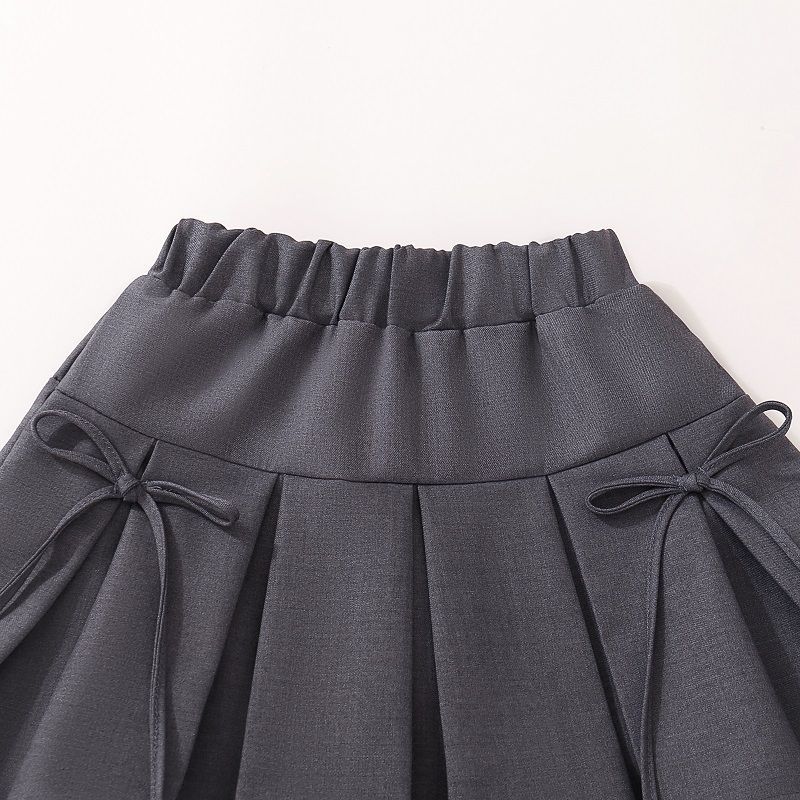 여아용 그레이 플리츠 스커트, 하이웨이스트, 봄, 가을 신상 슬리밍 반기장 스커트, 다용도 리본 매듭