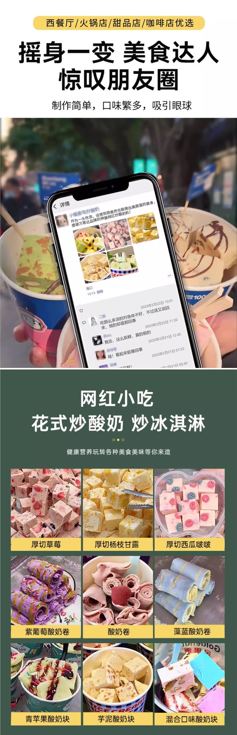 두껍게 썬 요거트 튀김기, 아이스크림 튀김기, 얼음 튀김기, 상업용 매점 튀김기, 아이스크림 롤 기계, 싱글 및 더블 냄비 튀김기