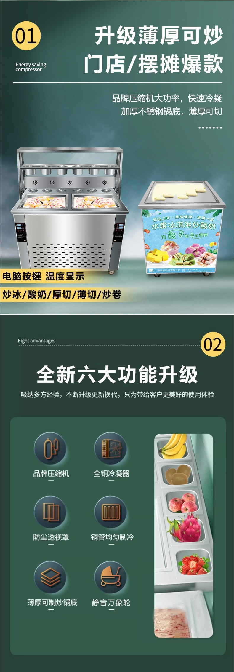• 양면 냄비 - 이중 압력 및 이중 제어 - 얼음 튀김기 및 요구르트 튀김