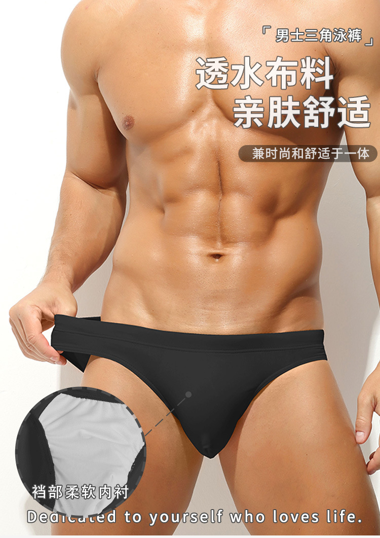 유럽과 미국의 남성 수영 트렁크 삼각형 더블 레이어 빠른 건조 나일론 아이스 실크 전문 수영 트렁크 성인 남성 수영 반바지
