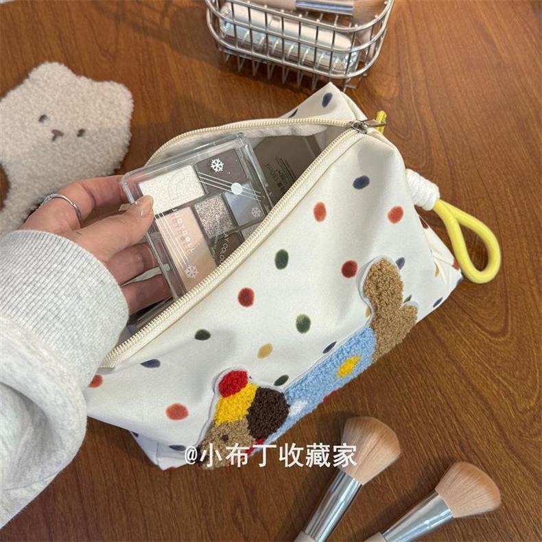 • 컬러풀한 도트무늬 닥스훈트 강아지 화장품 가방 [1개]