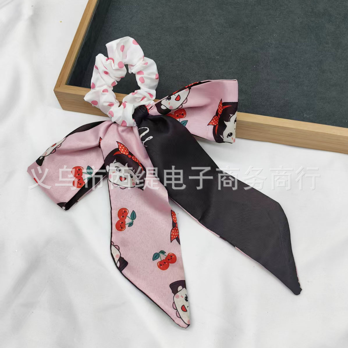 귀여운 만화 과일 콜론 산리오 헤어 리본 헤어 링 작은 소녀 활 머리 로프 리본 헤어 액세서리스토어 가기
