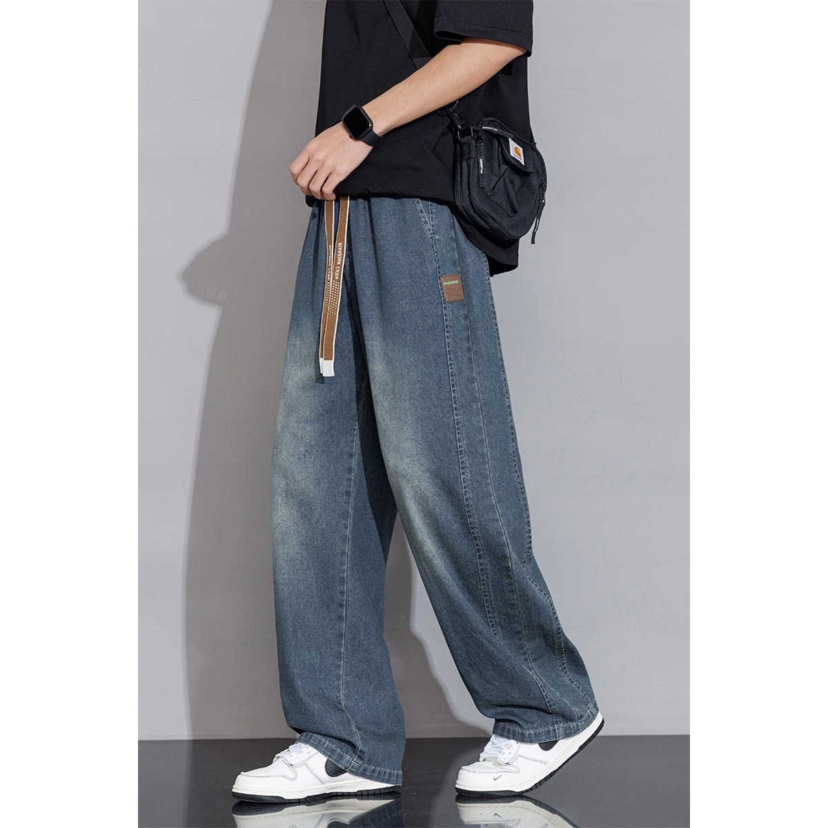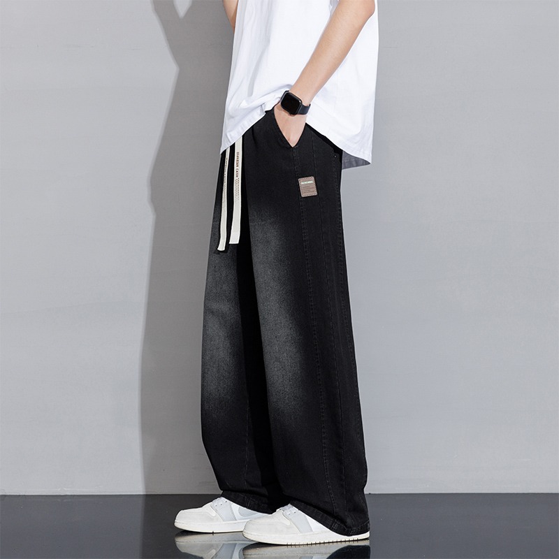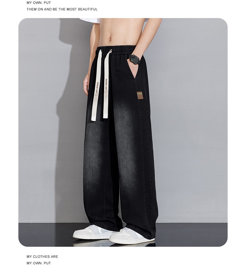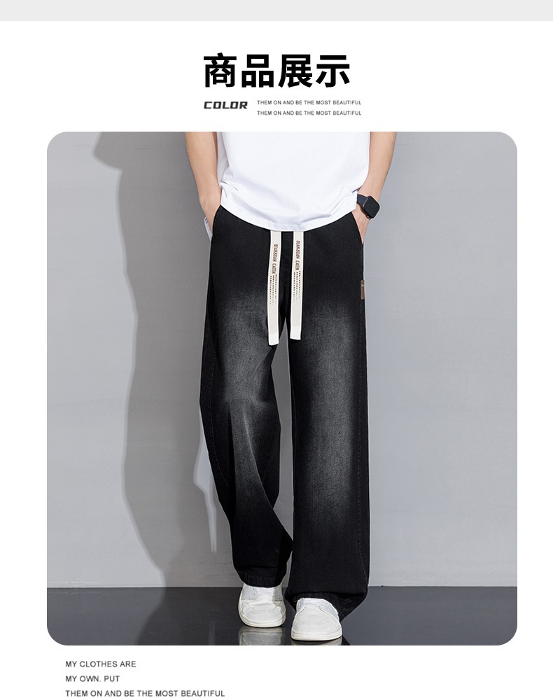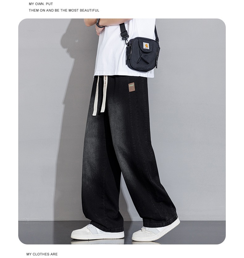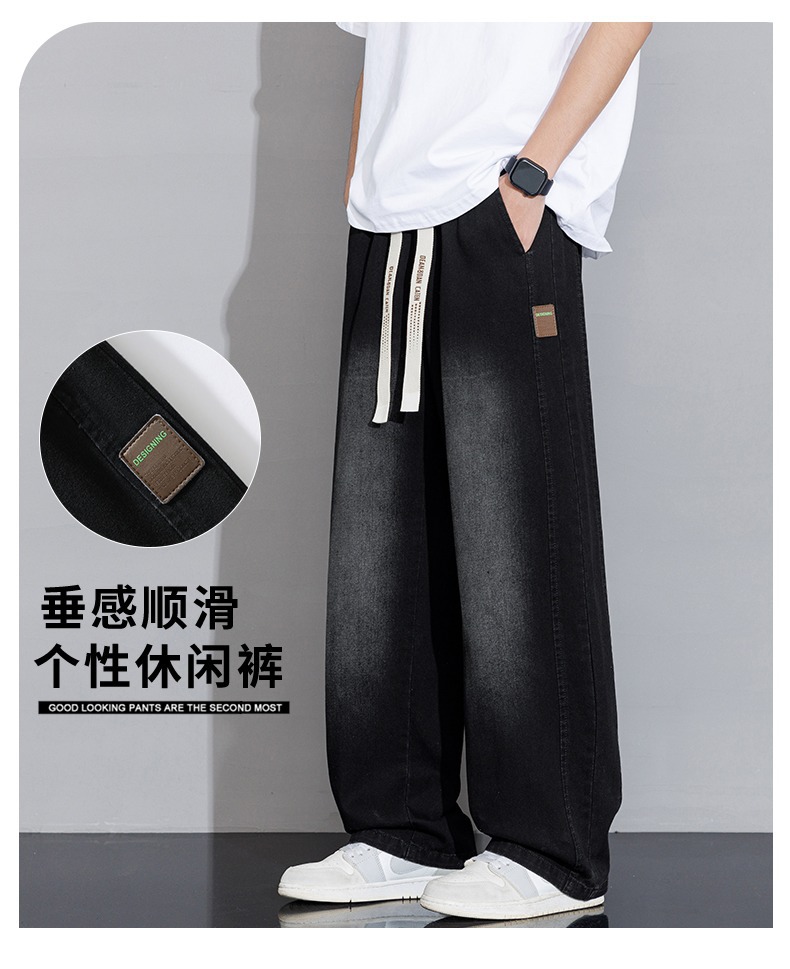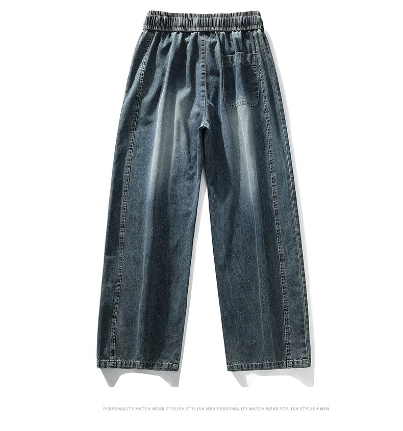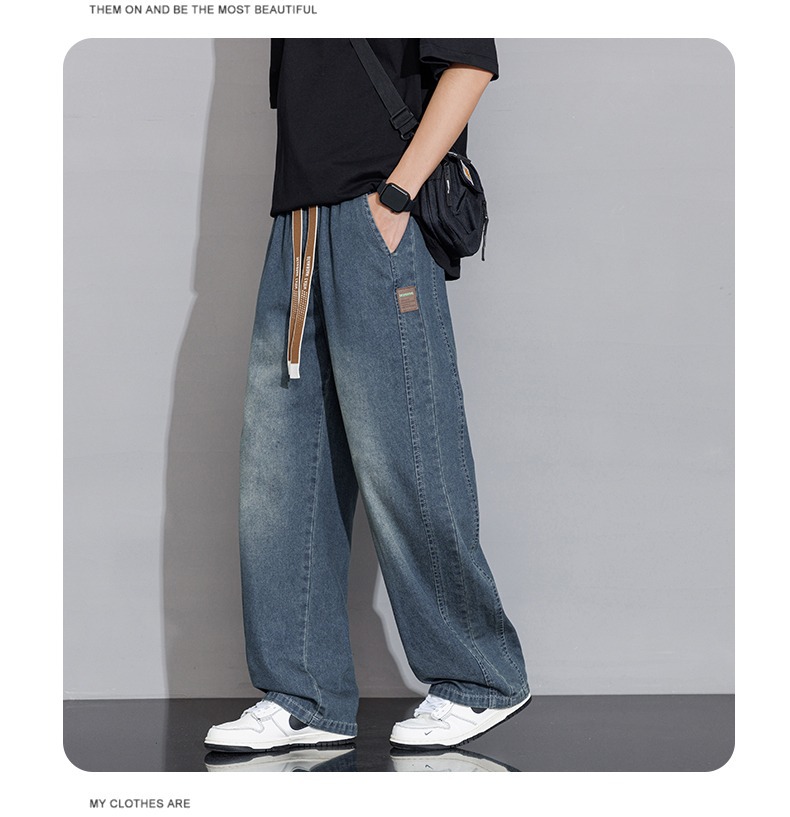 2025 홍콩 스타일 새로운 트렌디 브랜드 아메리칸 레트로 청바지 남성 캐주얼 바지 대형 와이드 레그 바지 남성 스트레이트 루즈스토어 가기