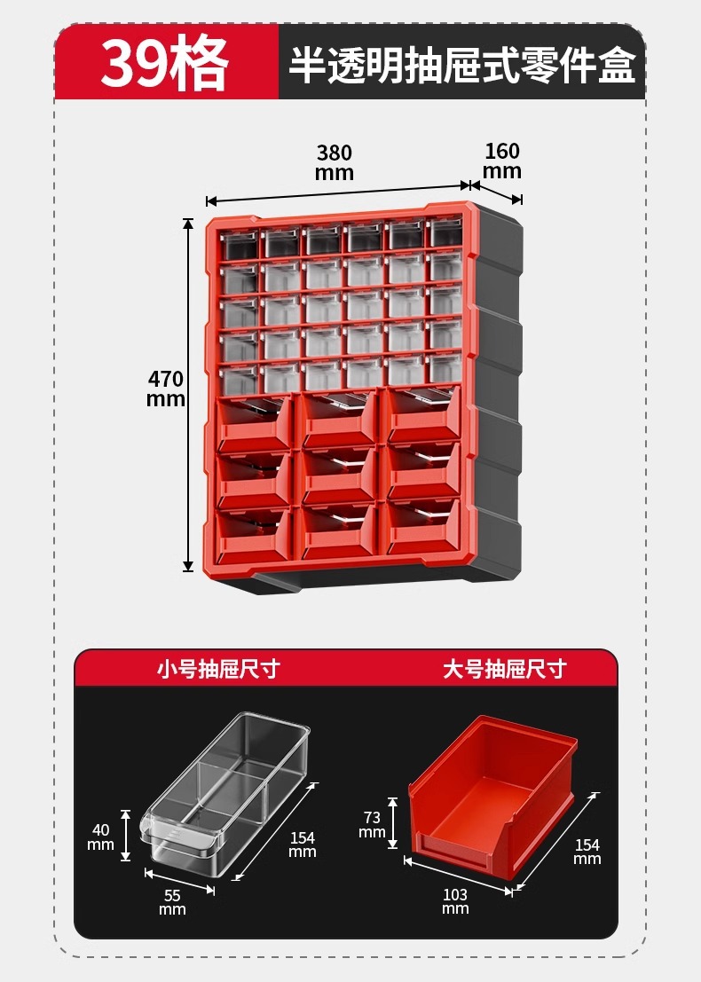 • [신소재-레드] 39칸 반투명 서랍 부품 상자