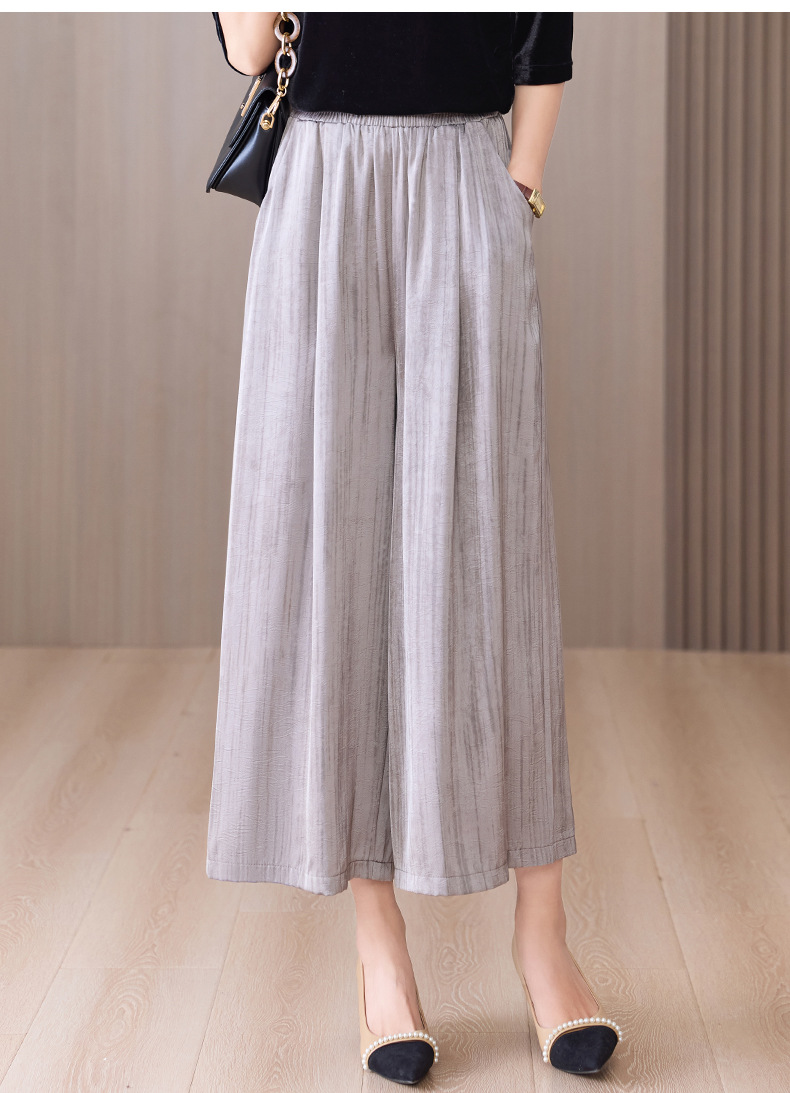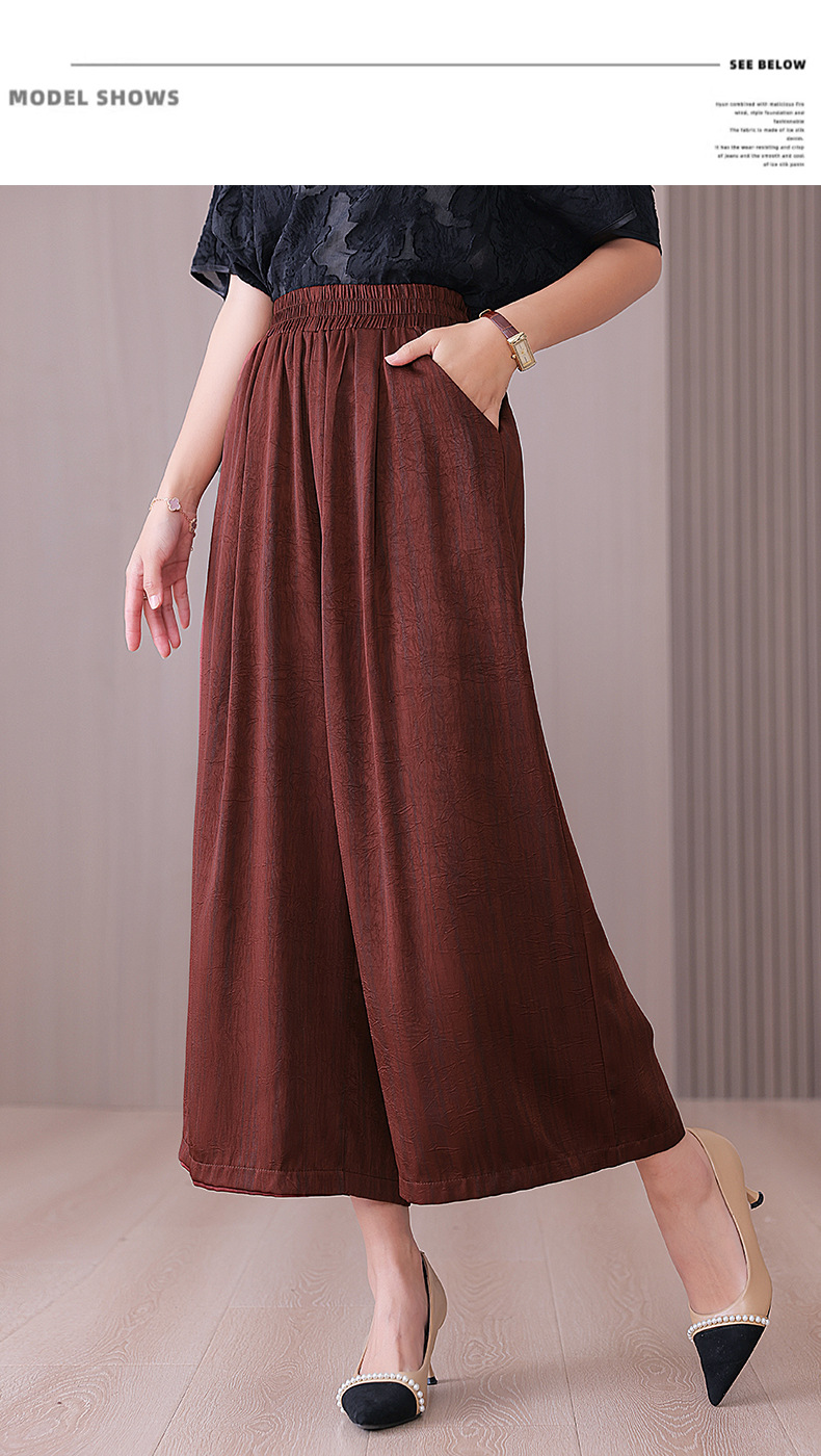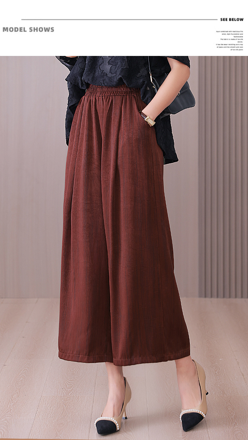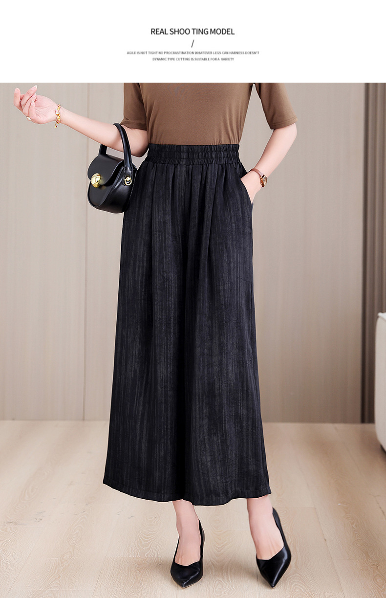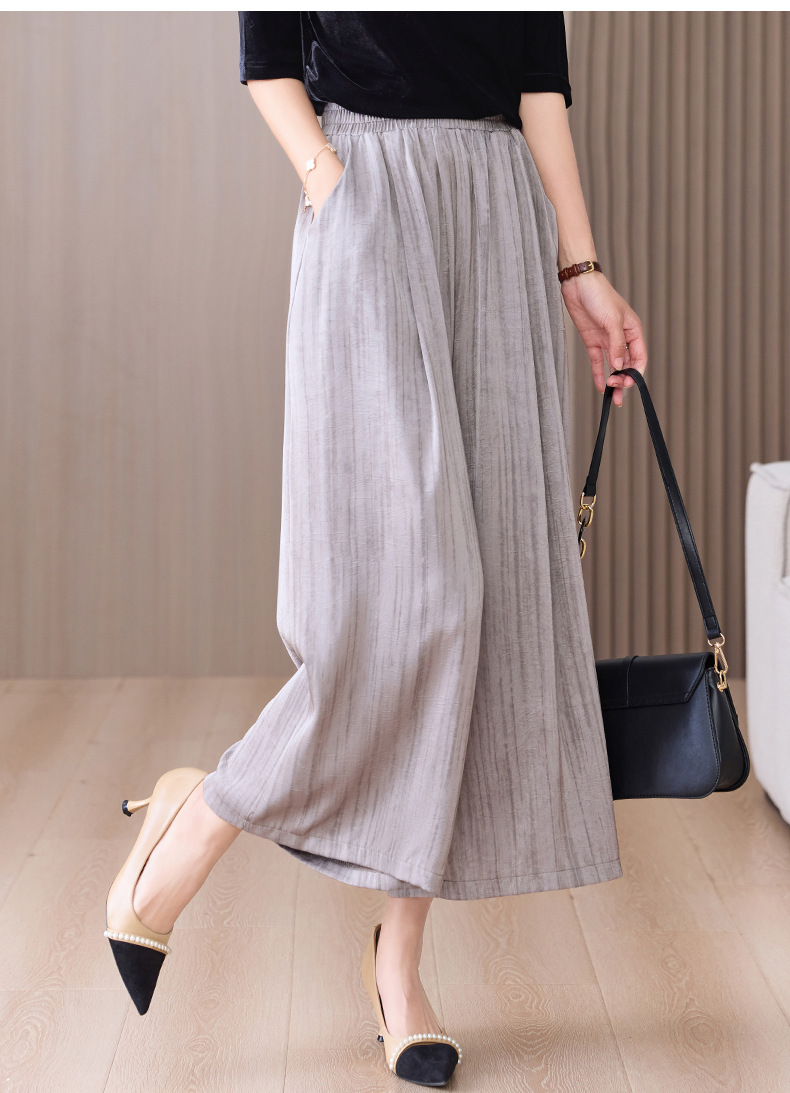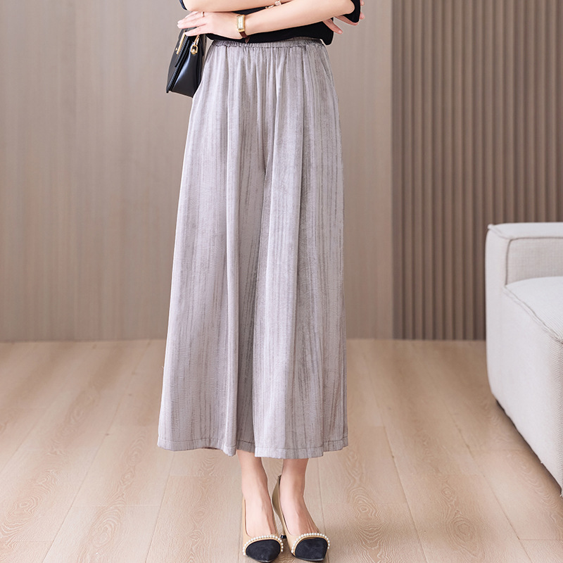 2025 봄과 여름 새로운 새틴 넓은 다리 바지 여성 수묵화 수직 인쇄 캐주얼 줄무늬 바지 도매스토어 가기