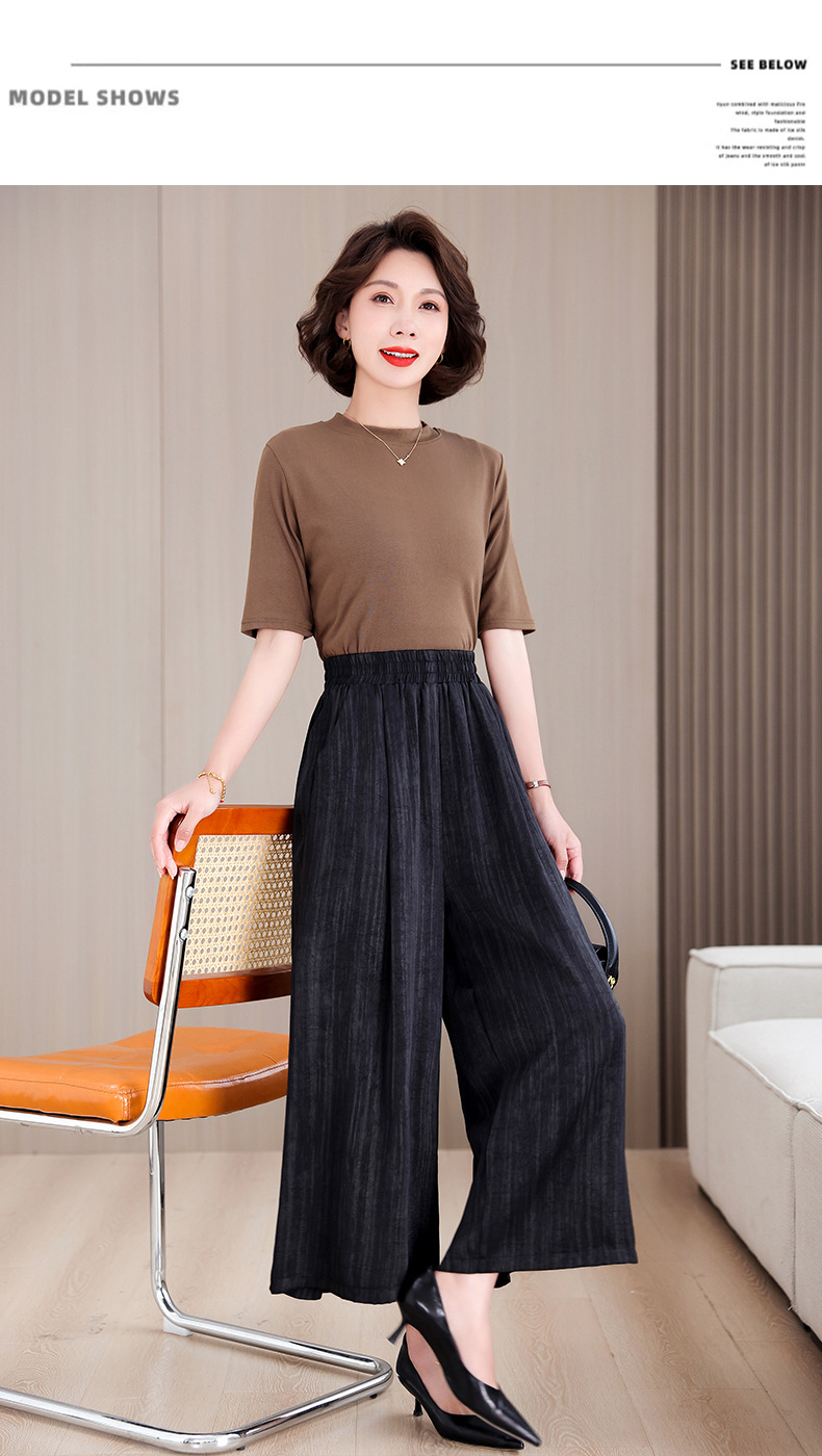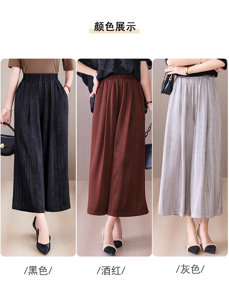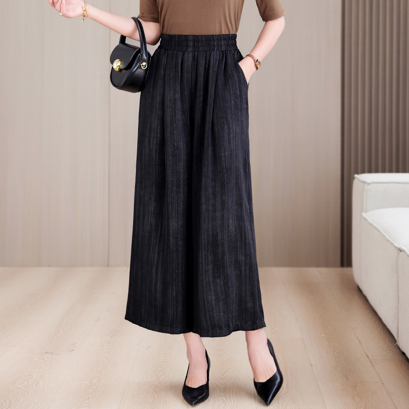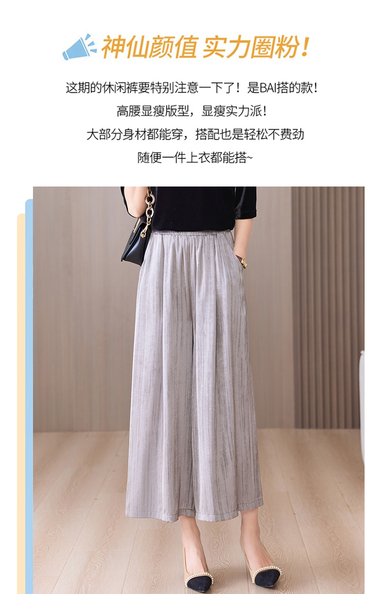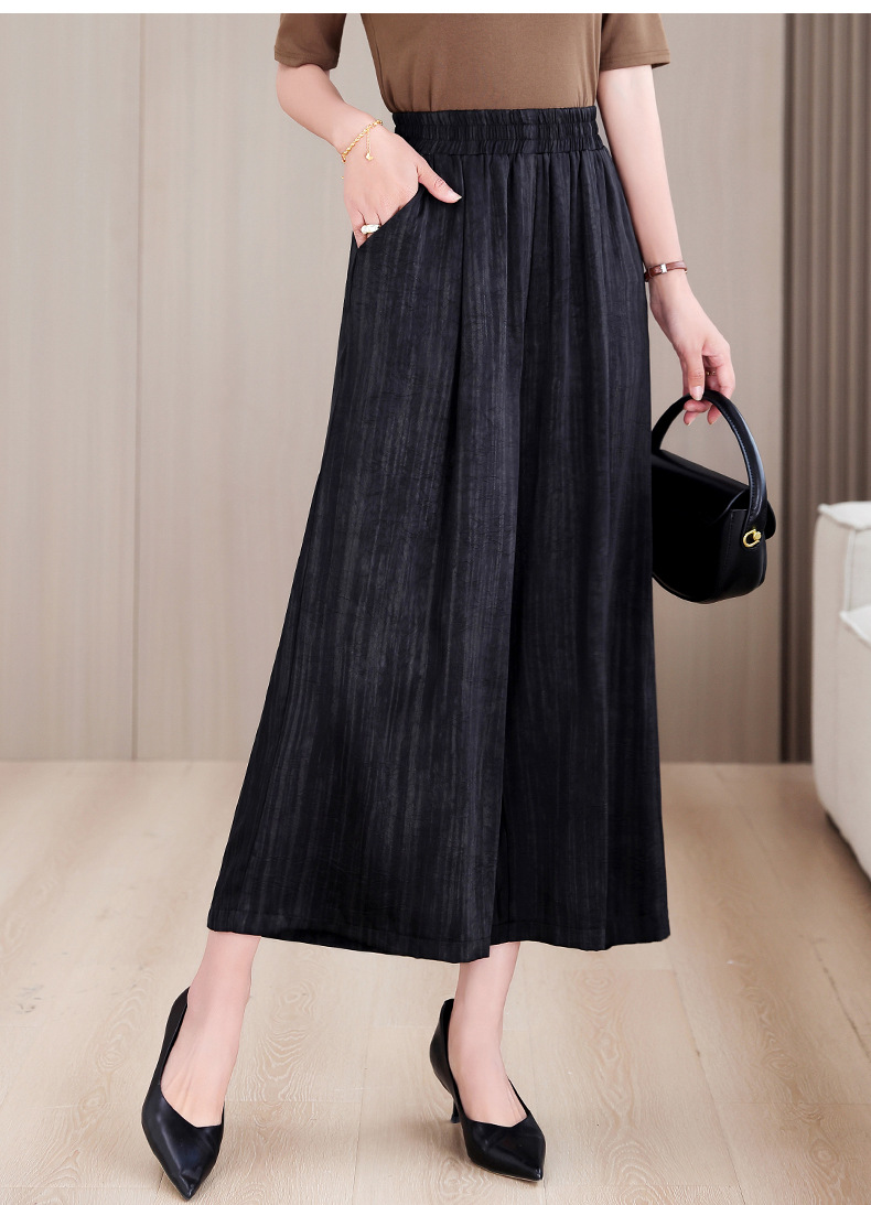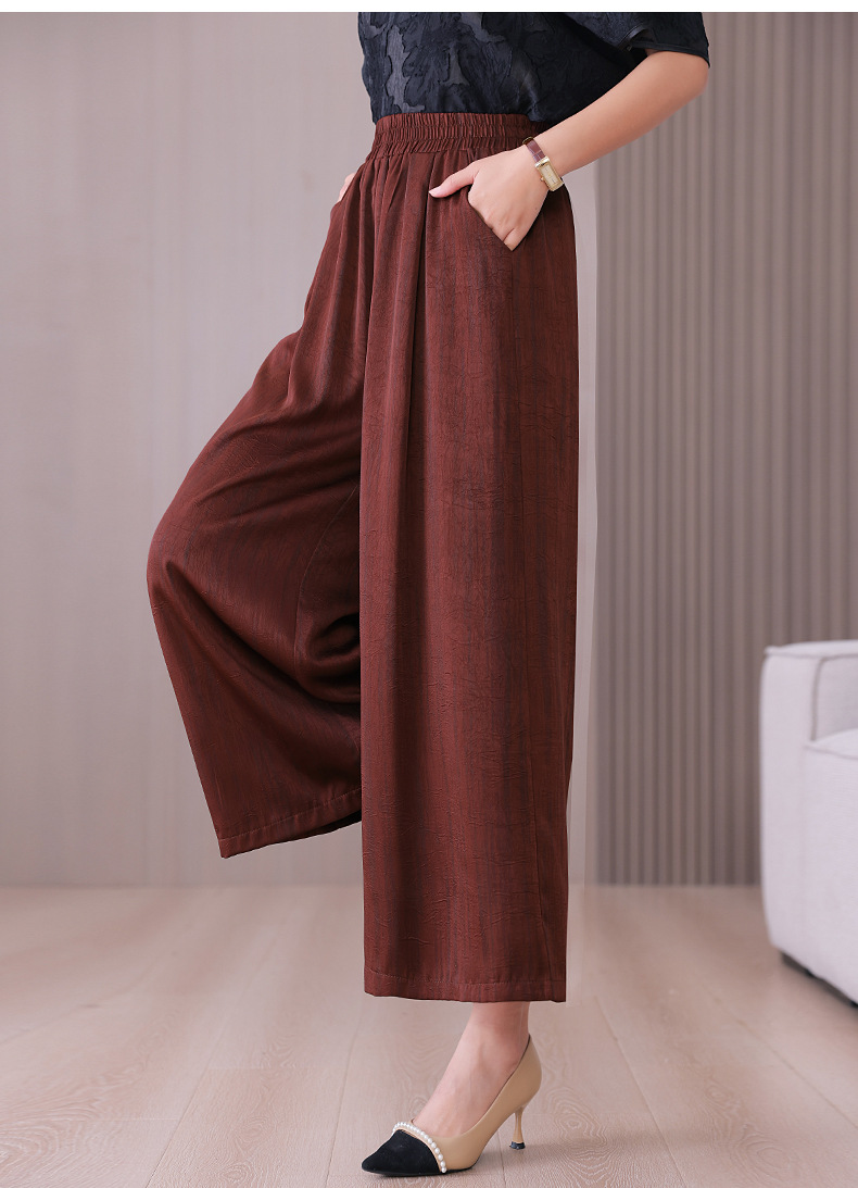 2025 봄과 여름 새로운 새틴 넓은 다리 바지 여성 수묵화 수직 인쇄 캐주얼 줄무늬 바지 도매스토어 가기
