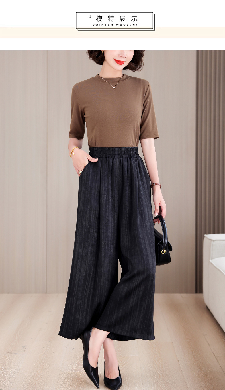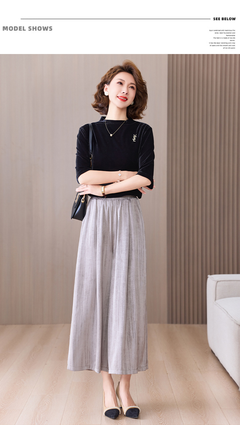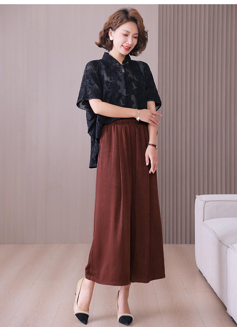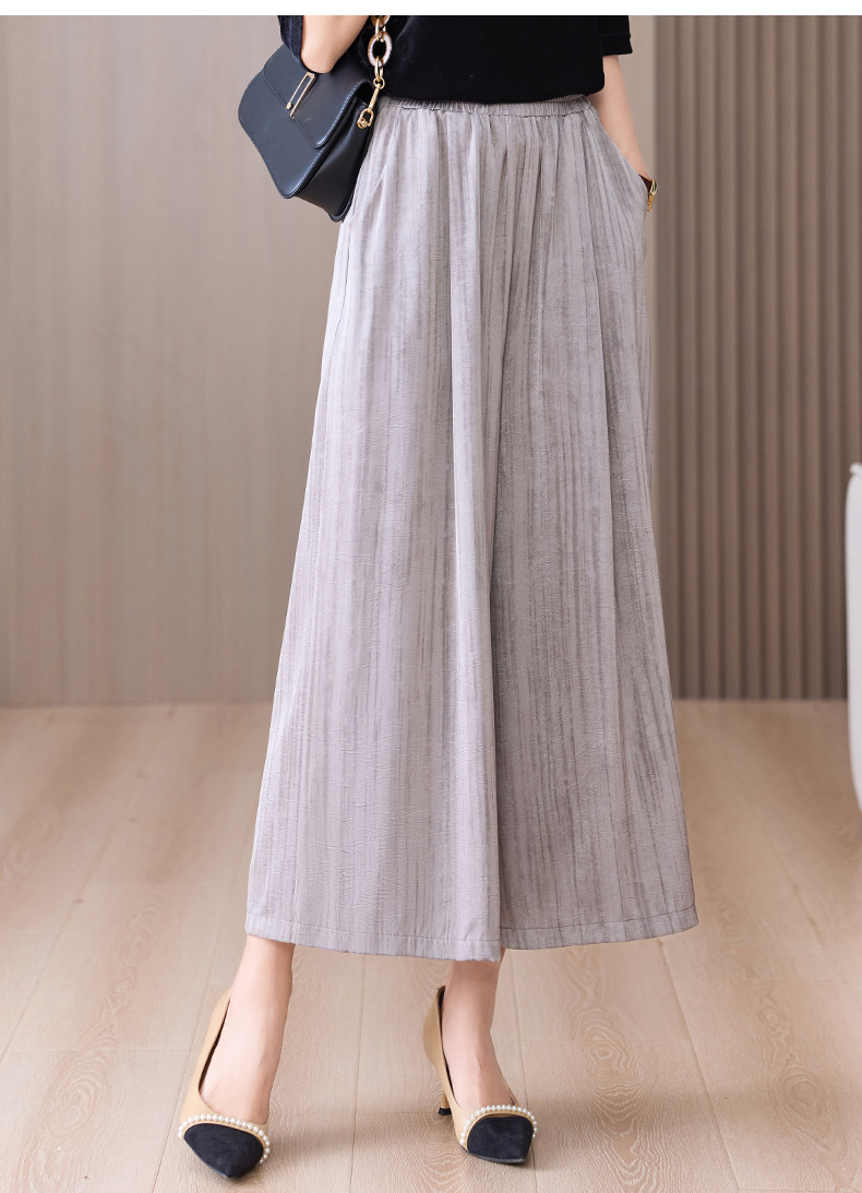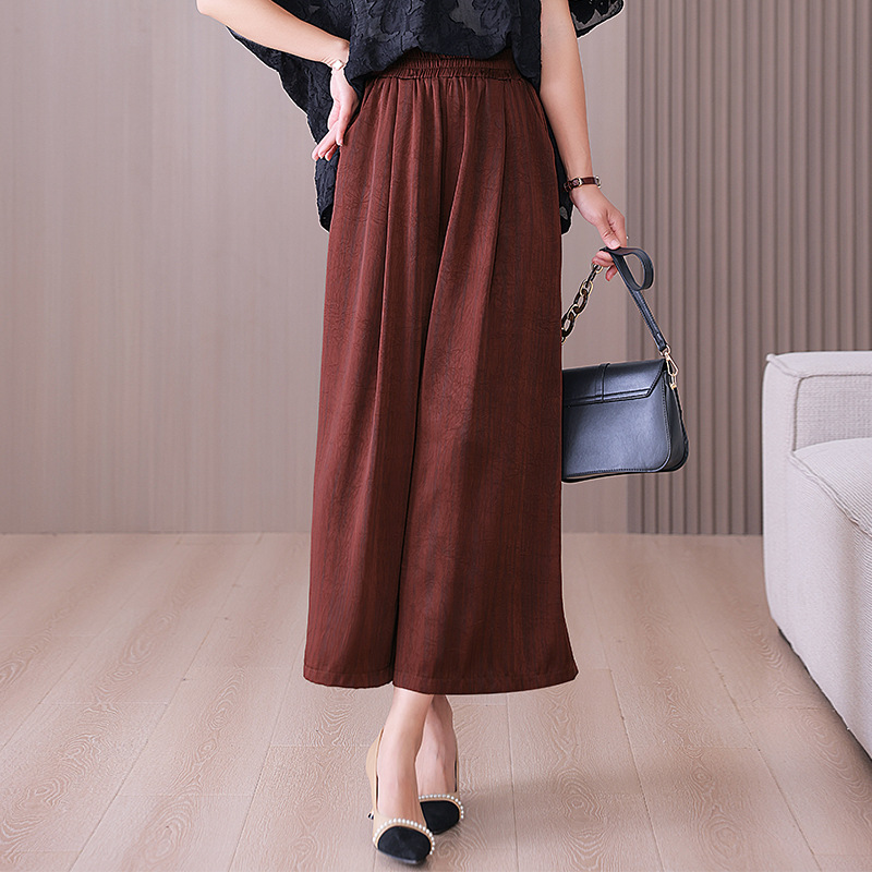 2025 봄과 여름 새로운 새틴 넓은 다리 바지 여성 수묵화 수직 인쇄 캐주얼 줄무늬 바지 도매스토어 가기