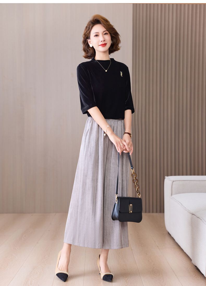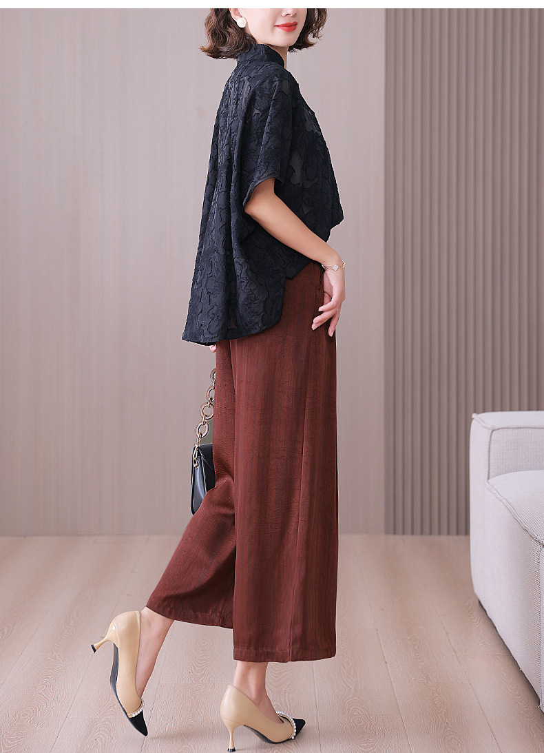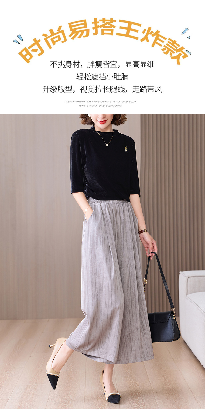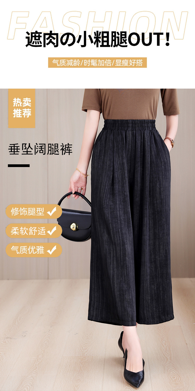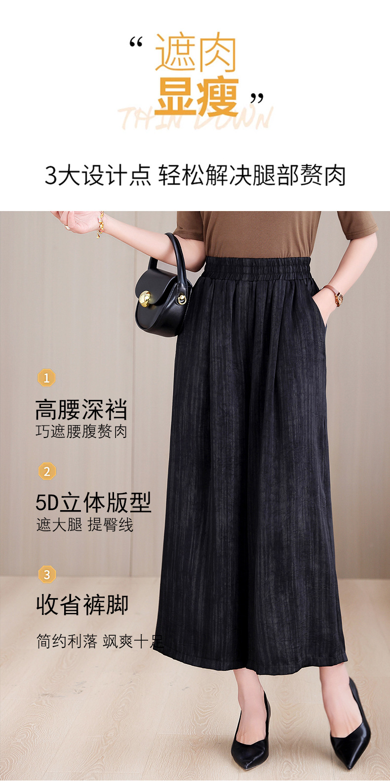 2025 봄과 여름 새로운 새틴 넓은 다리 바지 여성 수묵화 수직 인쇄 캐주얼 줄무늬 바지 도매스토어 가기