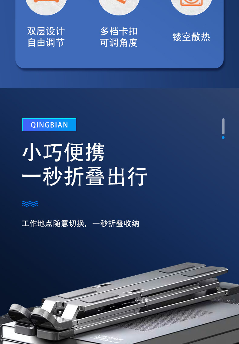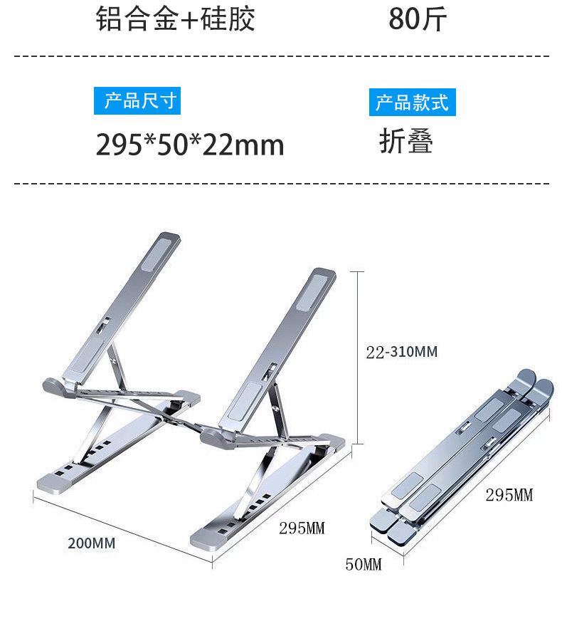 알루미늄 합금 노트북 스탠드, 높이 조절 가능, 휴대용 데스크탑 높이 조절대, 안정적인 냉각, 접이식 이중층, 안정적