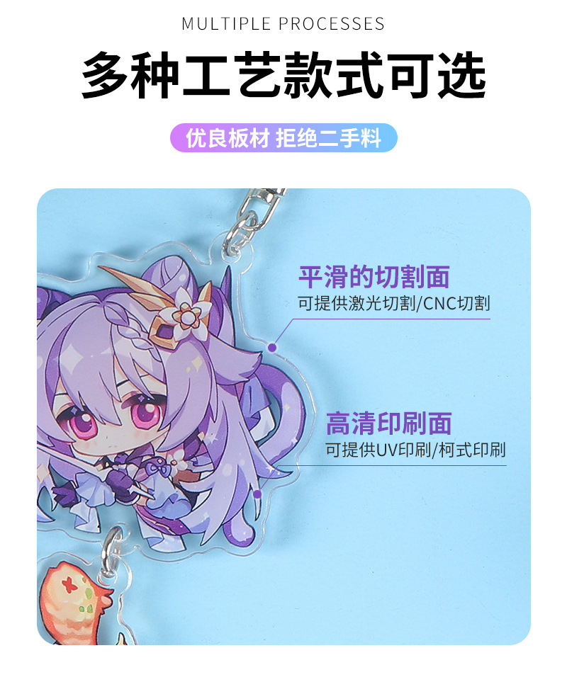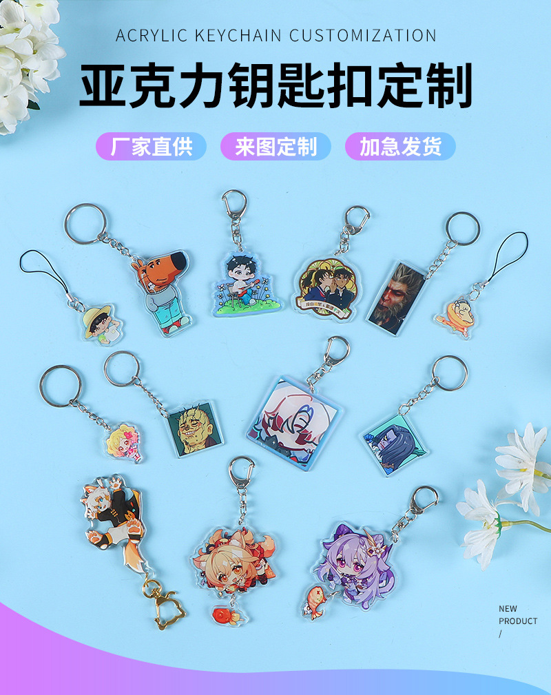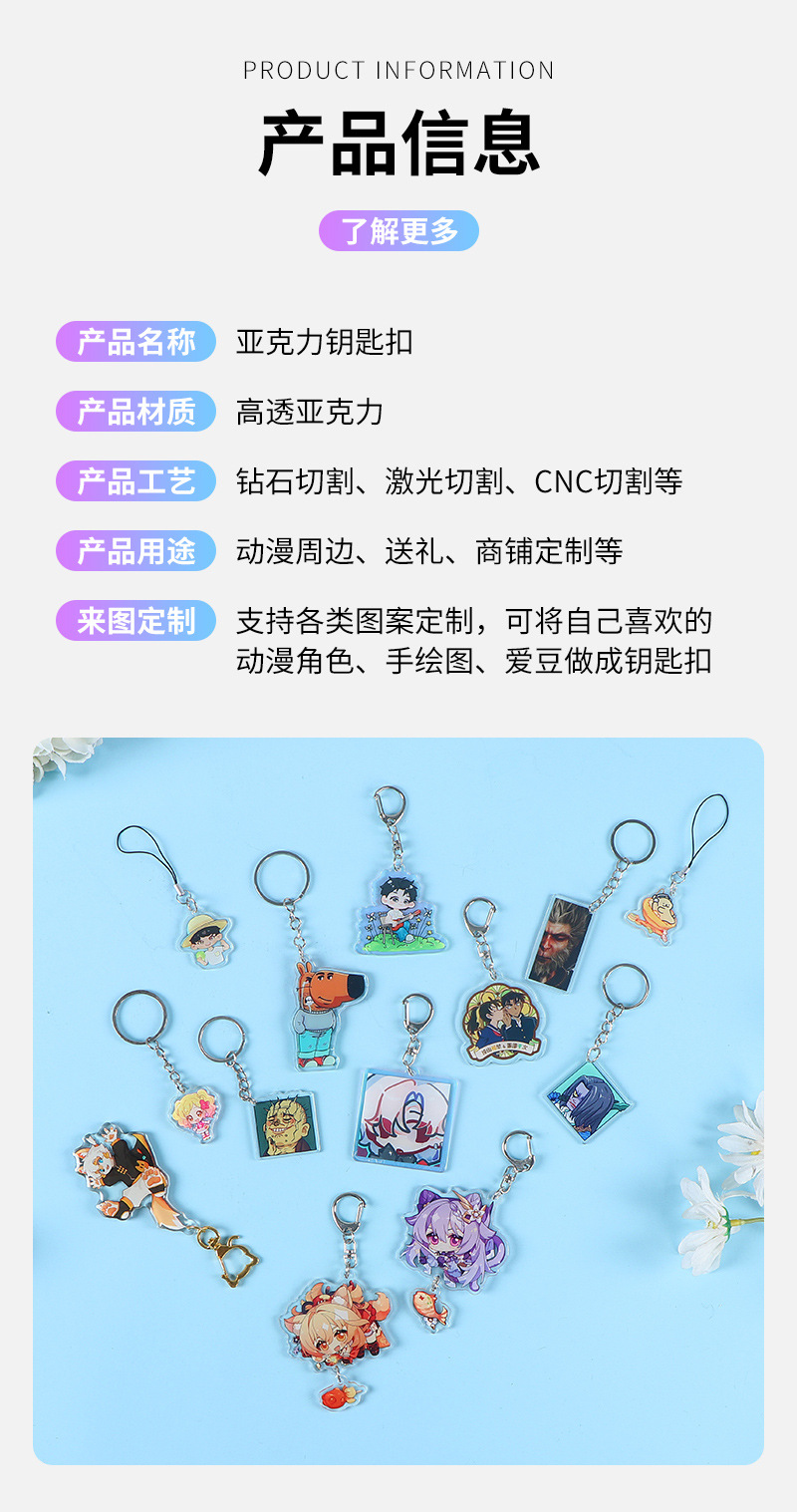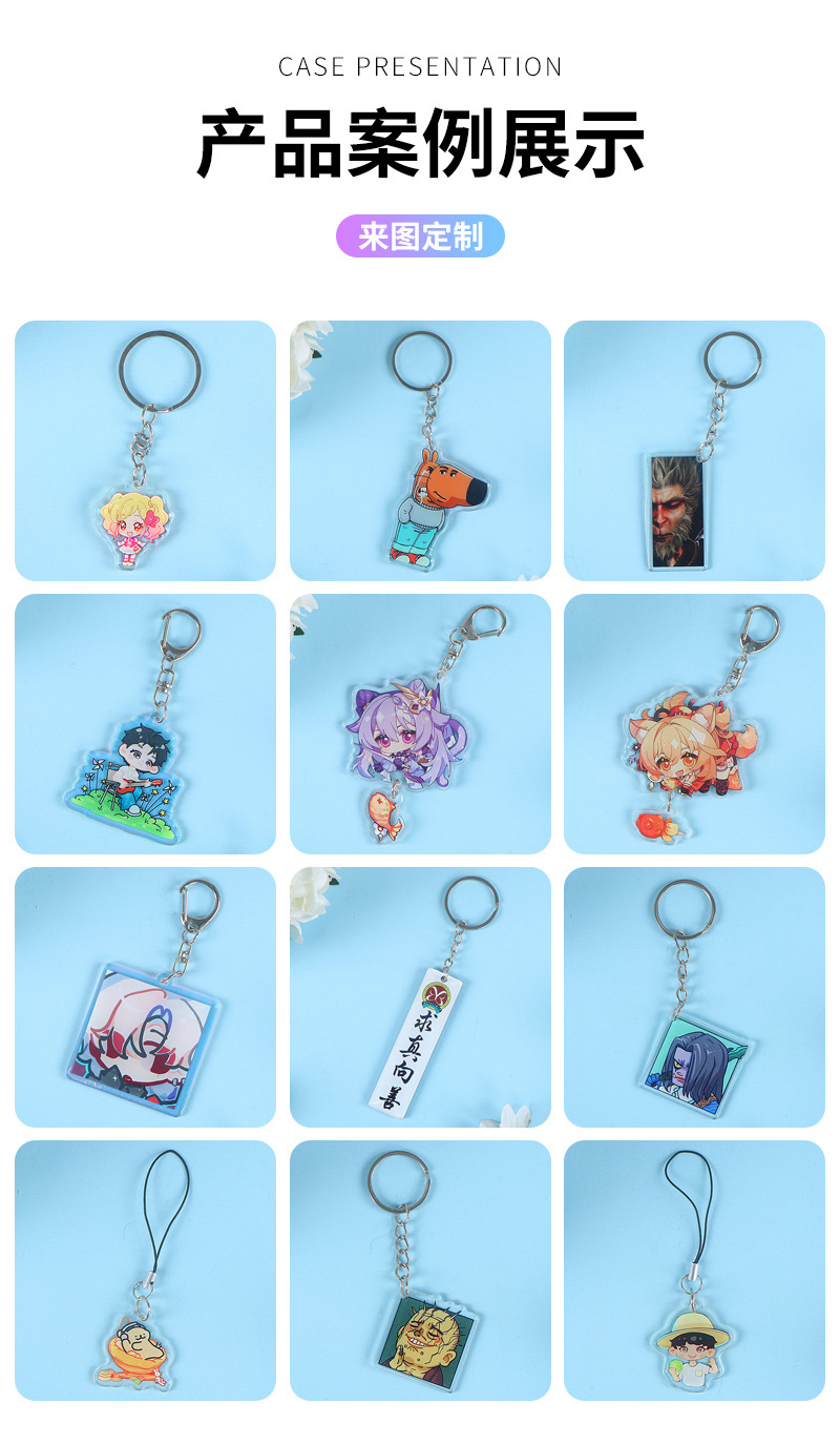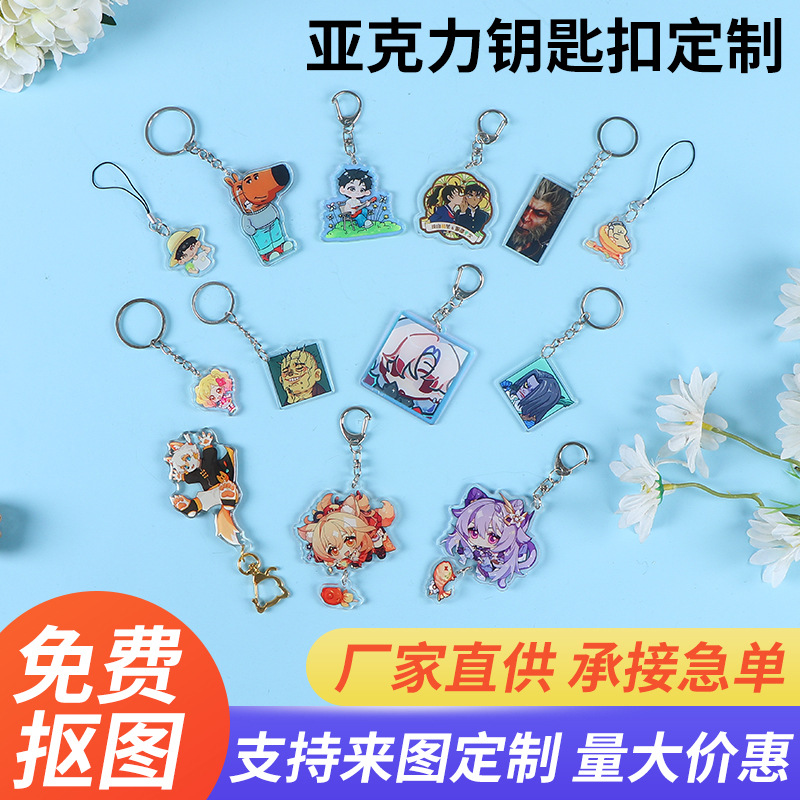 아크릴 키 체인 사용자 정의 인쇄 로고 양면 투명 만화 애니메이션 주변 기념품 키 체인 펜던트