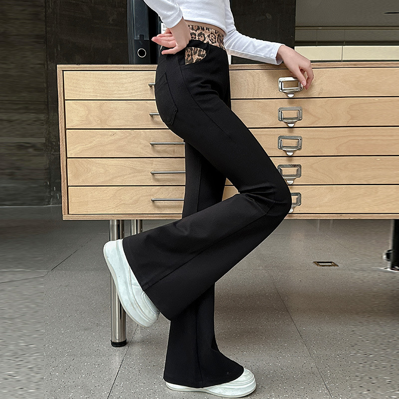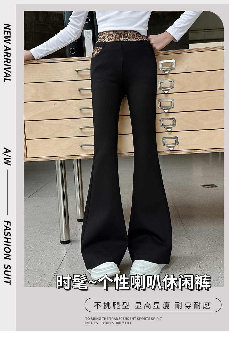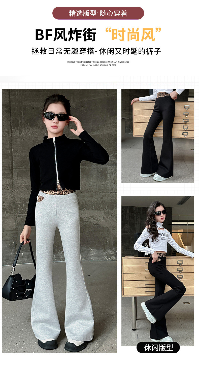 2025 캐주얼 하이 허리 플라 바지 소녀 서양식 유행 봄 가을 소녀 대형 어린이 플라 바지 니트 바지스토어 가기