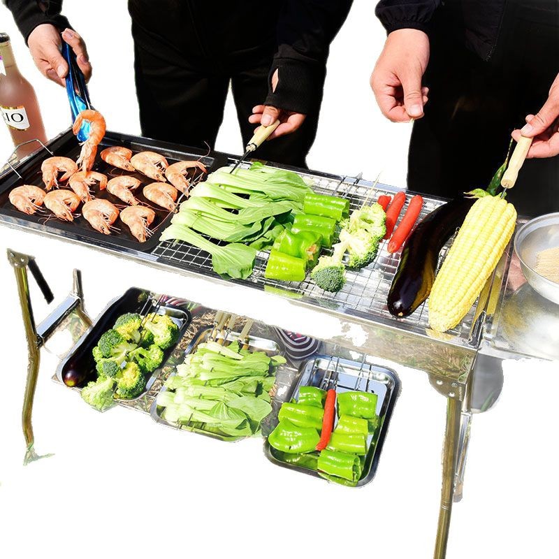 대형 스테인레스 스틸 그릴 숯 야외 바베큐 그릴 야외 가정용 숯불 그릴 풀 세트 무료 배송스토어 가기