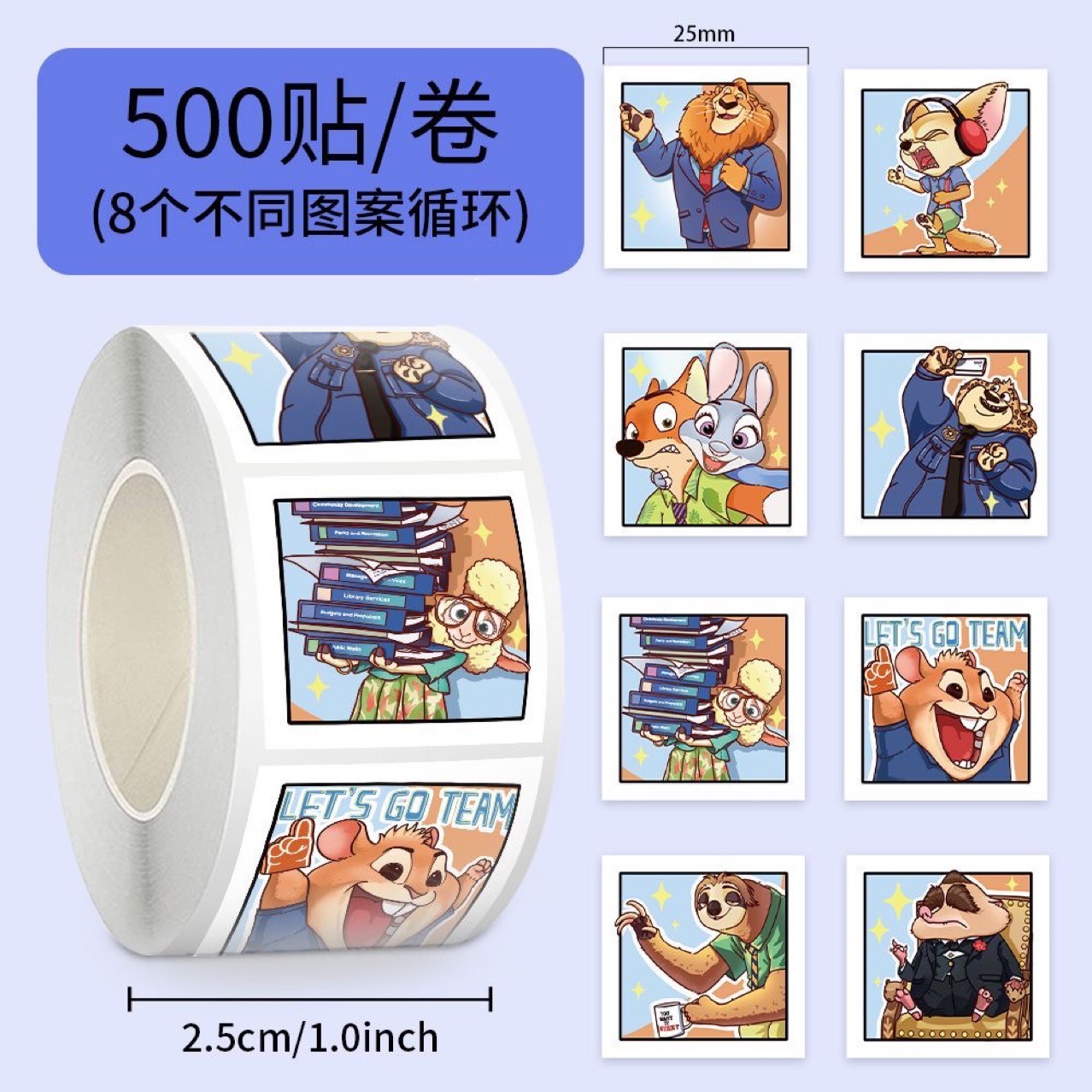 Zootopia 스티커 롤 500 스티커 diy 만화 어린이 보상 핸드북 테이프 씰링 스티커 롤 스티커