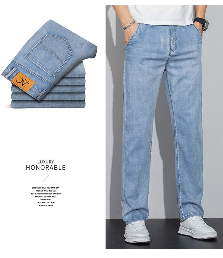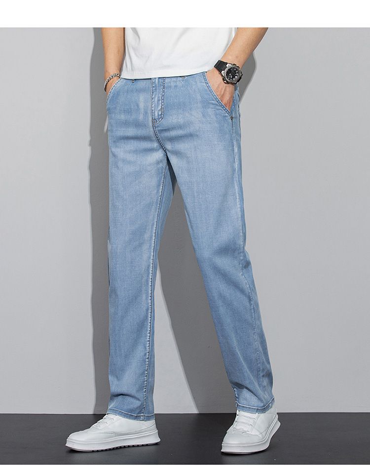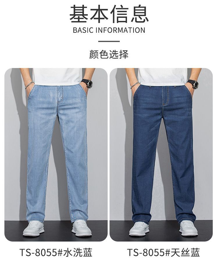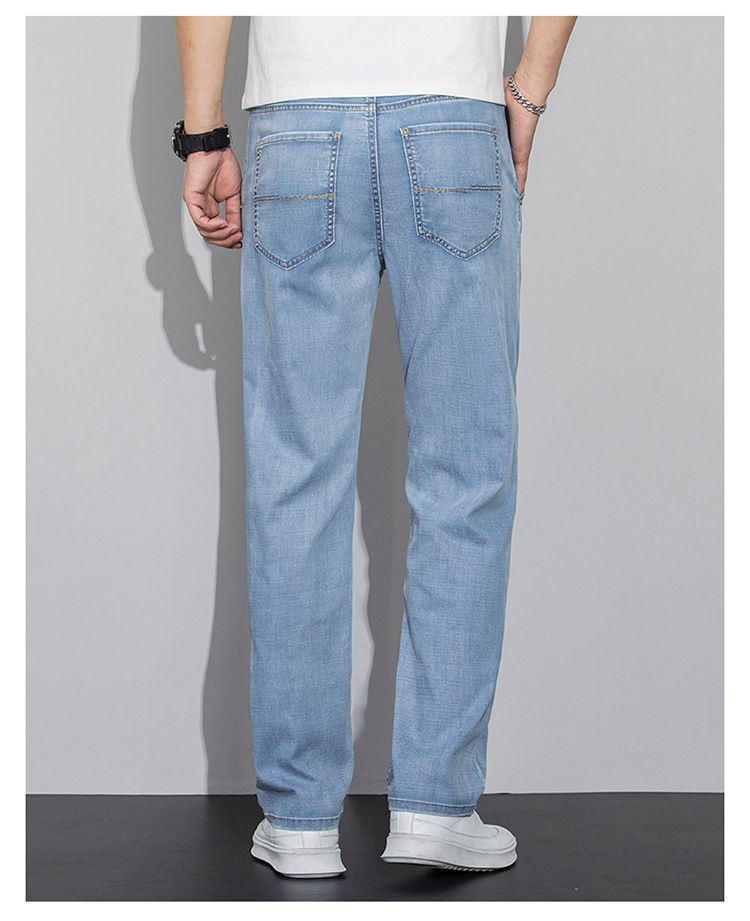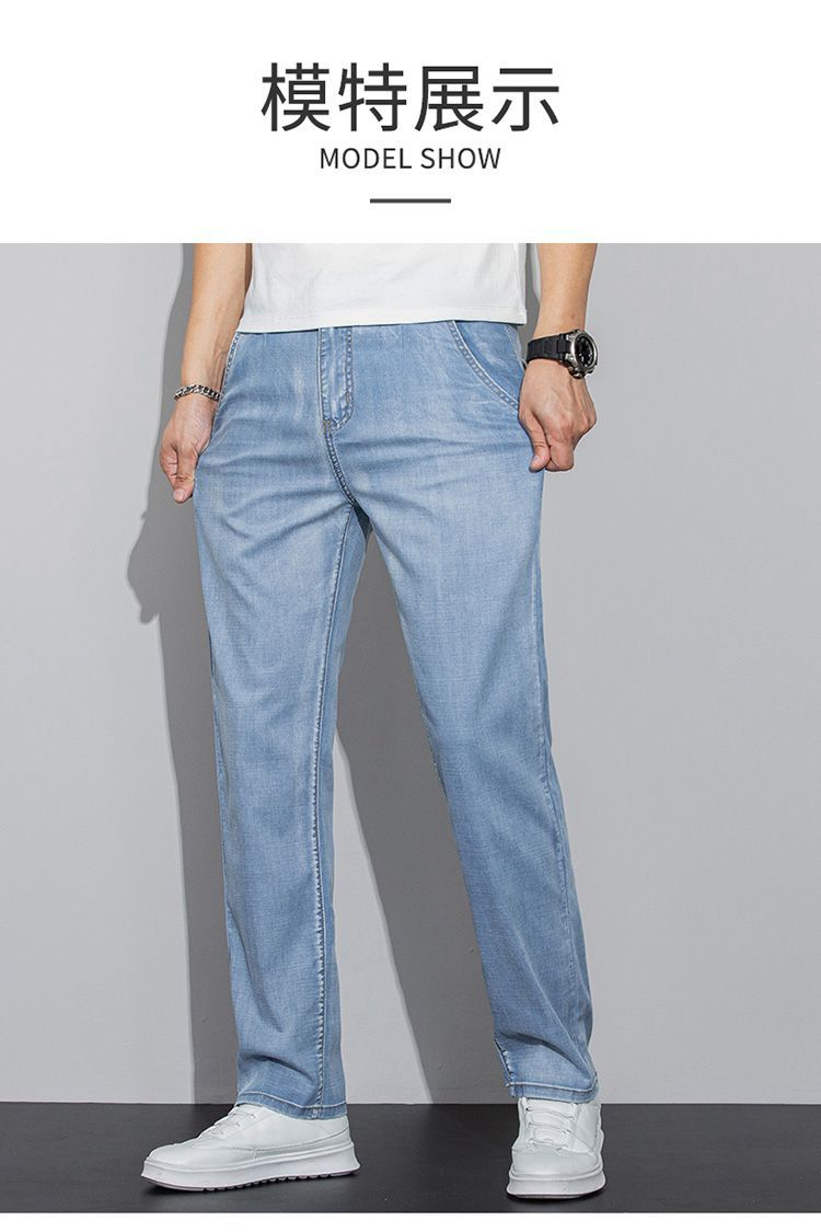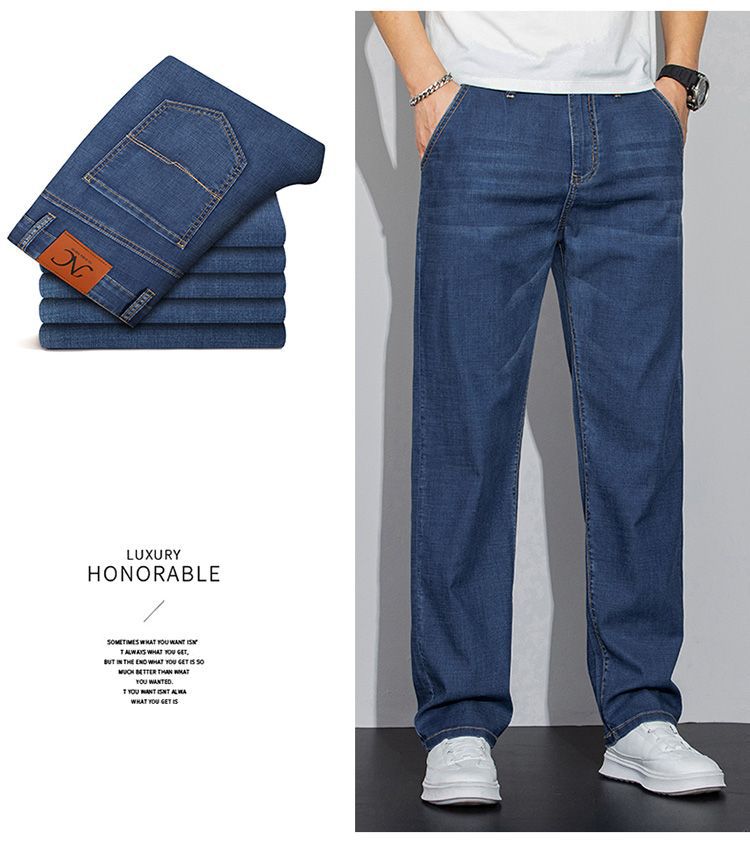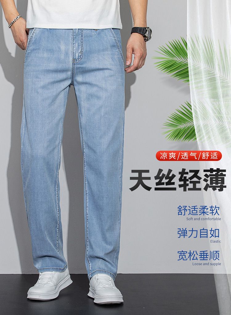 여름 초박형 Lyocell Tencel 남성용 느슨한 스트레이트 라이트 비즈니스 편안한 플러스 사이즈 라이트 컬러 캐주얼 데님 재고스토어 가기