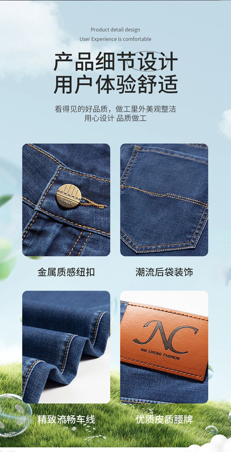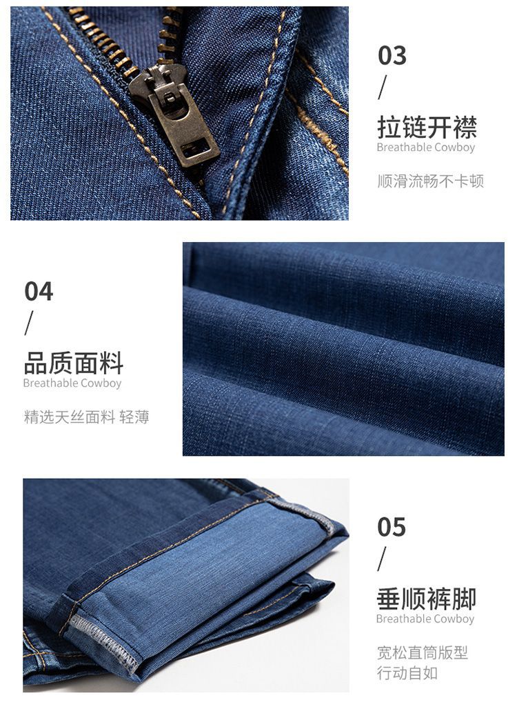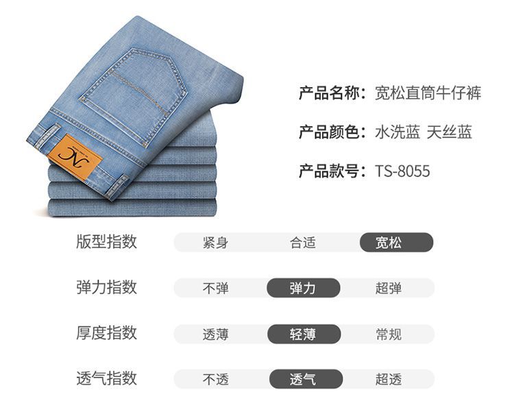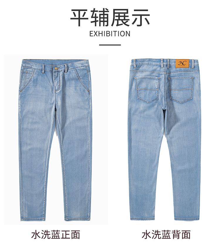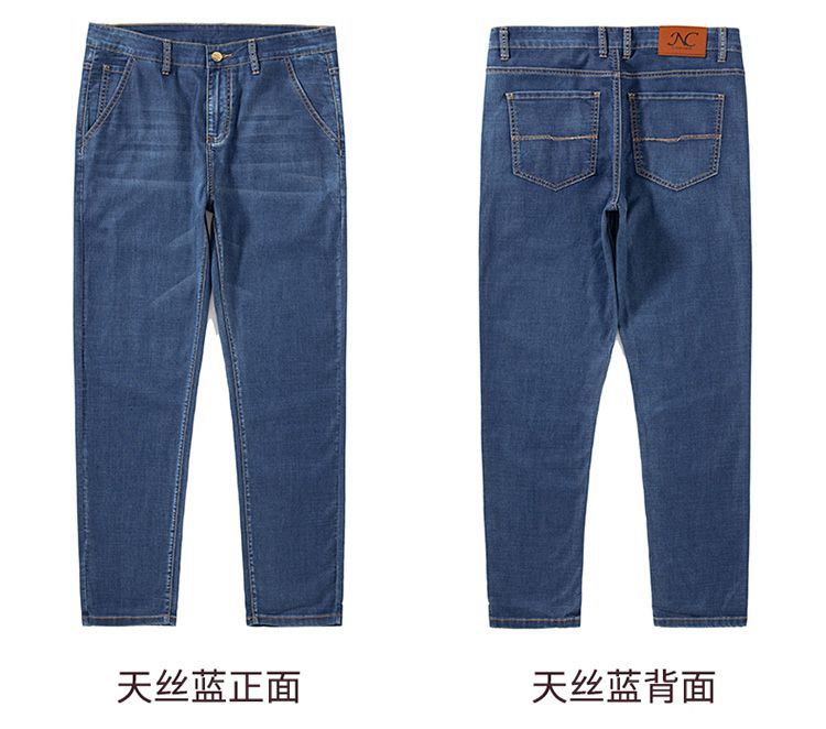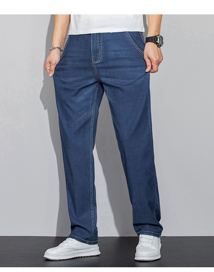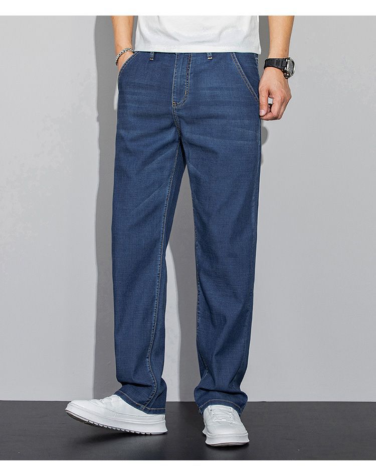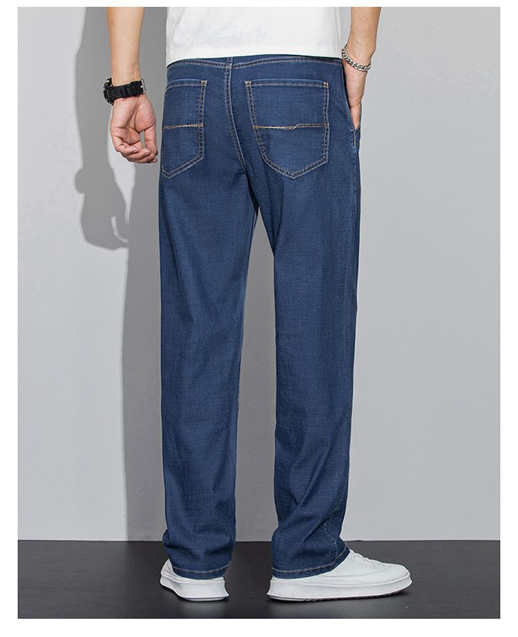여름 초박형 Lyocell Tencel 남성용 느슨한 스트레이트 라이트 비즈니스 편안한 플러스 사이즈 라이트 컬러 캐주얼 데님 재고스토어 가기