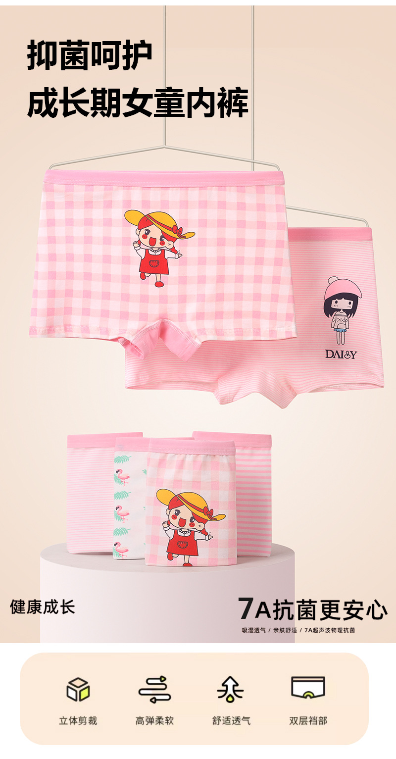 아동용 속옷, 여성용 사각팬티, 큰 아동용 순면 항균 중간 허리 통기성 사각팬티, 엉덩이를 조이지 않음스토어 가기