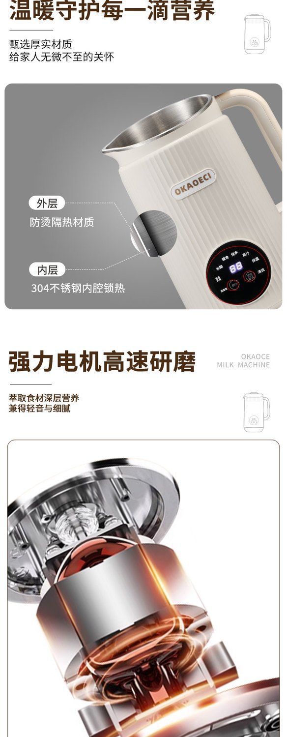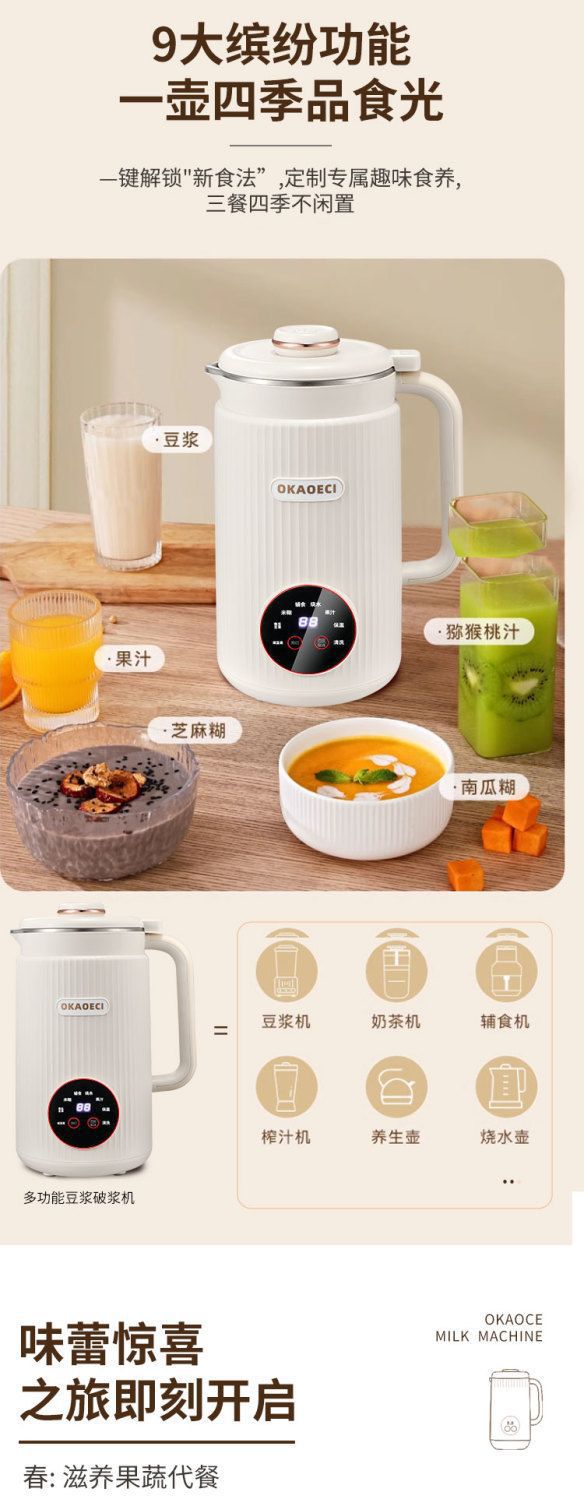 독일 OKAOECI 완전 자동 두유 기계 다기능 벽 파괴 가열 필터링 없음 영양 대용량스토어 가기