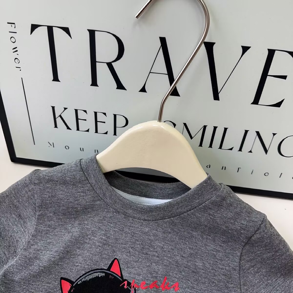 여름 소녀 세트 2025 새로운 만화 고양이 반팔 티셔츠 레이스 컬롯 투피스 크로스 보더 헤어