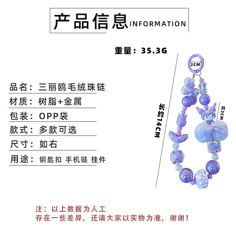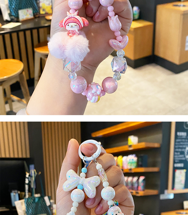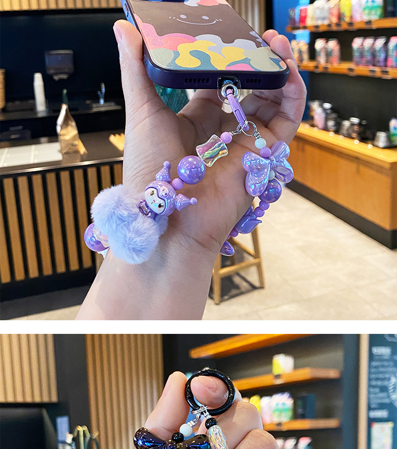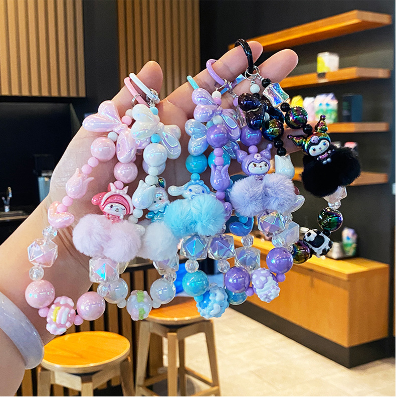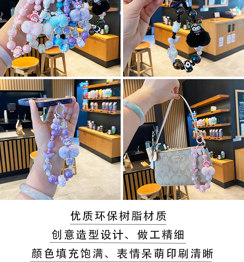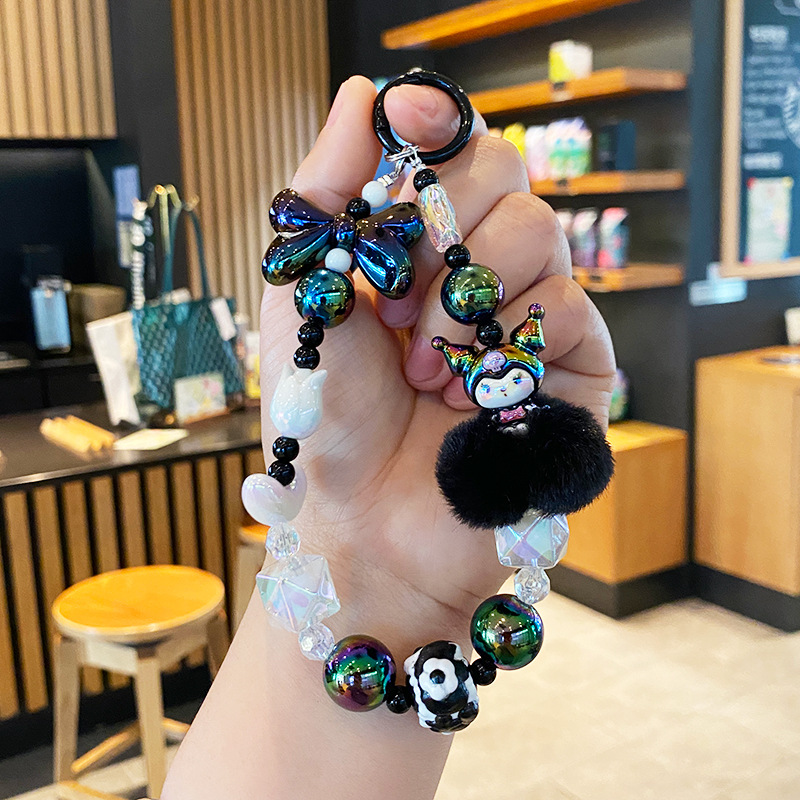 창조적 인 kulomi 귀여운 모피 공 구슬 키 체인 절묘한 여성 kulomi 휴대 전화 케이스 끈 액세서리 도매
