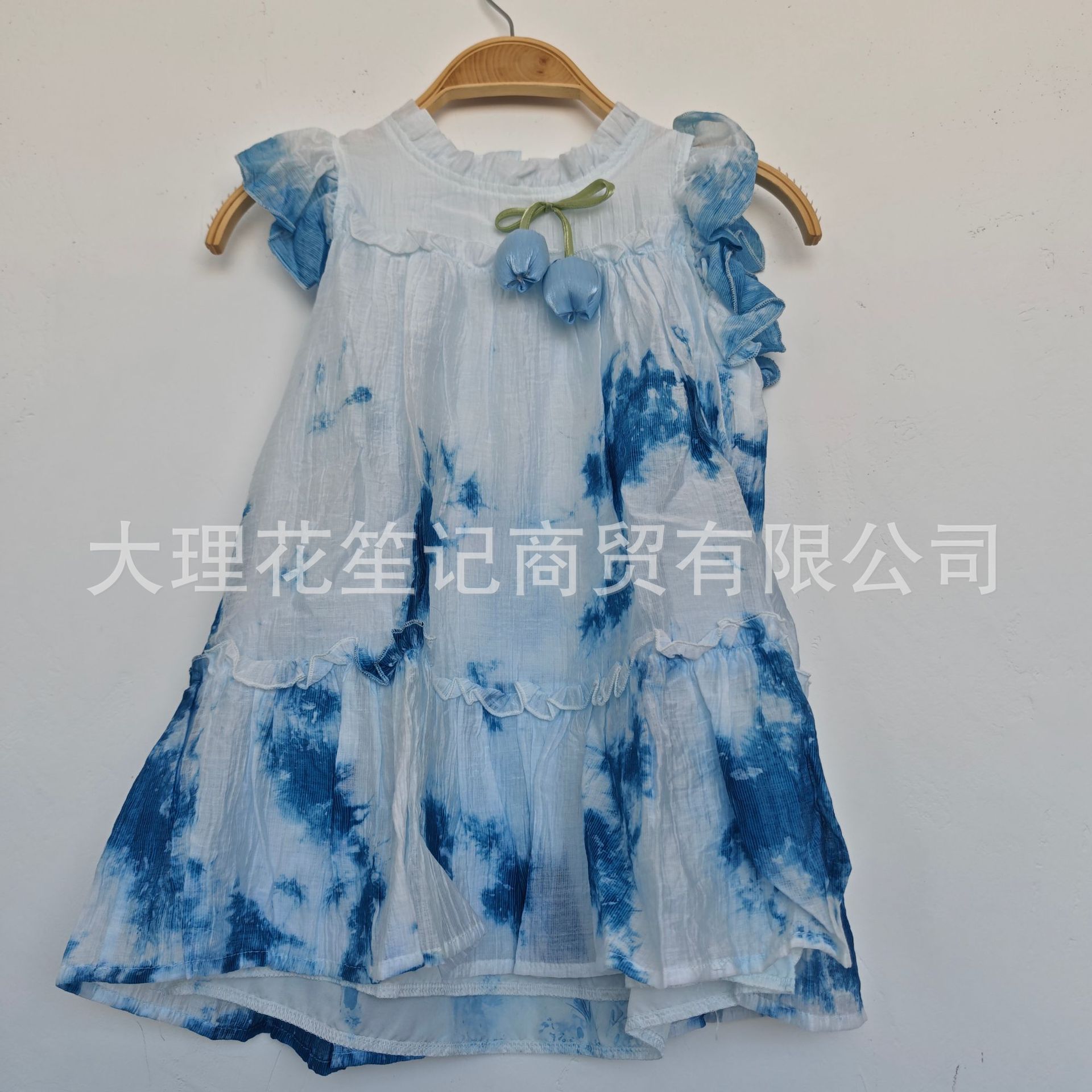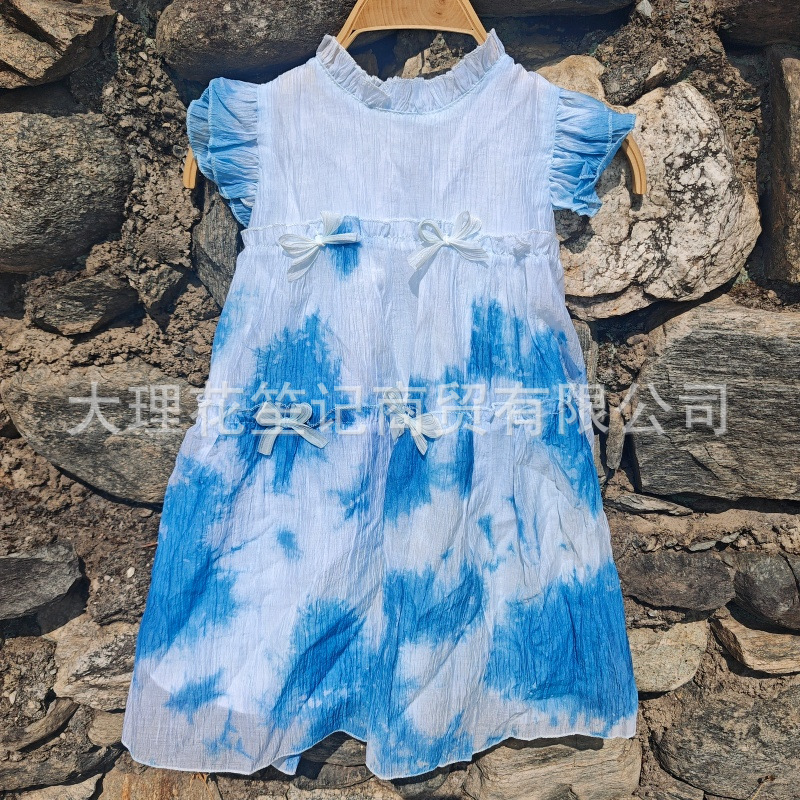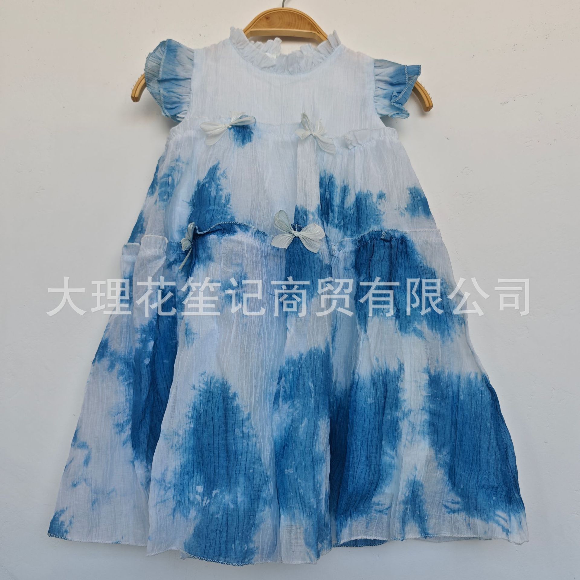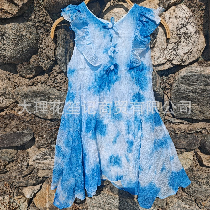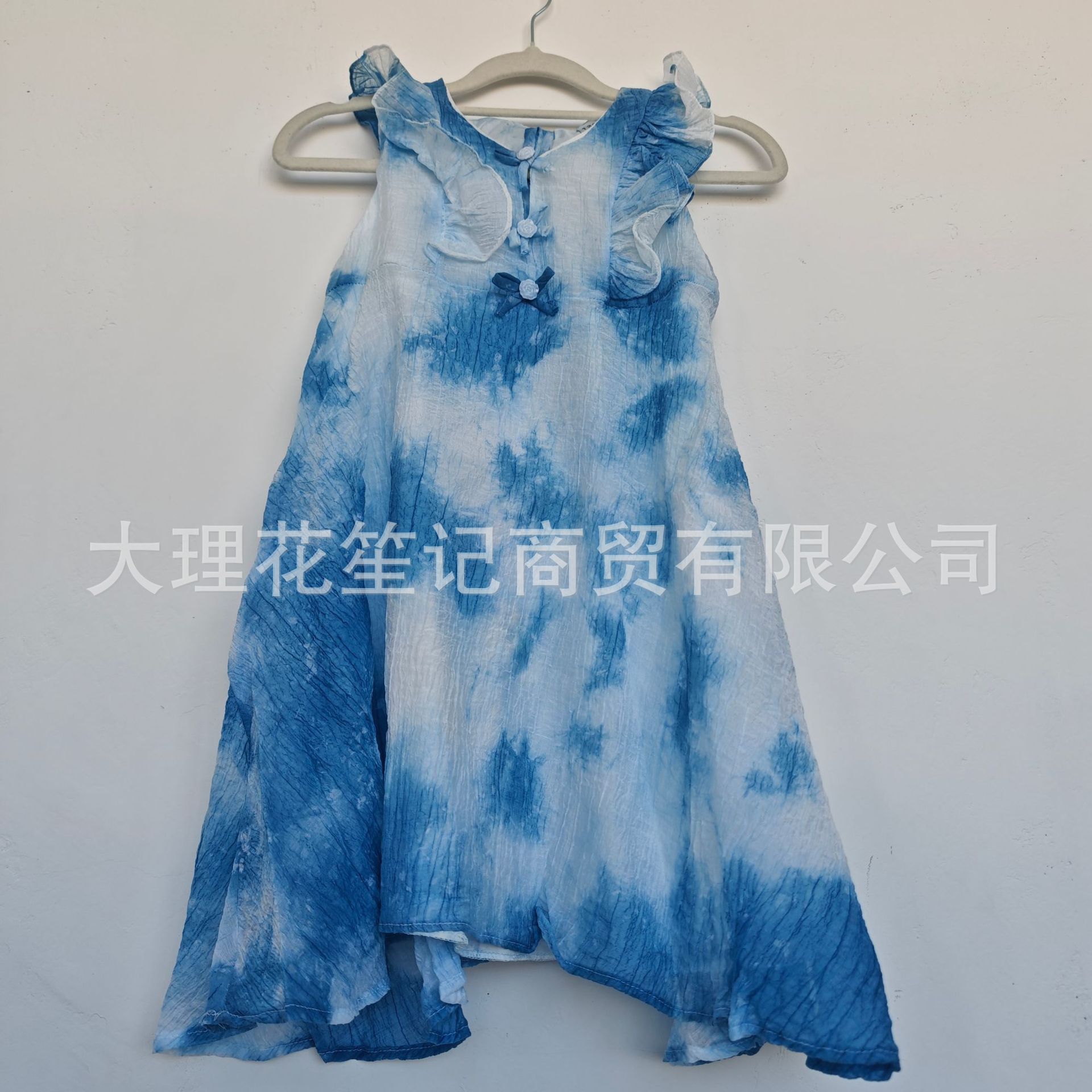 순수 천연 달리 수제 타이-염료 여름 민족 스타일 소녀의 원피스 여행 휴일 블루 다이 민소매 어린이 치마스토어 가기