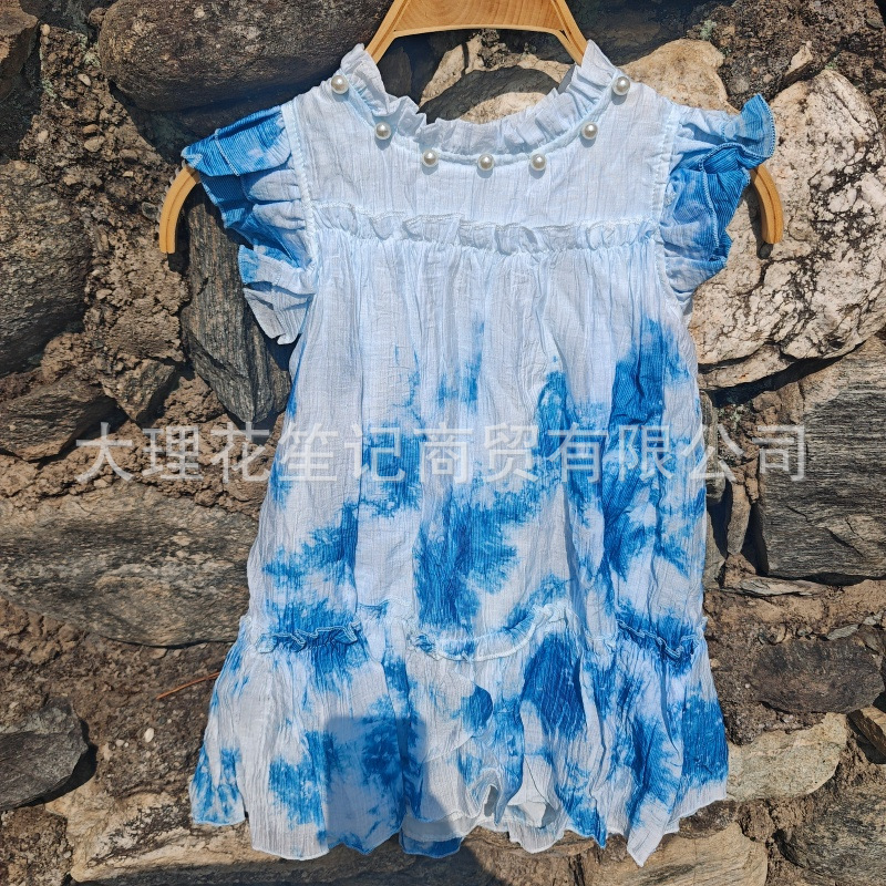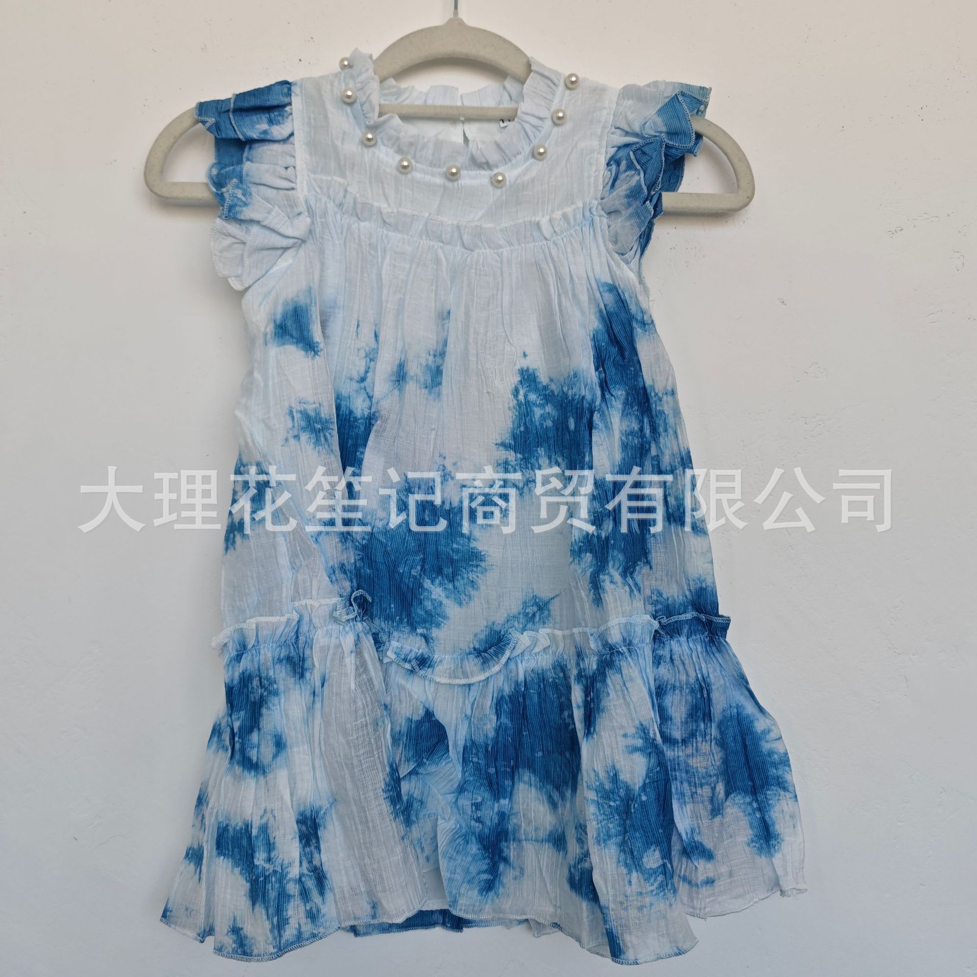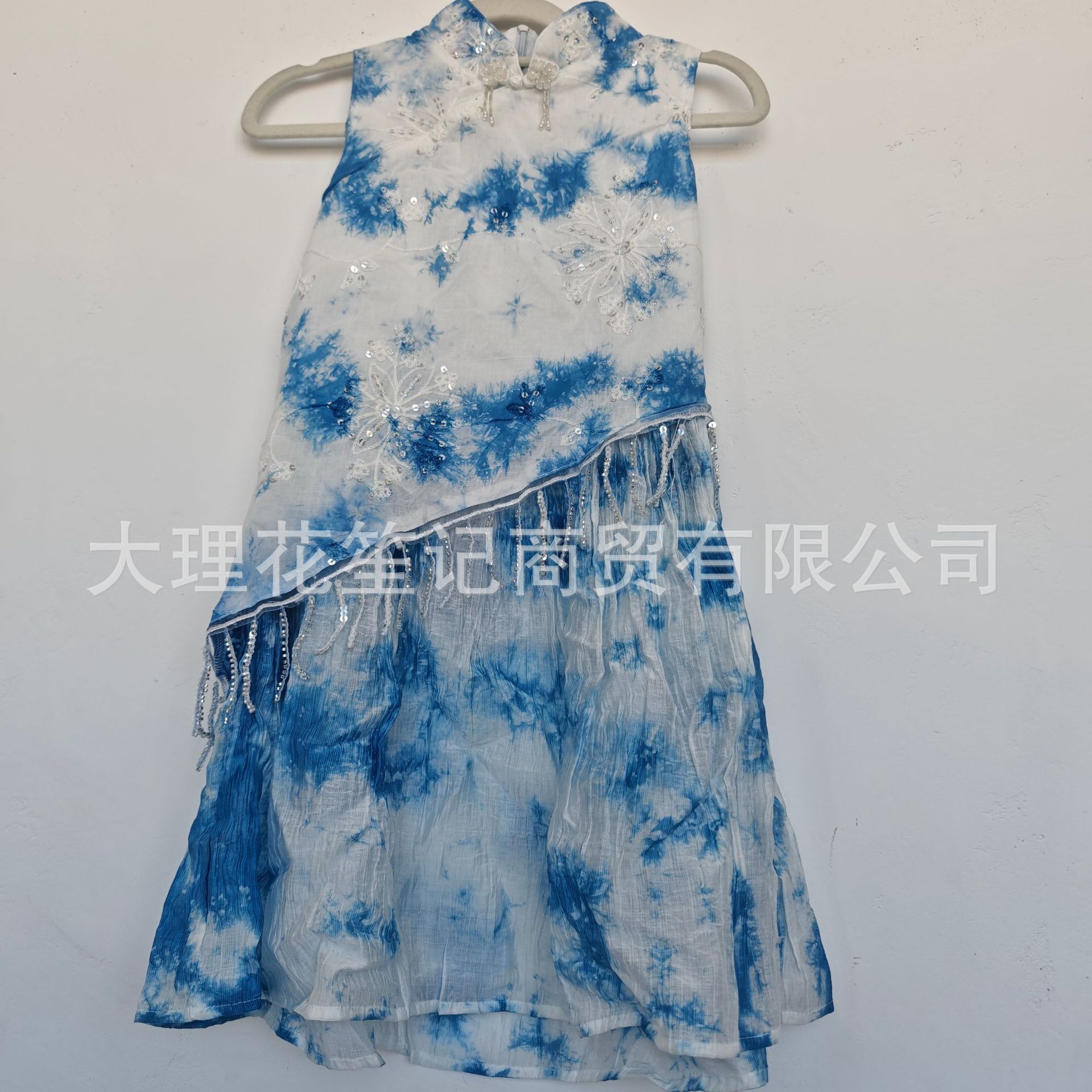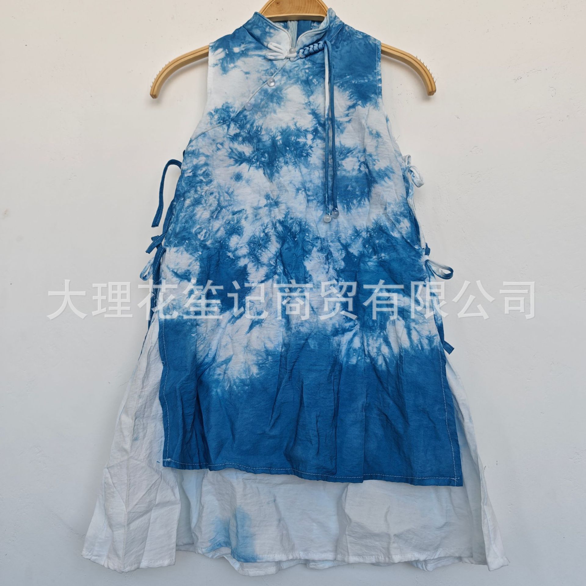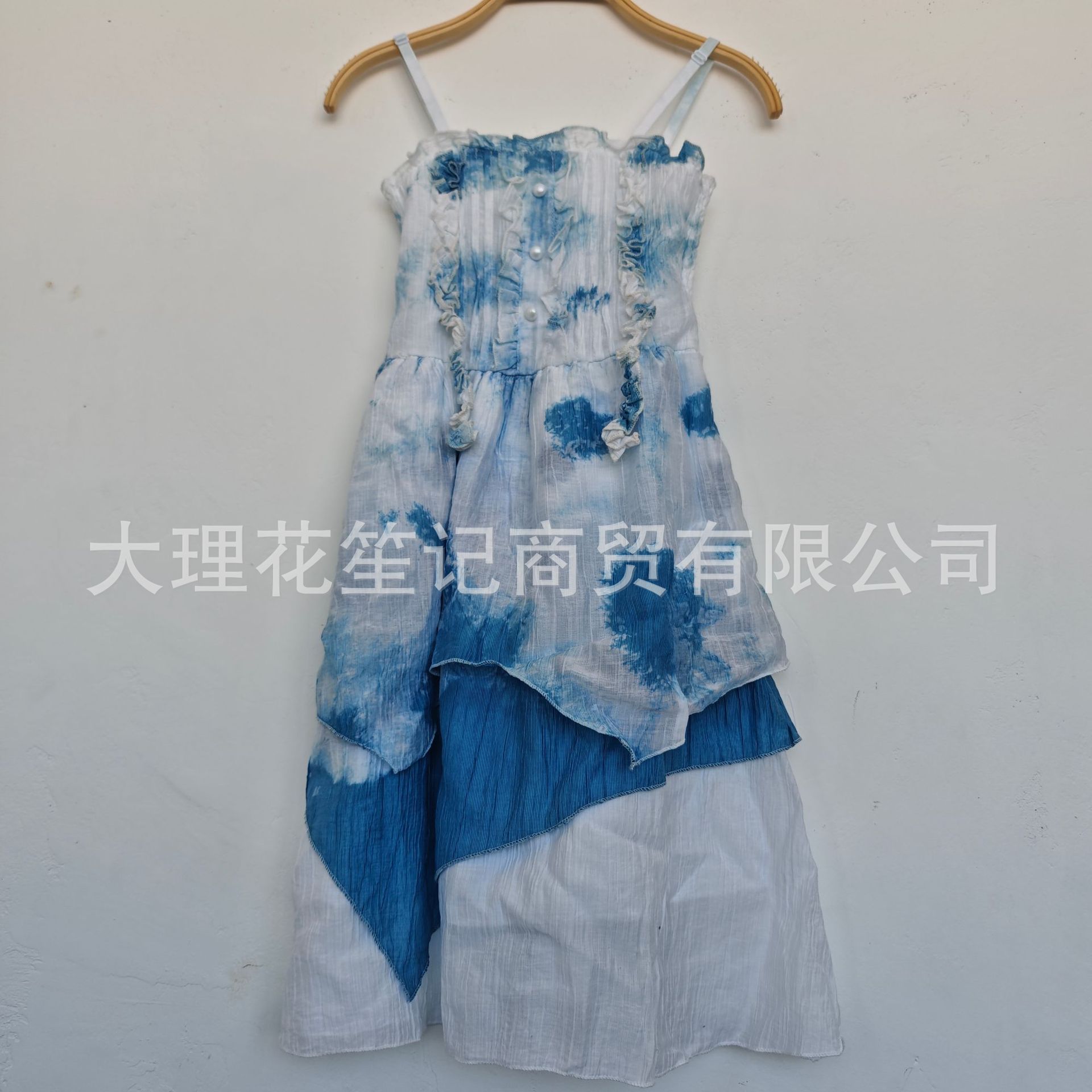 순수 천연 달리 수제 타이-염료 여름 민족 스타일 소녀의 원피스 여행 휴일 블루 다이 민소매 어린이 치마스토어 가기