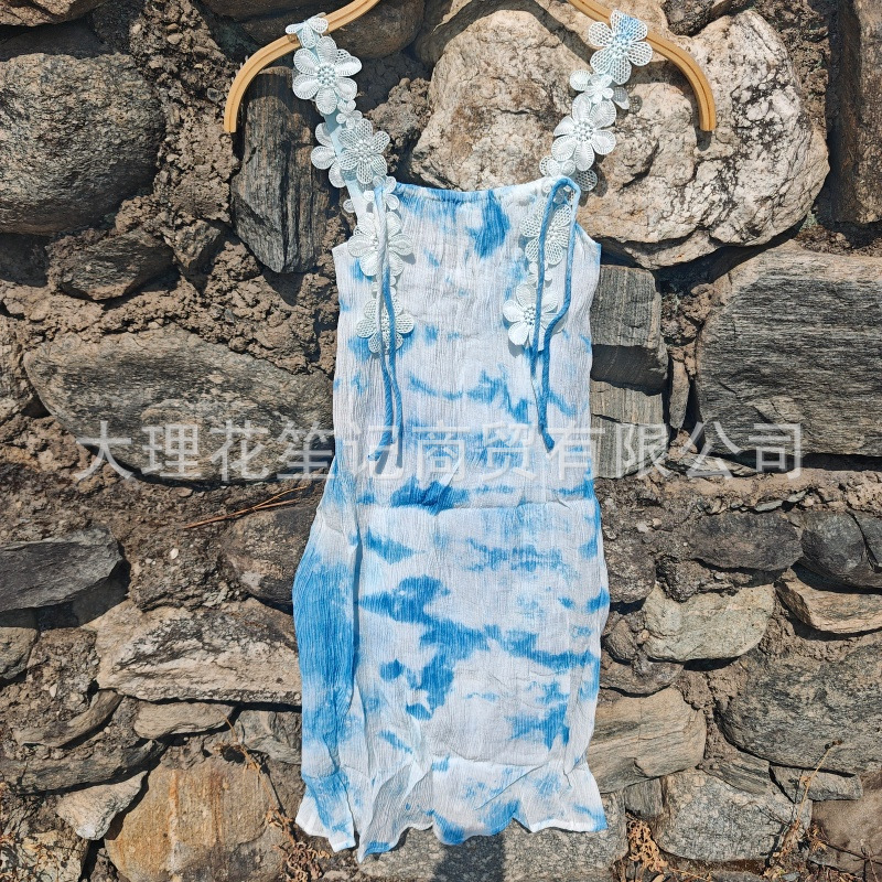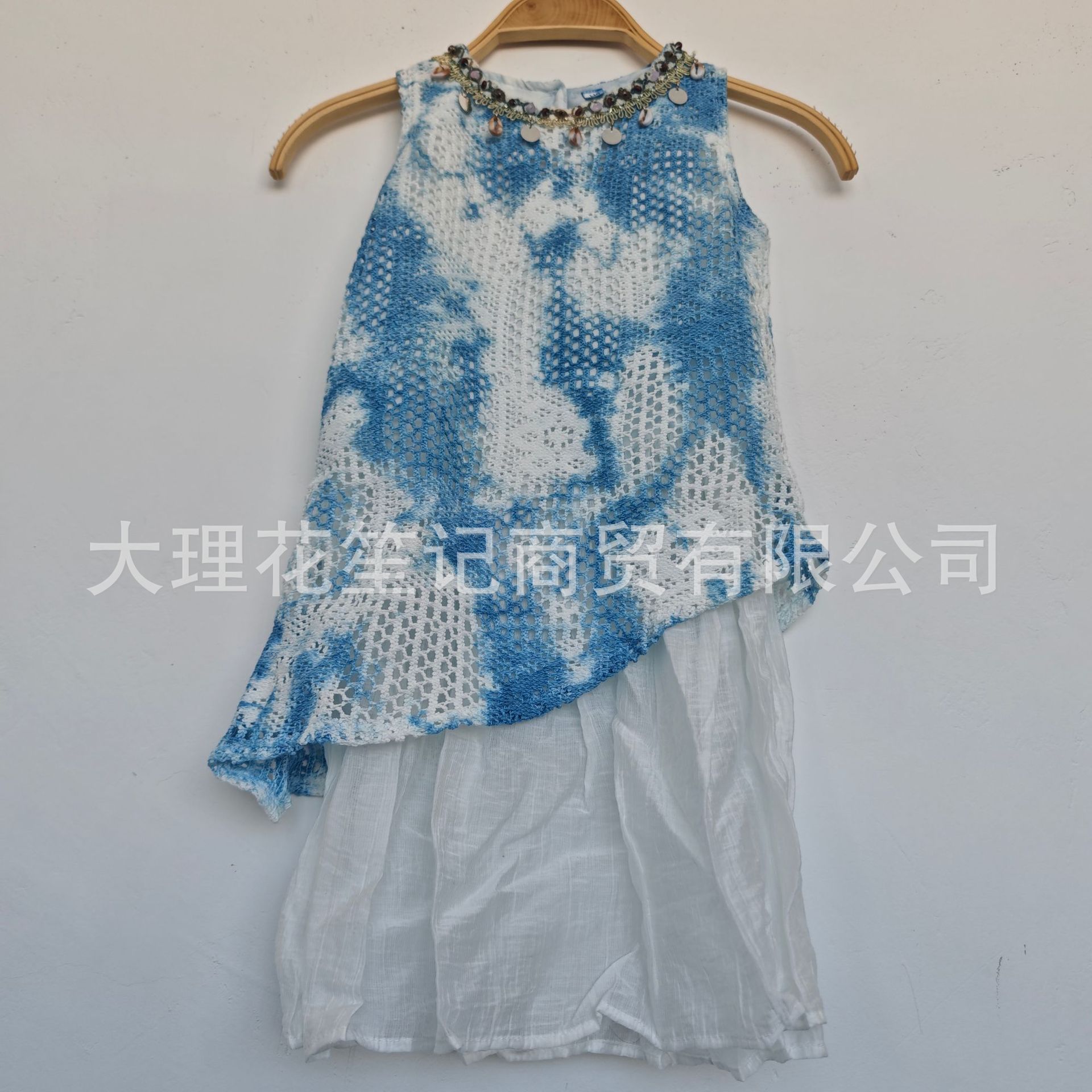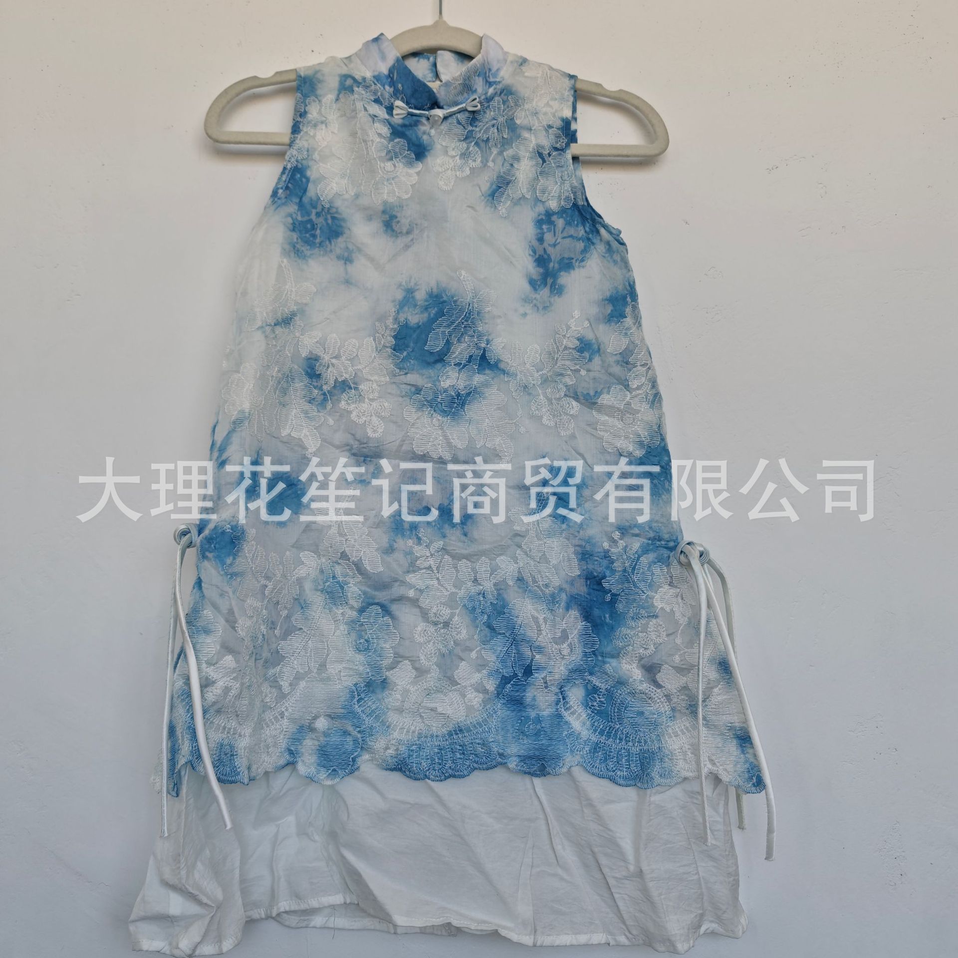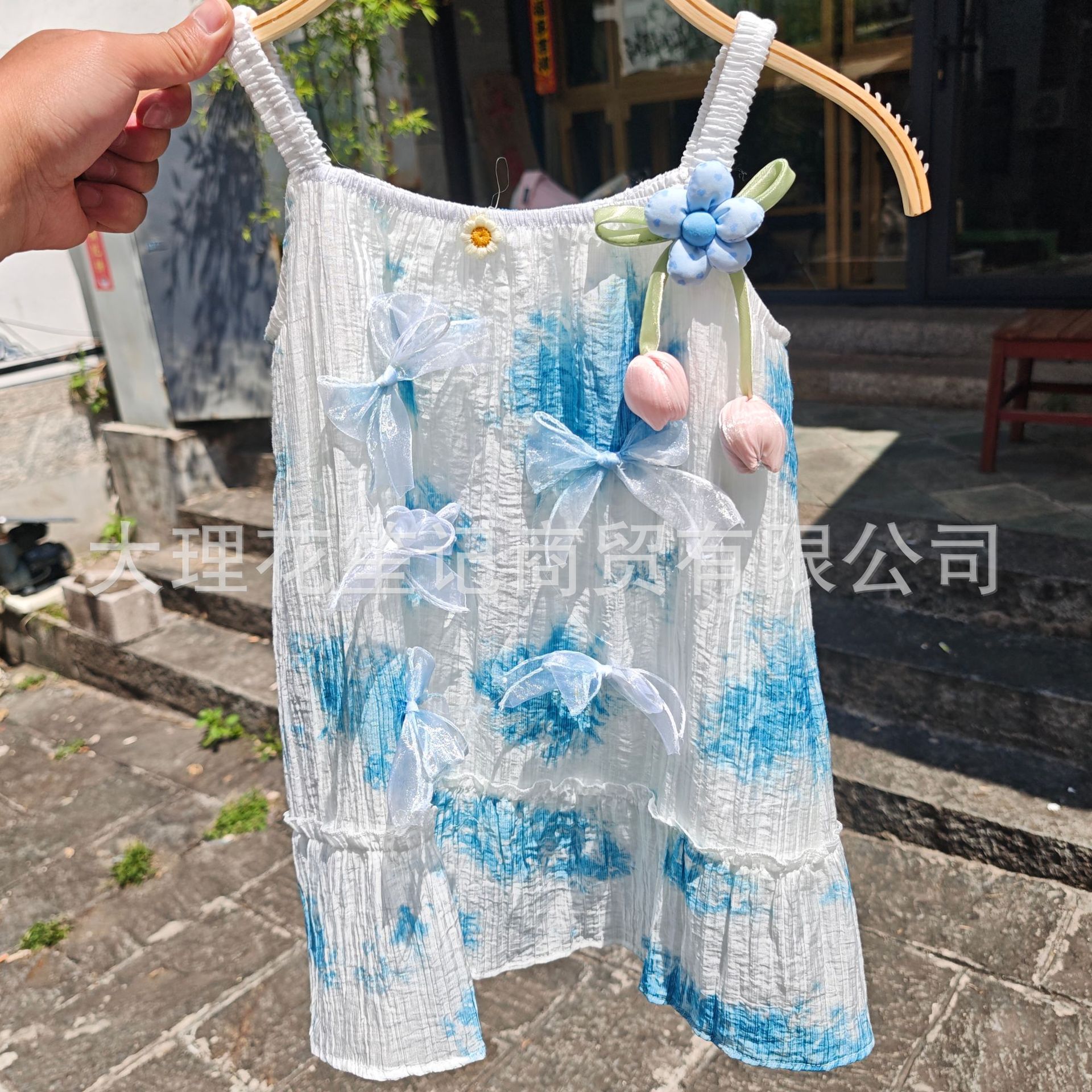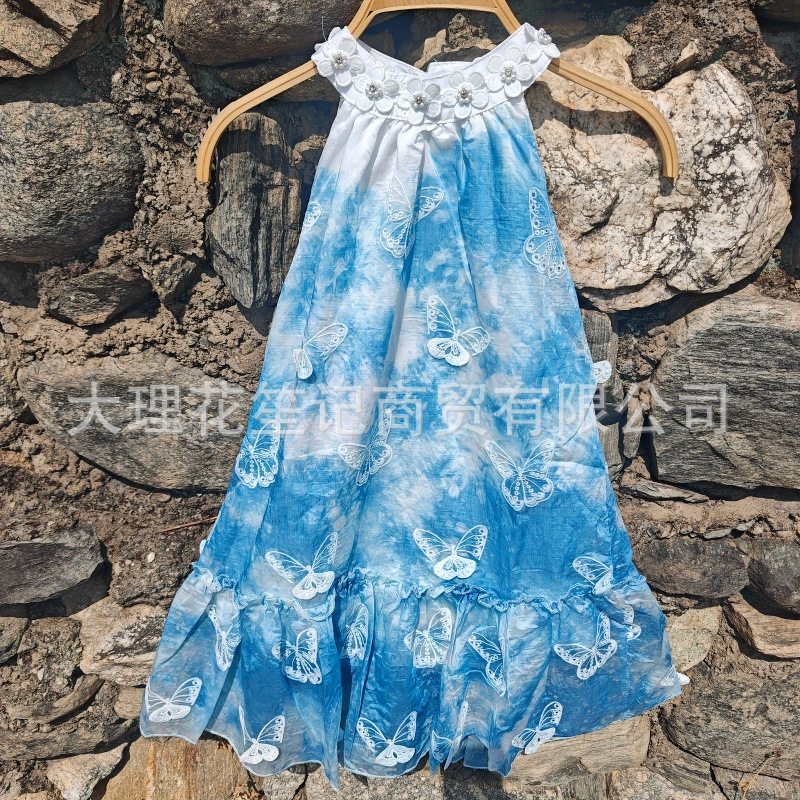 순수 천연 달리 수제 타이-염료 여름 민족 스타일 소녀의 원피스 여행 휴일 블루 다이 민소매 어린이 치마스토어 가기