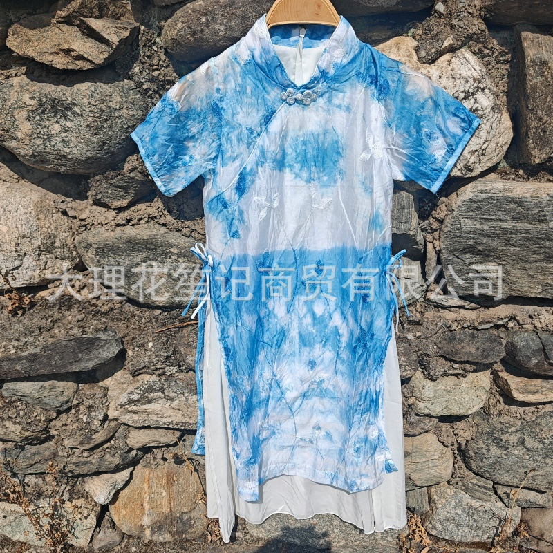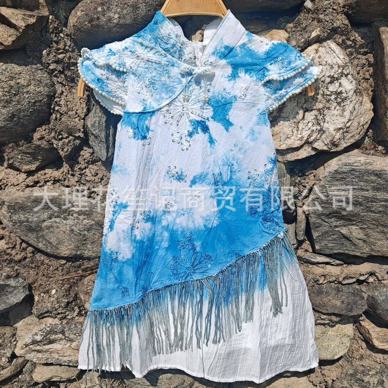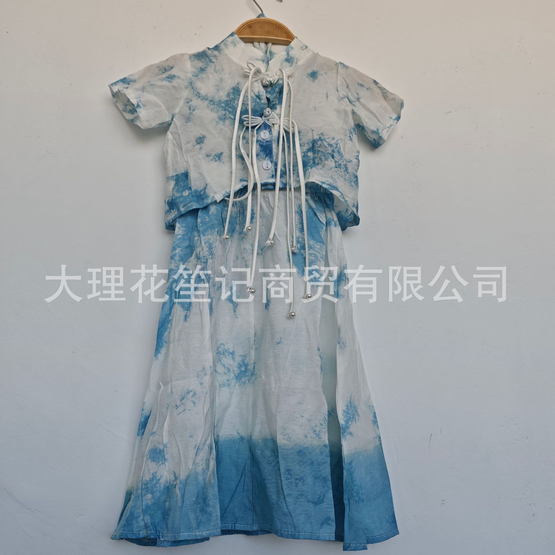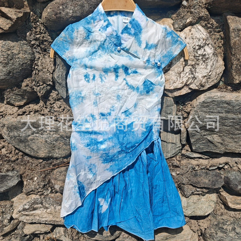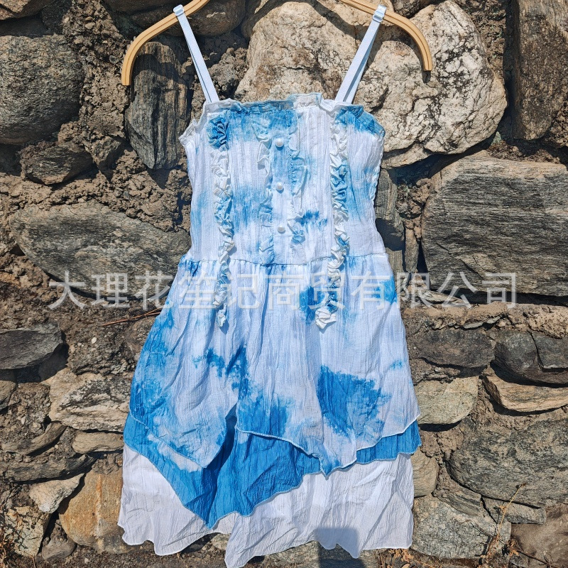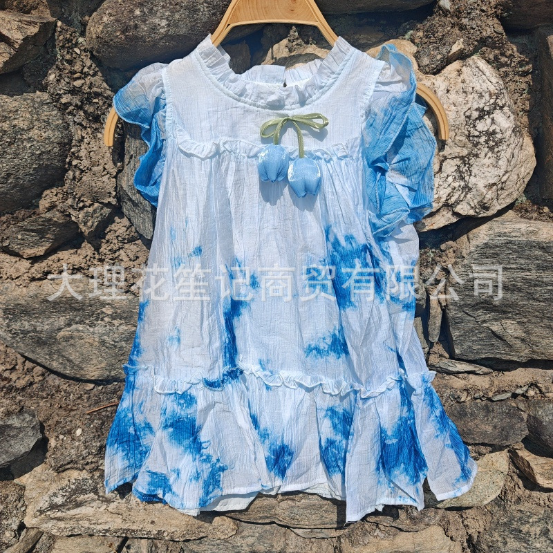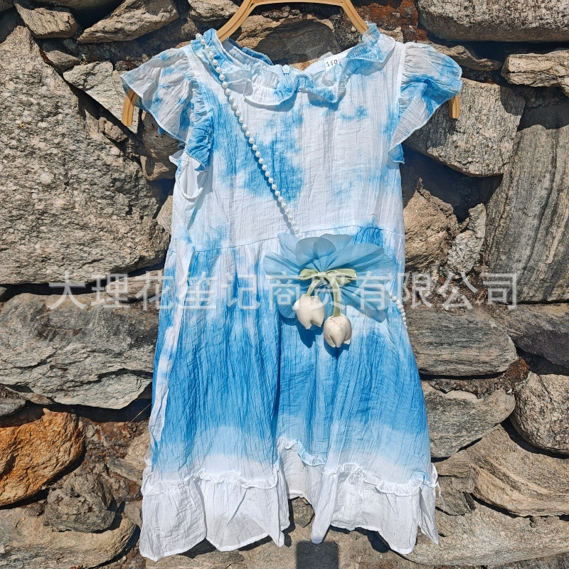 순수 천연 달리 수제 타이-염료 여름 민족 스타일 소녀의 원피스 여행 휴일 블루 다이 민소매 어린이 치마스토어 가기