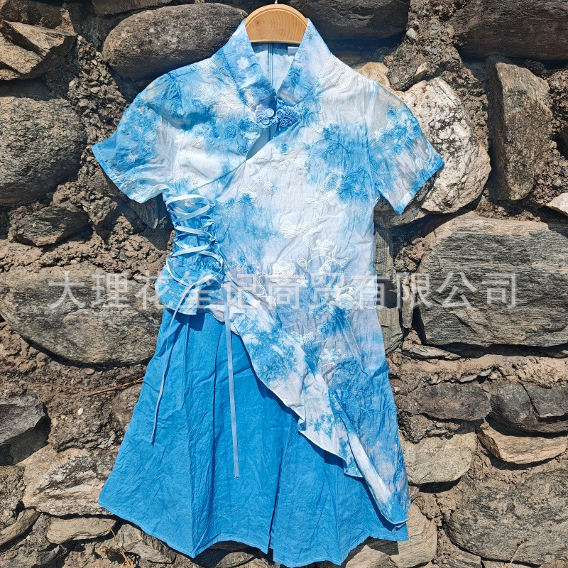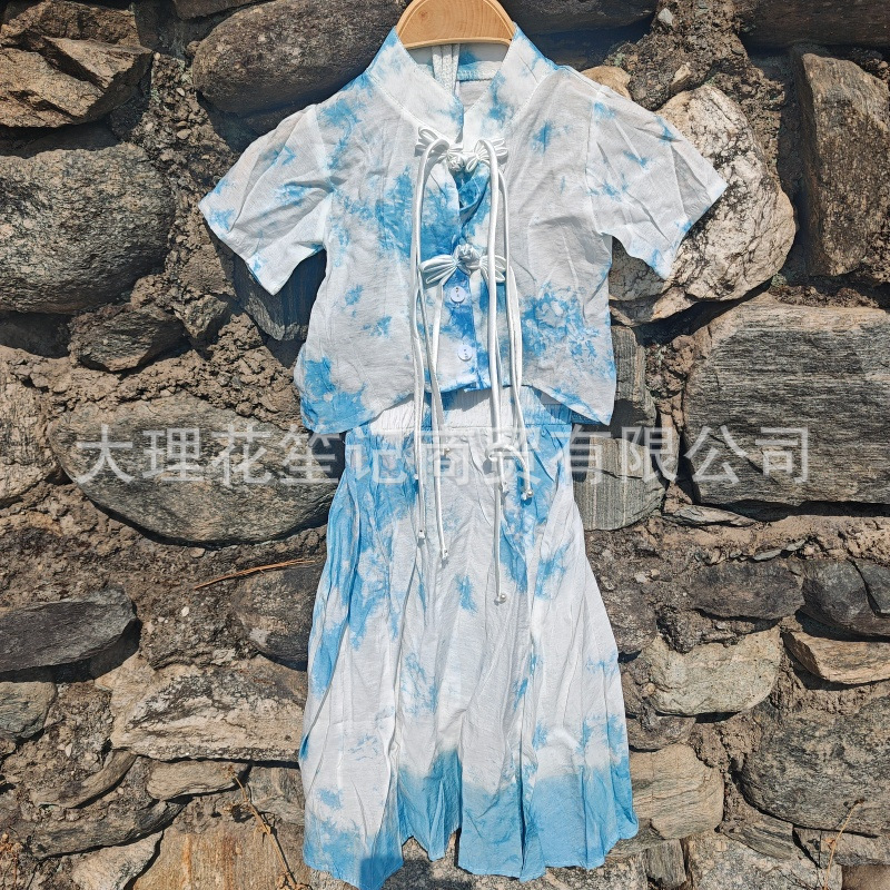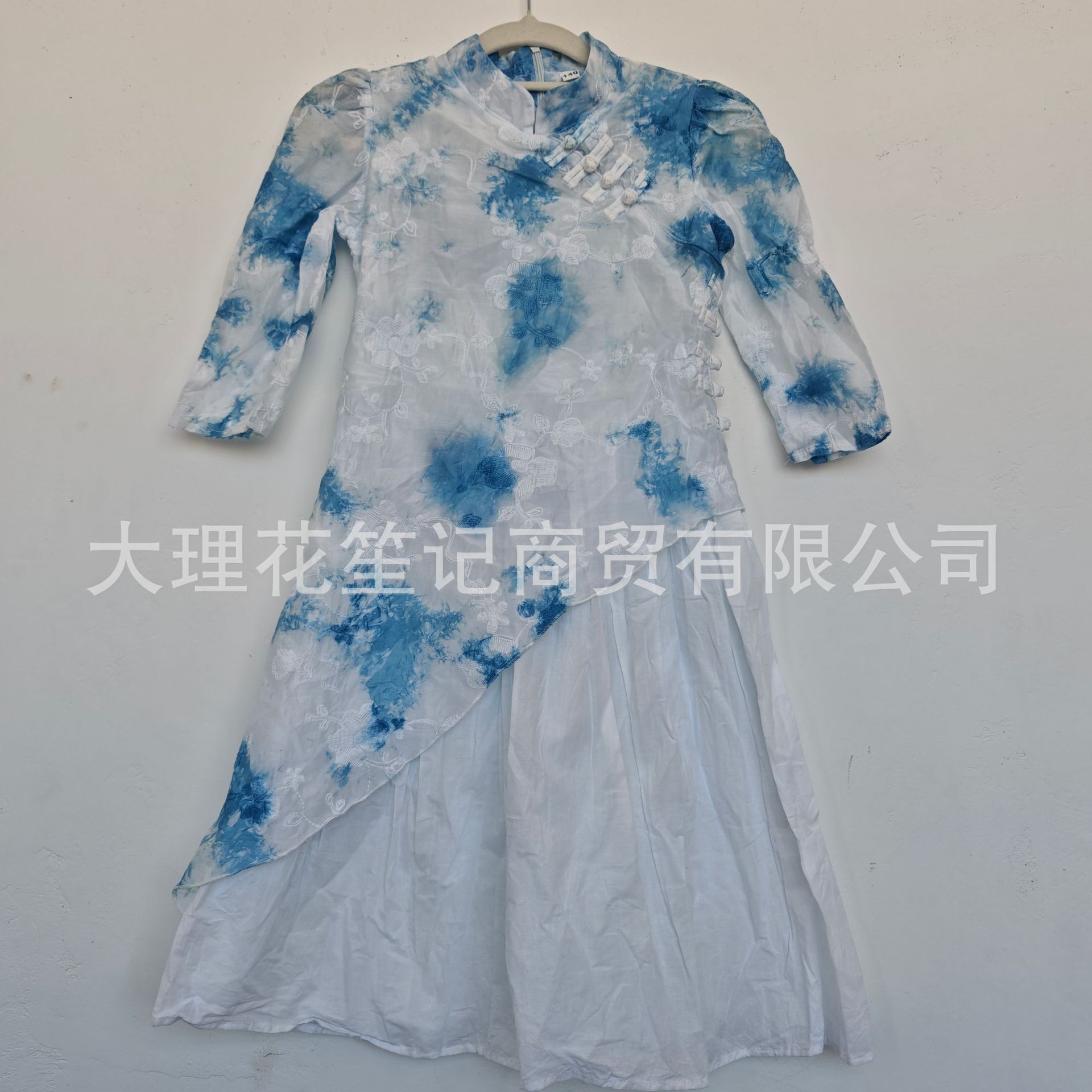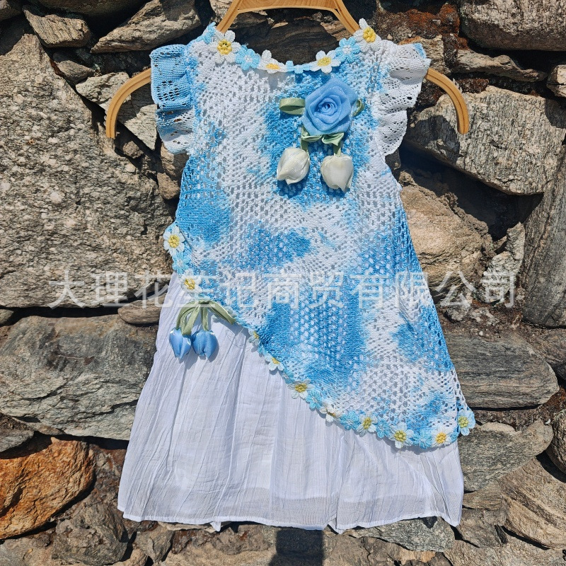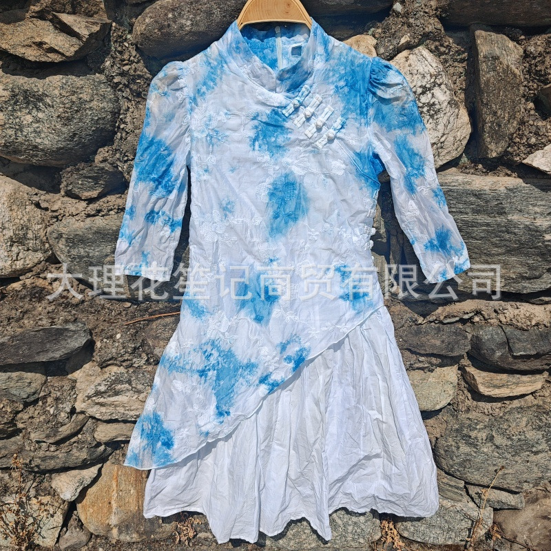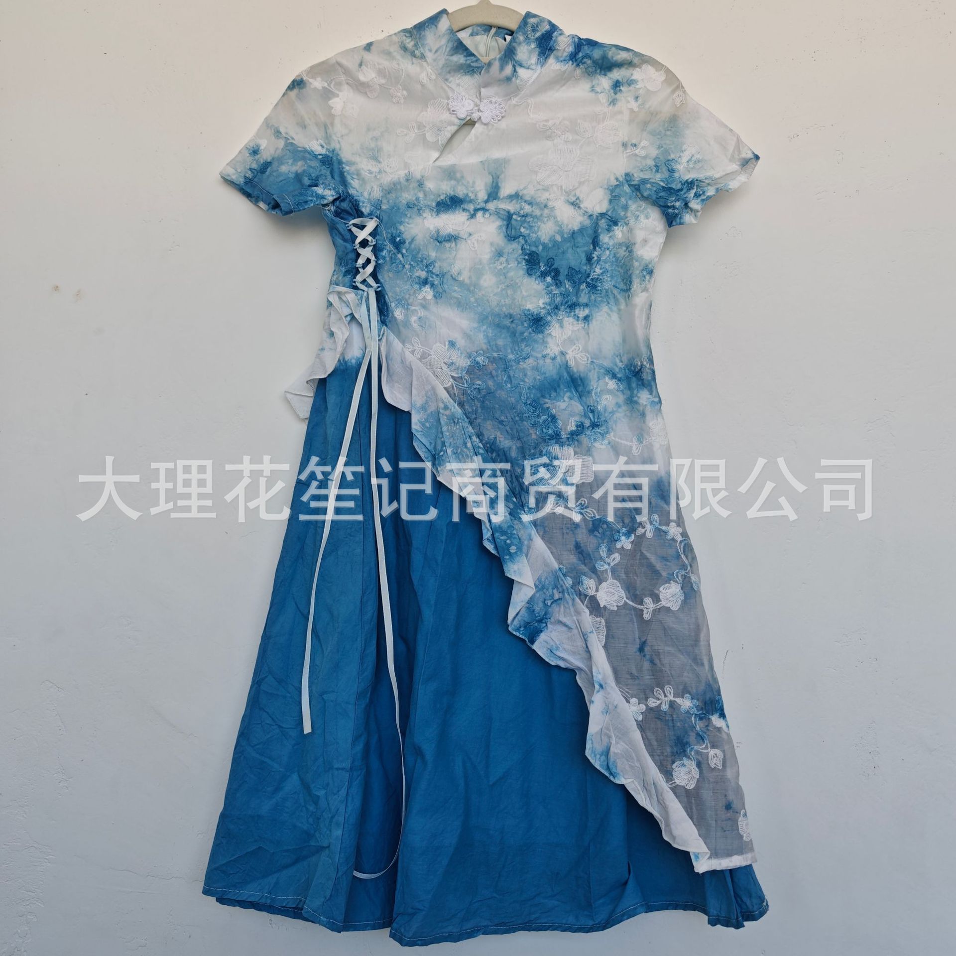 순수 천연 달리 수제 타이-염료 여름 민족 스타일 소녀의 원피스 여행 휴일 블루 다이 민소매 어린이 치마스토어 가기