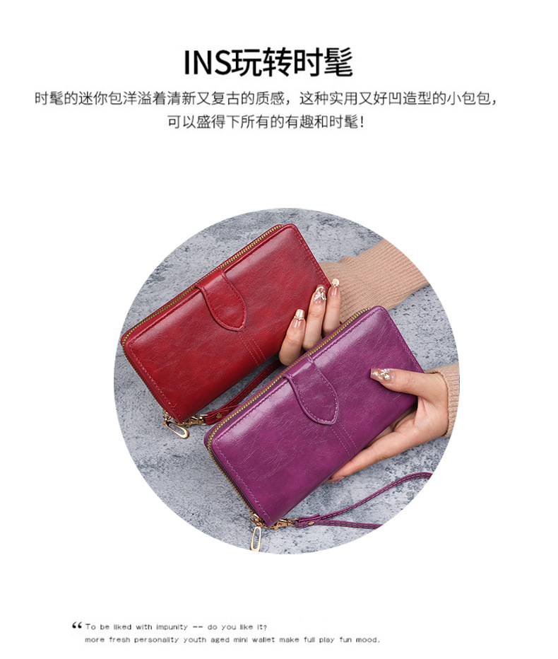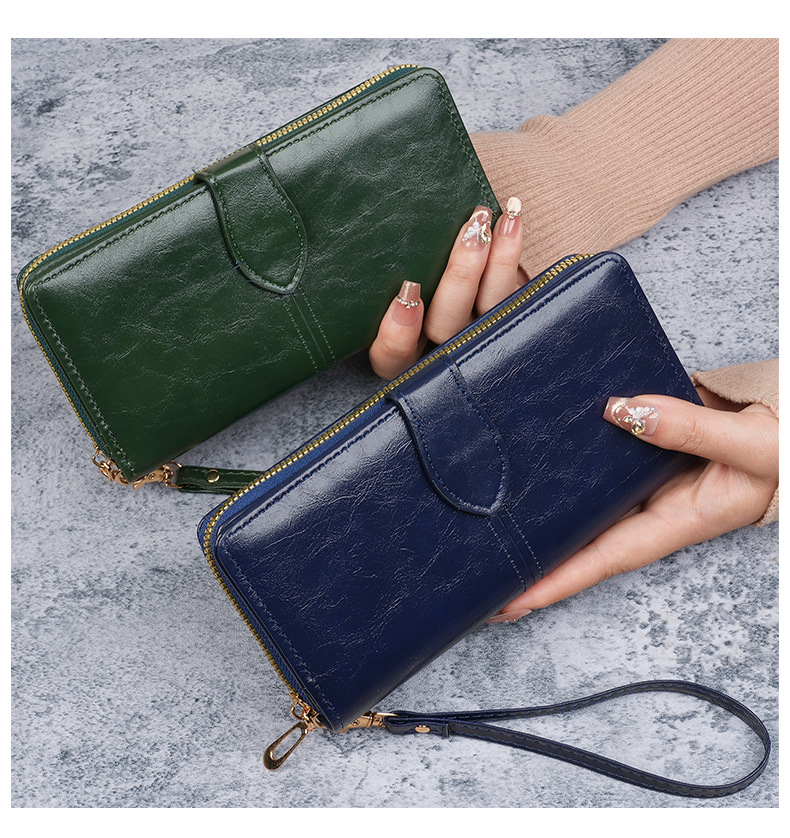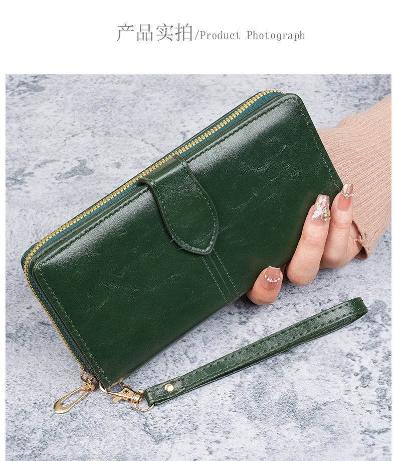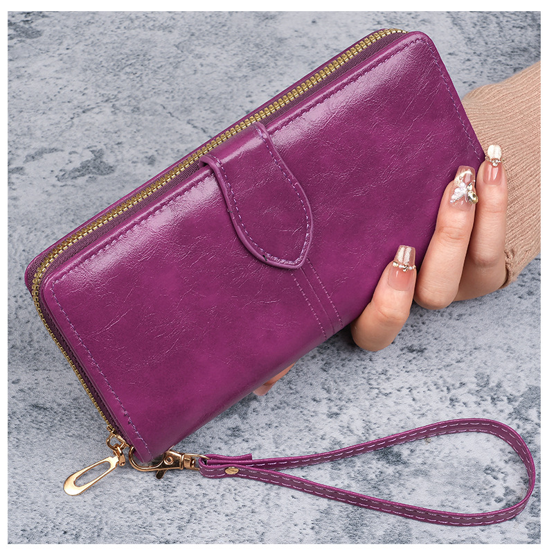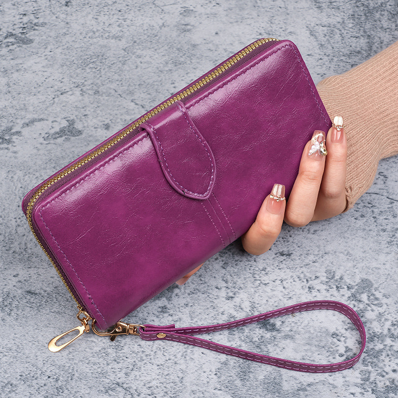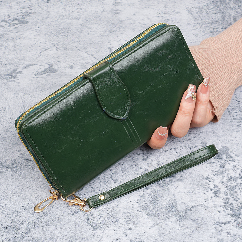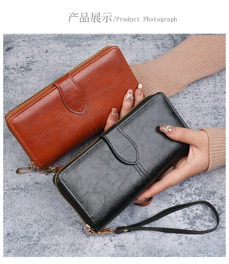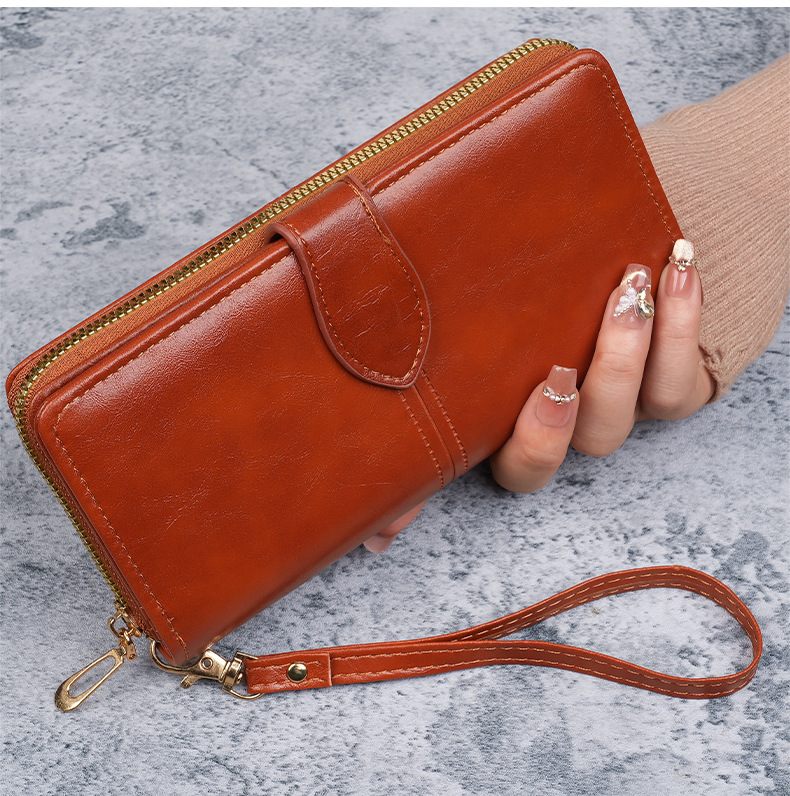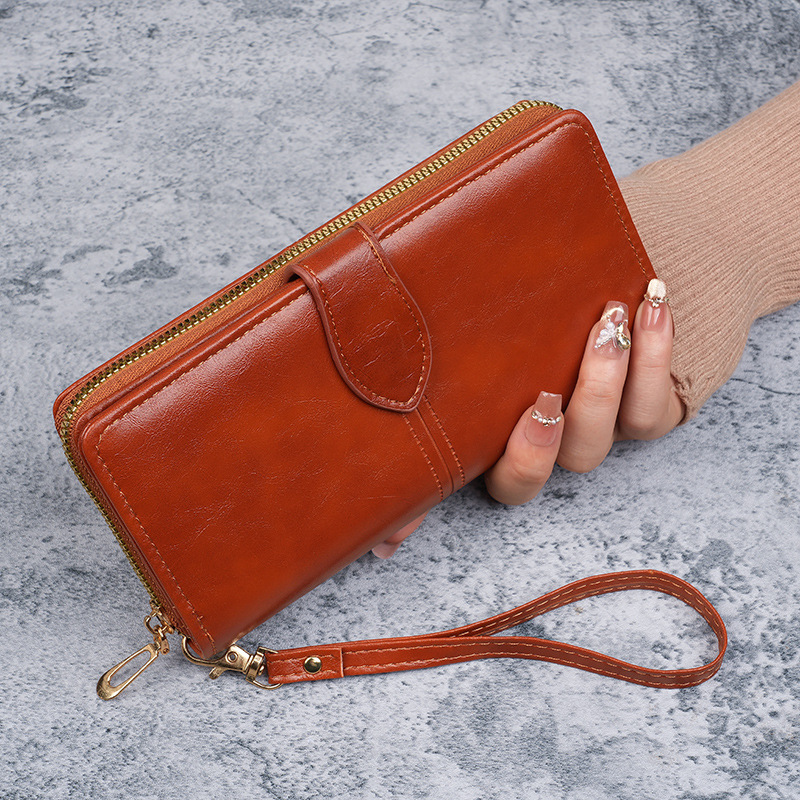 휴대용 멀티 카드 남성용 지갑 머니 백 오일 왁스 가죽 레트로 롱 지갑 여성용 대용량 여성용 휴대 전화 가방스토어 가기