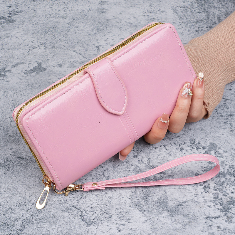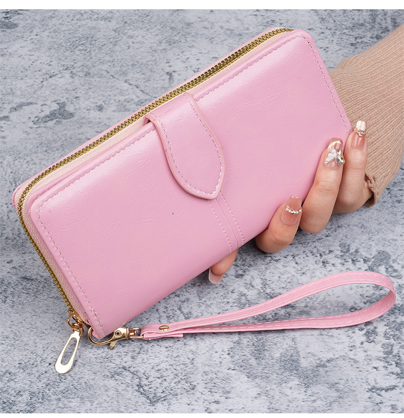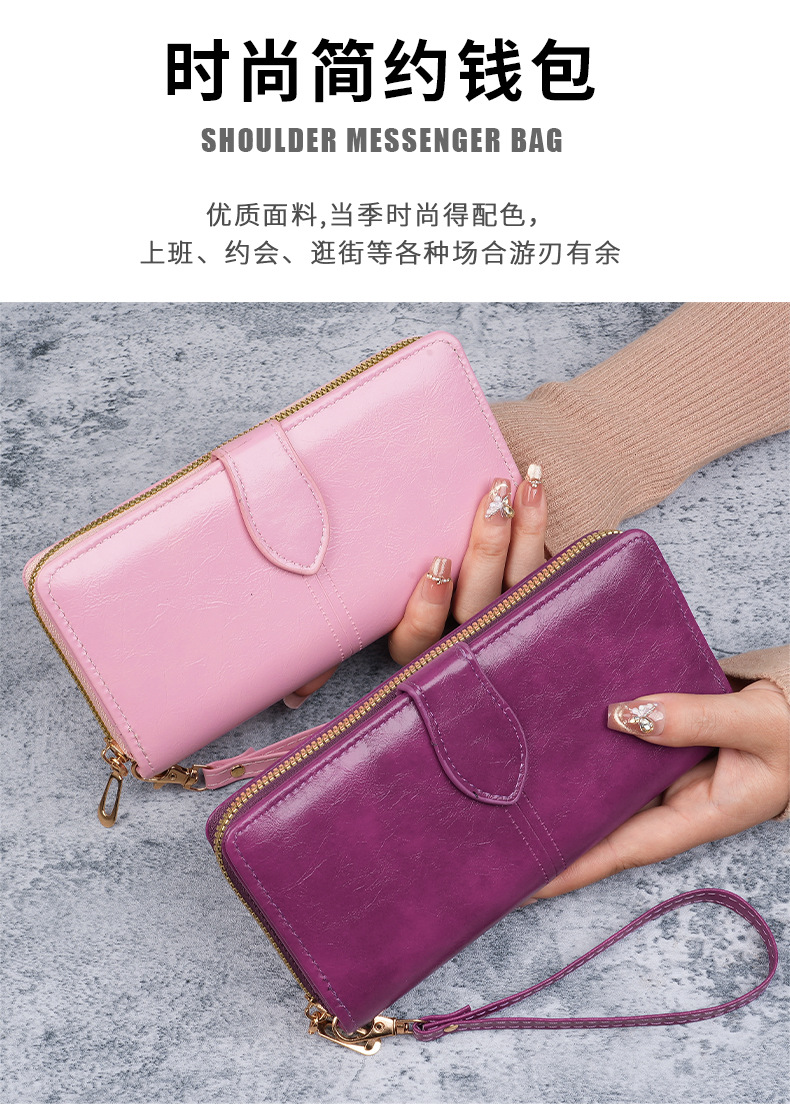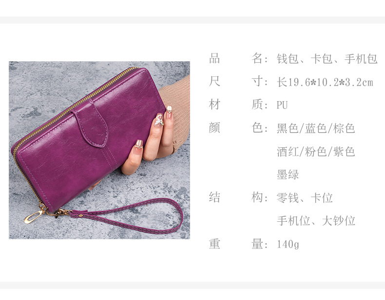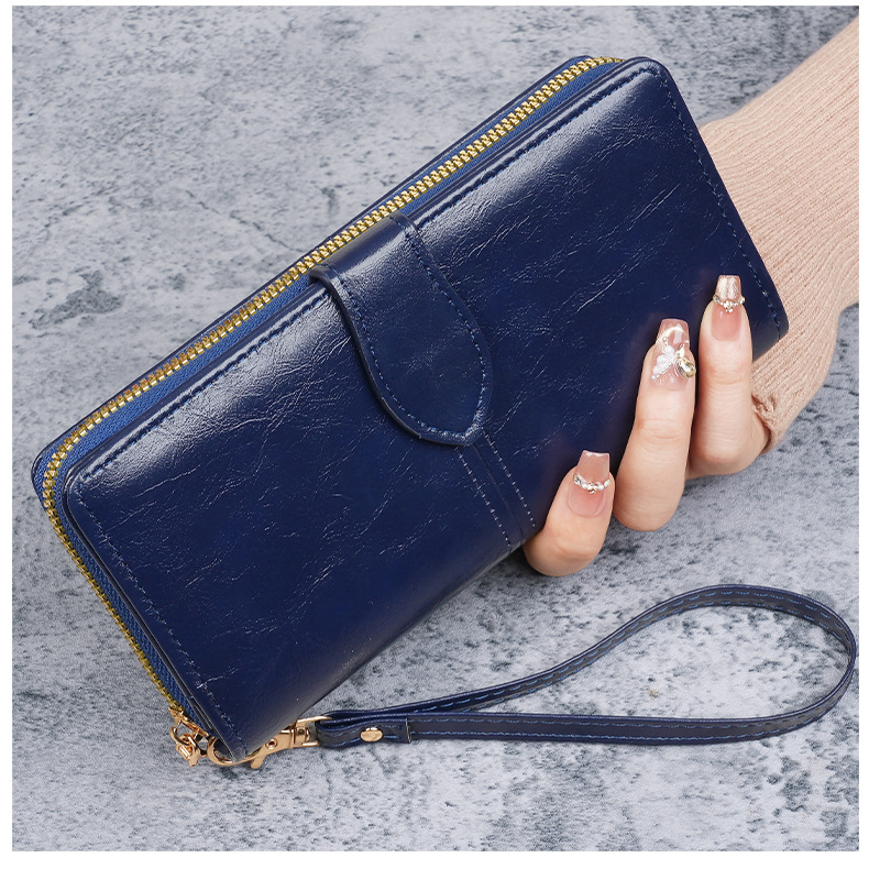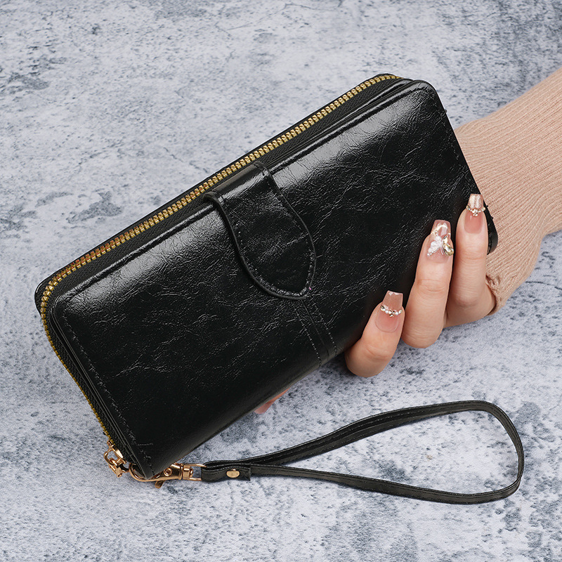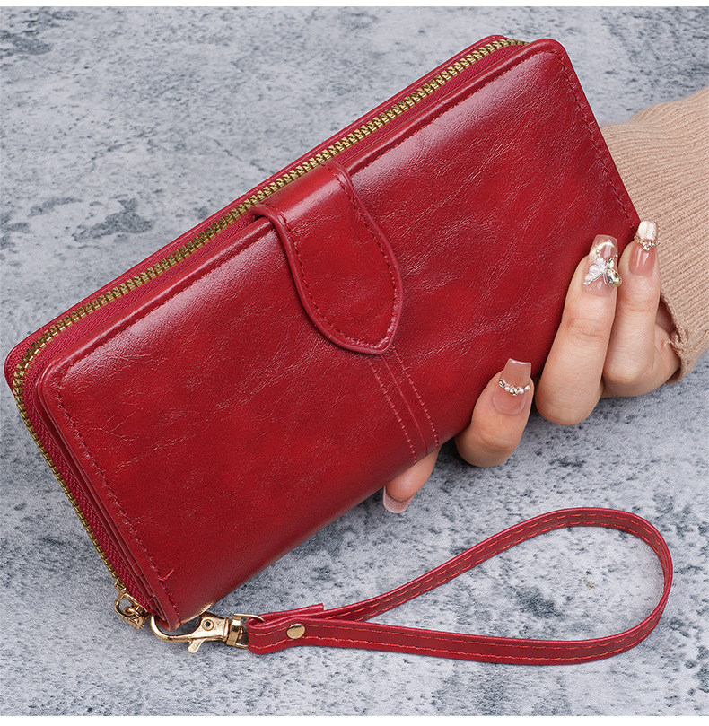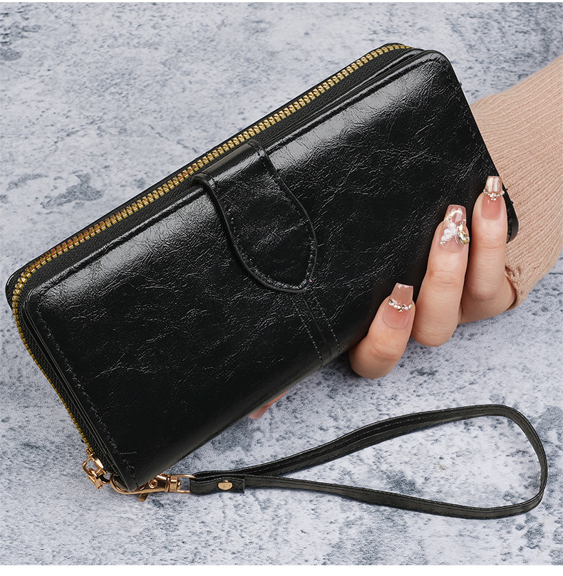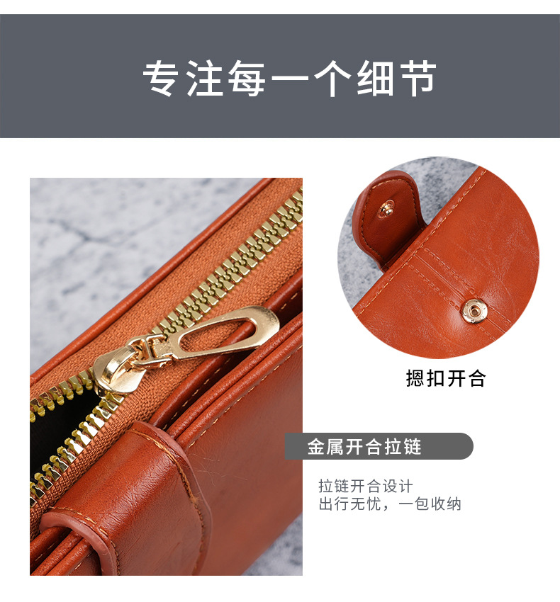 휴대용 멀티 카드 남성용 지갑 머니 백 오일 왁스 가죽 레트로 롱 지갑 여성용 대용량 여성용 휴대 전화 가방스토어 가기