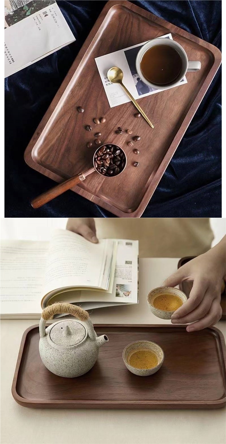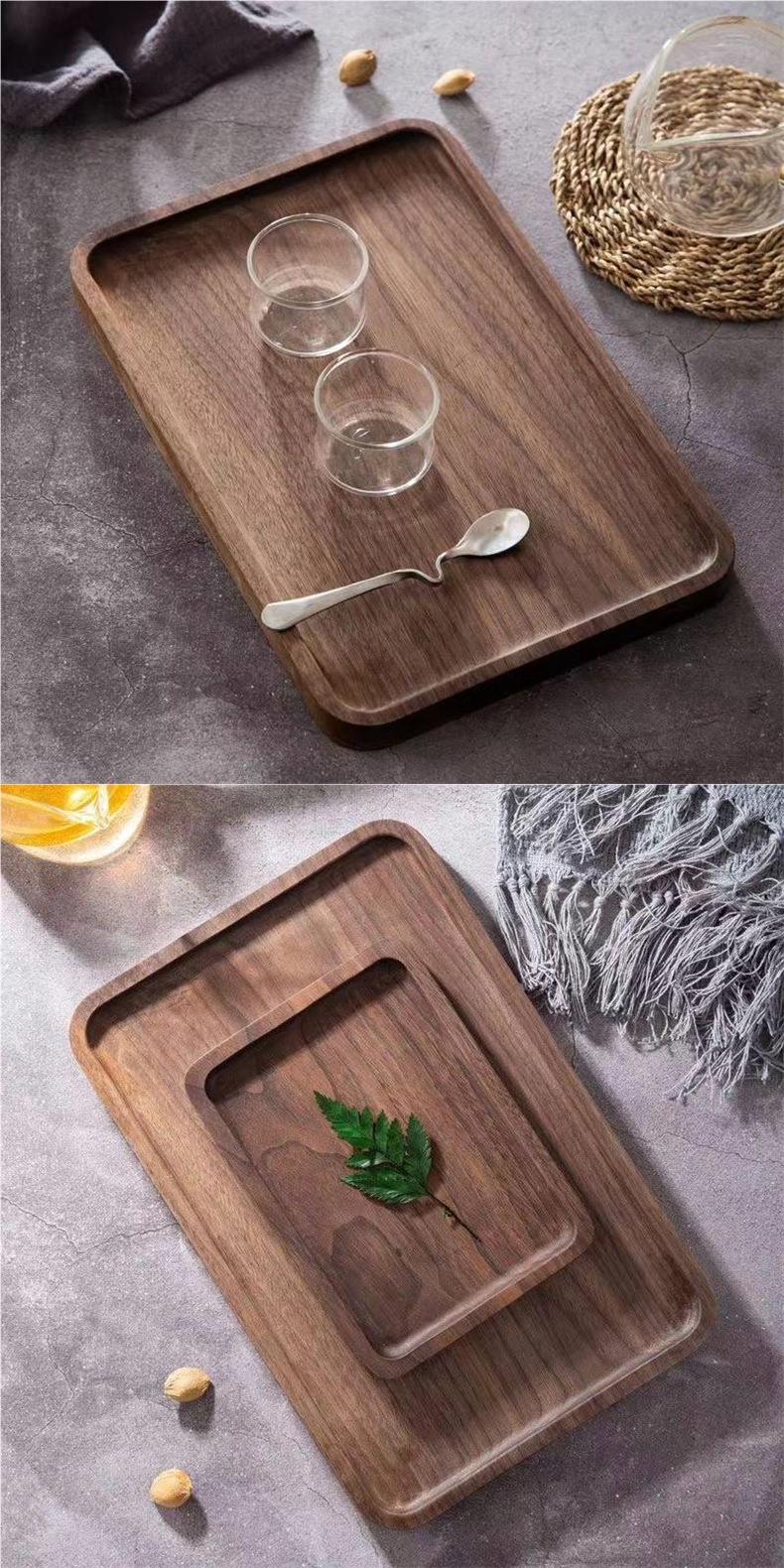검은 호두 트레이 직사각형 일본식 가정용 물컵 단단한 나무 트레이 원목 차 트레이 둥근 나무 접시스토어 가기