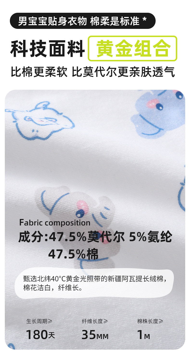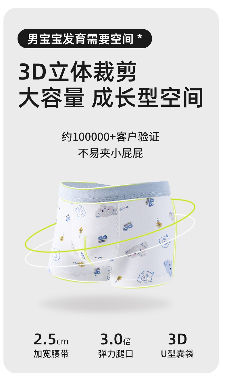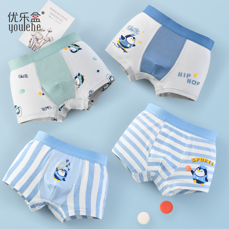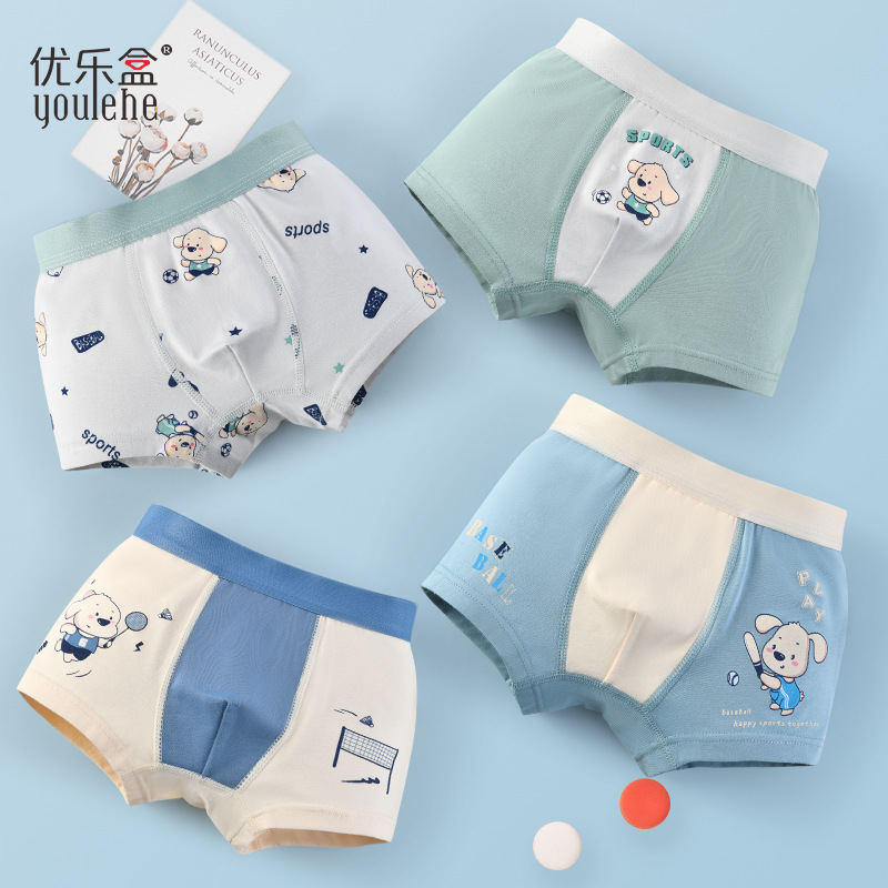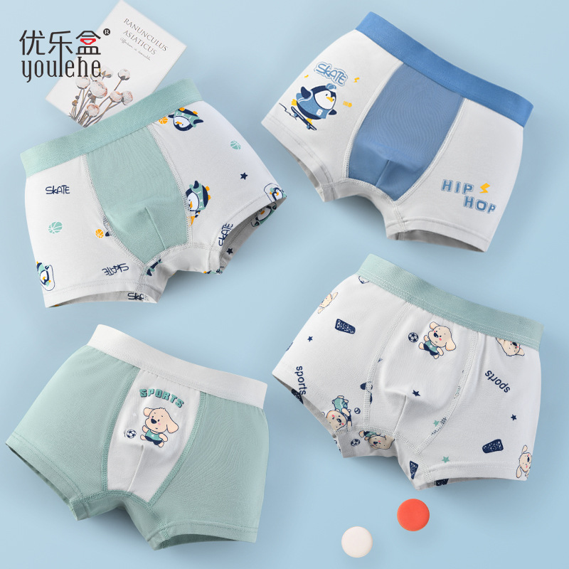 优乐盒男童宝宝中大童平角男孩四角儿童内裤纯棉a类不夹屁屁